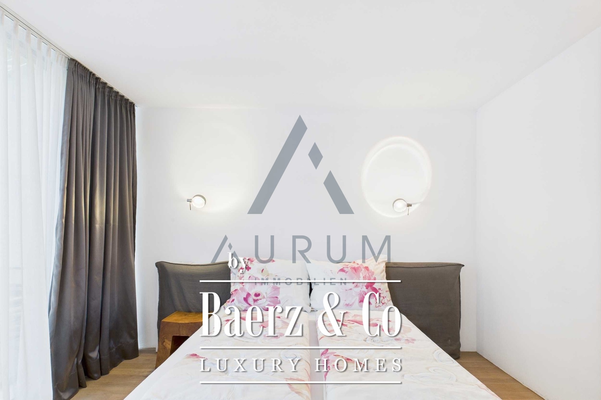 The entire building is very bright and open thanks to generous glass surfaces. All window fronts are equipped with electric Venetian blinds and can be controlled via a central BUS control system. Lighting, shading, heating, and other functions can also be controlled via this system. The furnishings include high-quality materials such as custom-made built-in wardrobes, wood and porcelain stoneware floors, and modern sanitary facilities.
