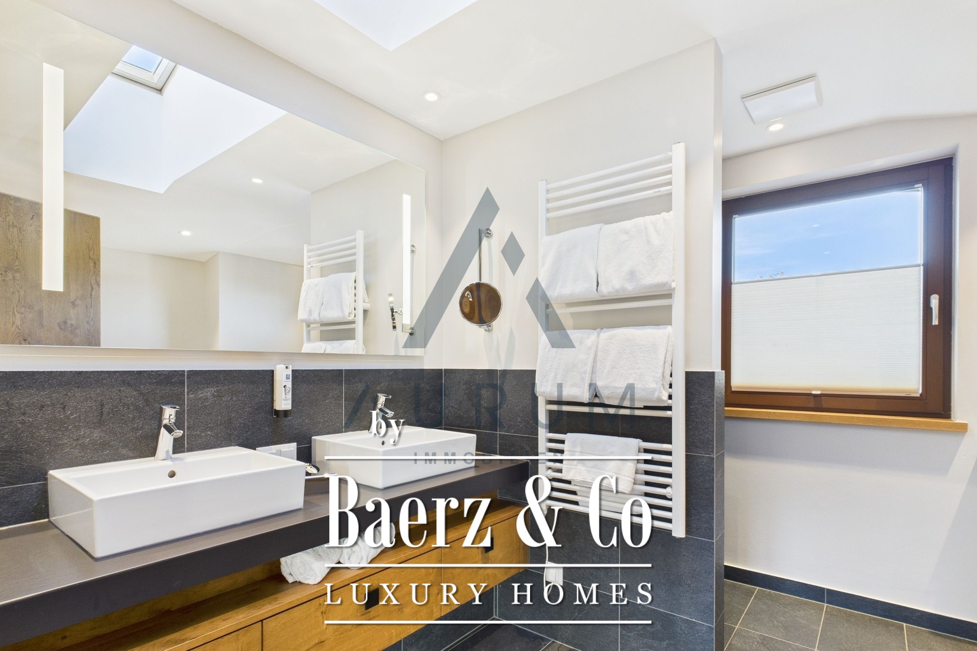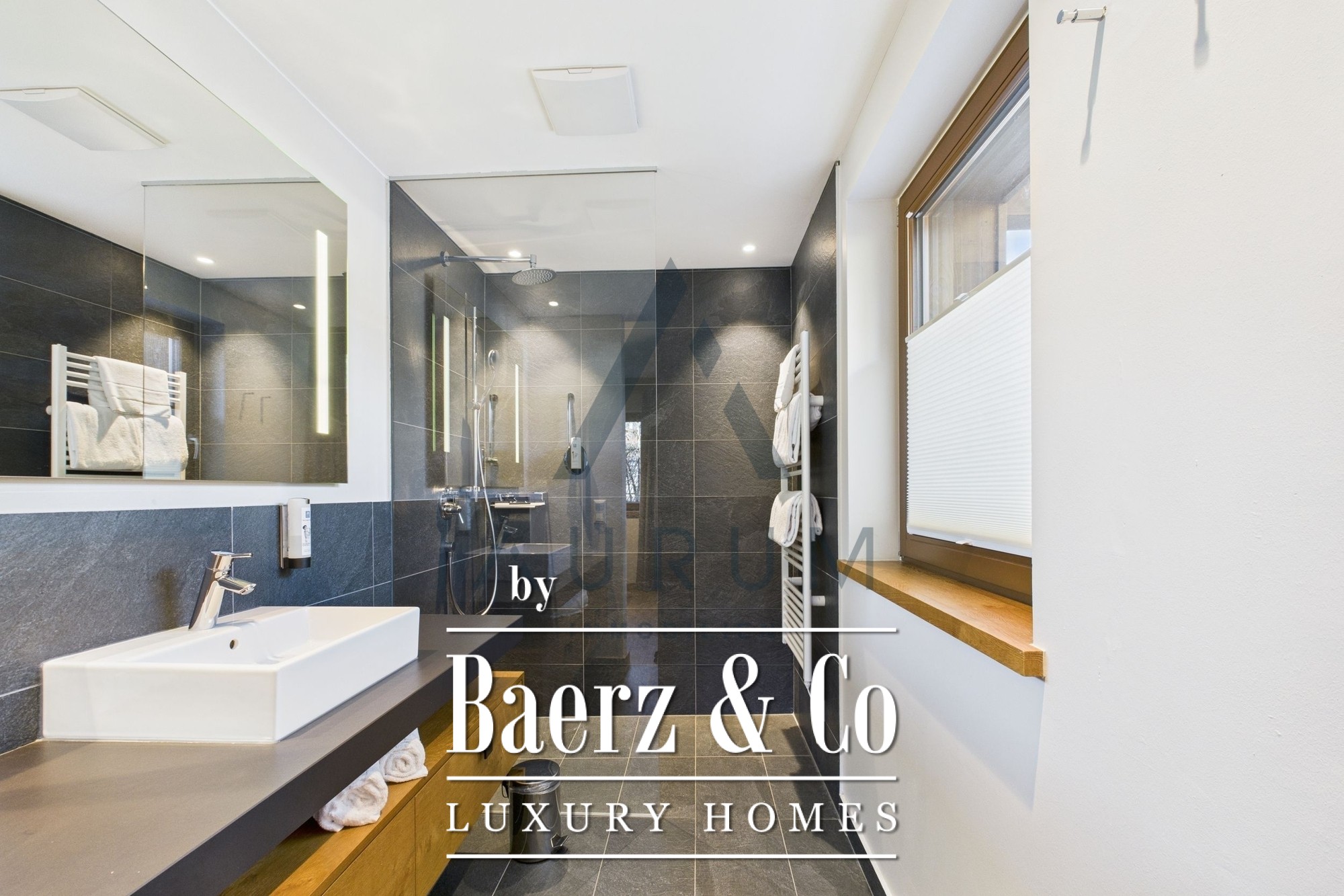 Die Wohnung erstreckt sich über zwei Etagen und überzeugt durch eine durchdachte Raumaufteilung. Im Erdgeschoss begrüßt Sie eine stilvolle Eingangshalle mit Garderobe, ein Gäste-WC sowie ein offener Wohn- und Essbereich, der von einer voll ausgestatteten, modernen Küche und einem Holzofen akzentuiert wird. Ein Schlafzimmer mit eigenem Bad ergänzt die Ebene. Eichenparkett und feines Feinsteinzeug sorgen für ein harmonisches Gesamtbild. Im Obergeschoss bieten zwei zusätzliche Schlafzimmer jeweils private en-suite Bäder mit Dusche, Badewanne und WC und erlauben so ein hohes Maß an Rückzug und Privatsphäre.