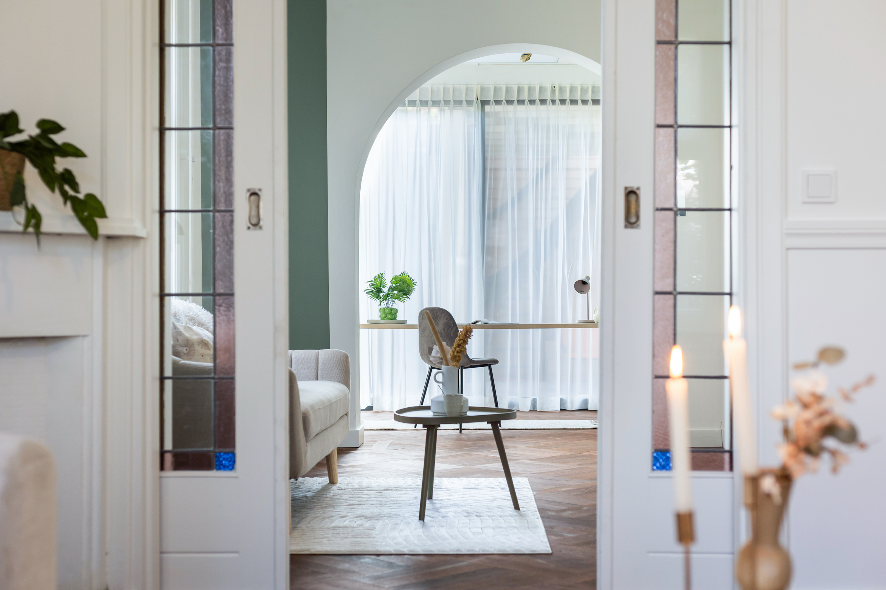 The villa underwent extensive modernisation in 2024 and 2025 and now radiates understated luxury. The finish is elegant and of high quality, with all key features renewed. Highlights include a luxurious Siematic kitchen with Siemens appliances, new HR++ frames and kitchen façade, a refined bathroom, a renewed toilet, and a stunning oak parquet floor in Art Deco style with a warm Frans Hals colour palette. The walls have been finished in a soft, warm hue, while the original panelled doors and authentic ceilings have been carefully preserved. A new central heating system (November 2025) with boiler, updated fuse box and three-phase power supply ensure maximum comfort.