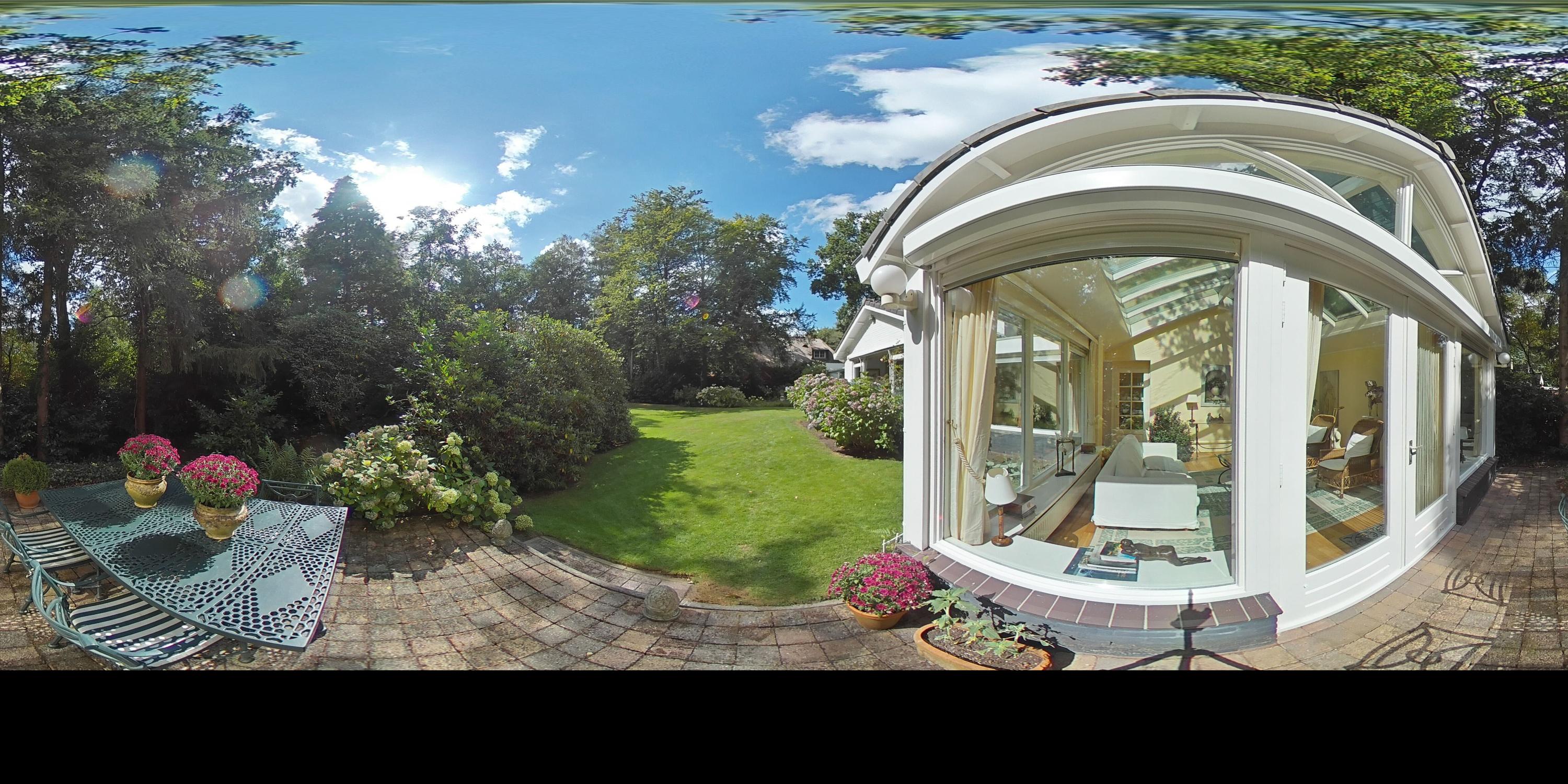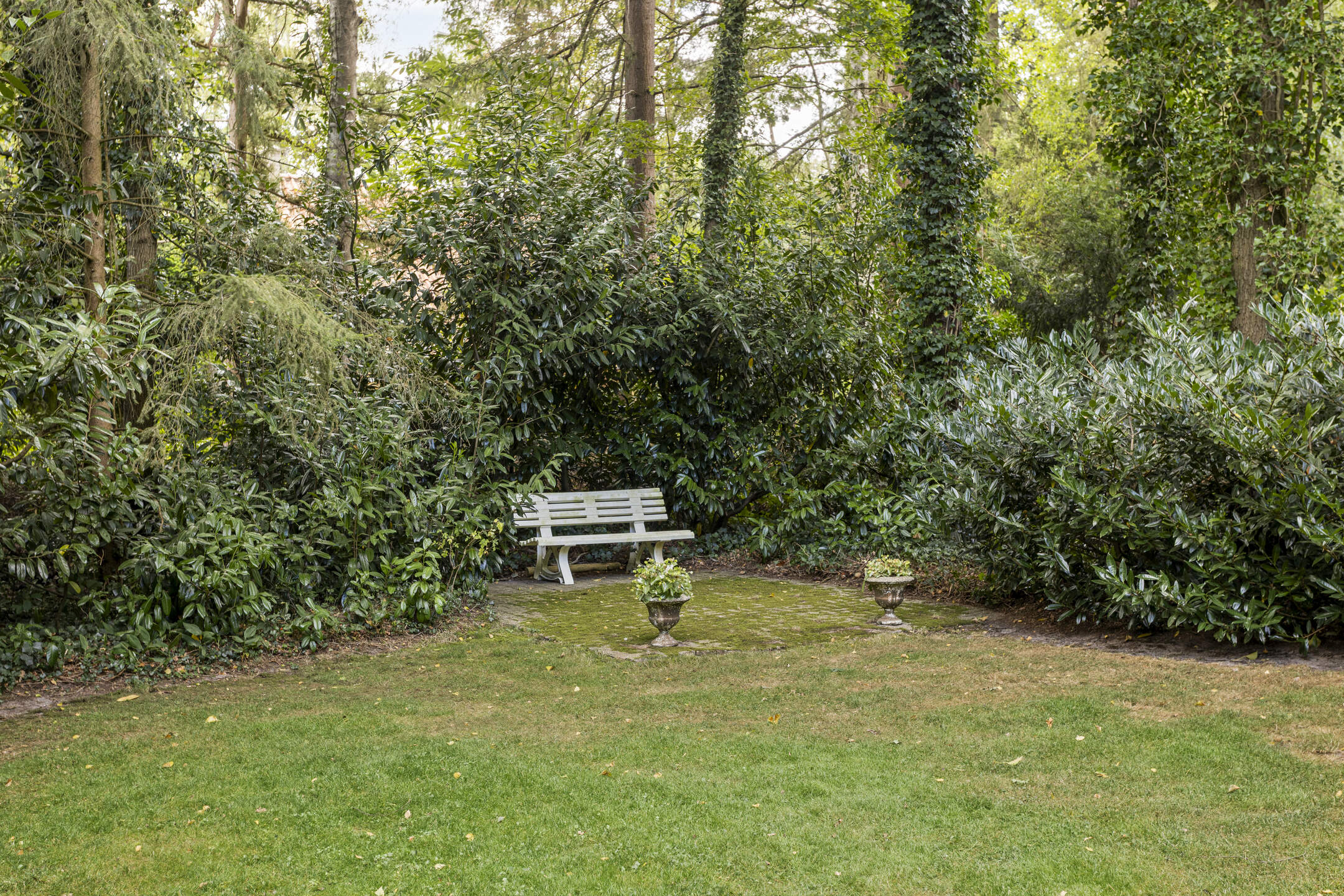 De parkachtige Engelse tuin is een droom; omvangrijk en schitterend onderhouden. De oriëntatie van het perceel is nagenoeg noord-zuid en de achtertuin baadt dus de hele dag in het zonlicht. De kinderen kunnen hier naar hartenlust hockeyen, voetballen en verstoppertje spelen. Overal zijn knusse hoekjes, zitjes en mooie zichtlijnen, en aan privacy is hier nooit een gebrek.