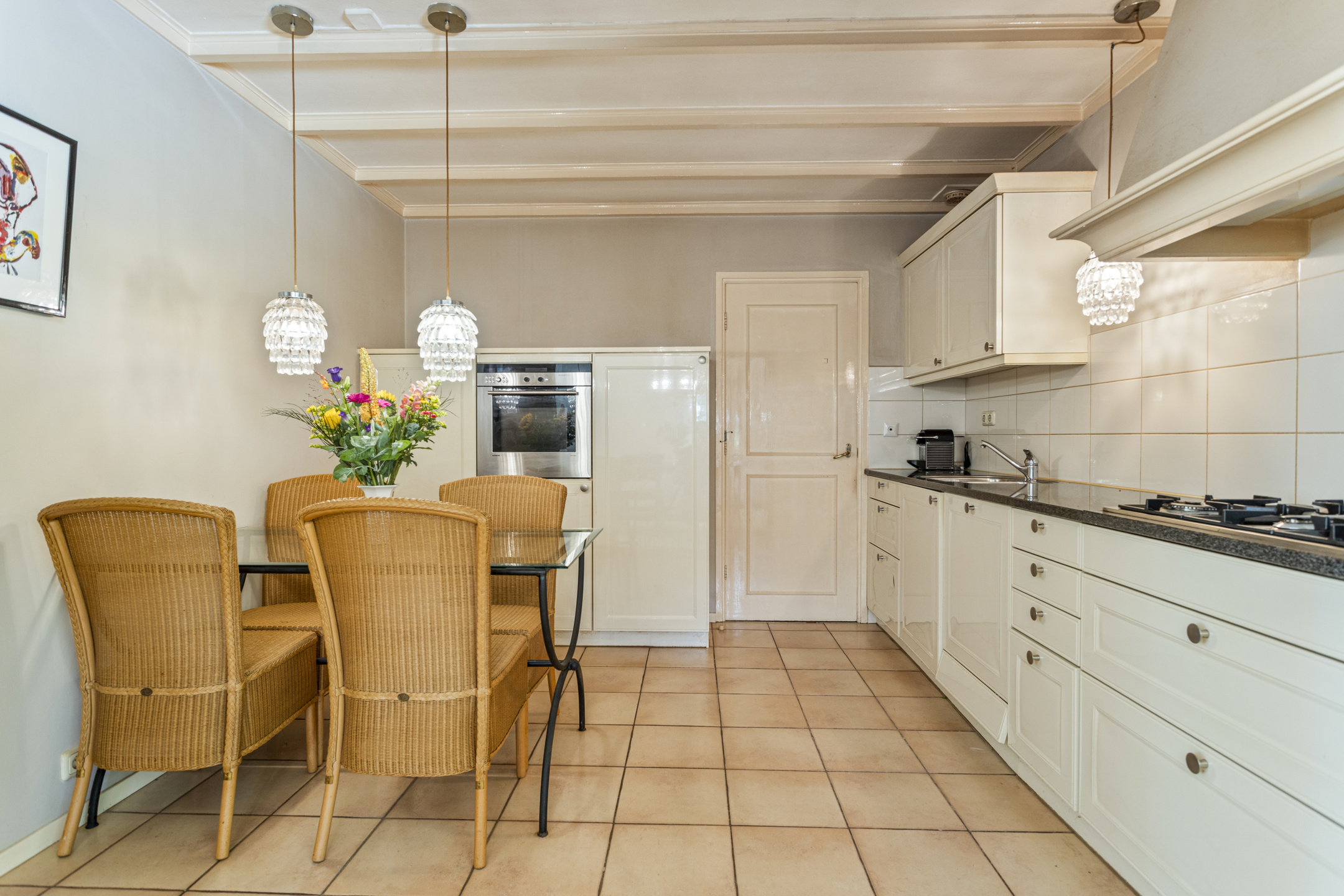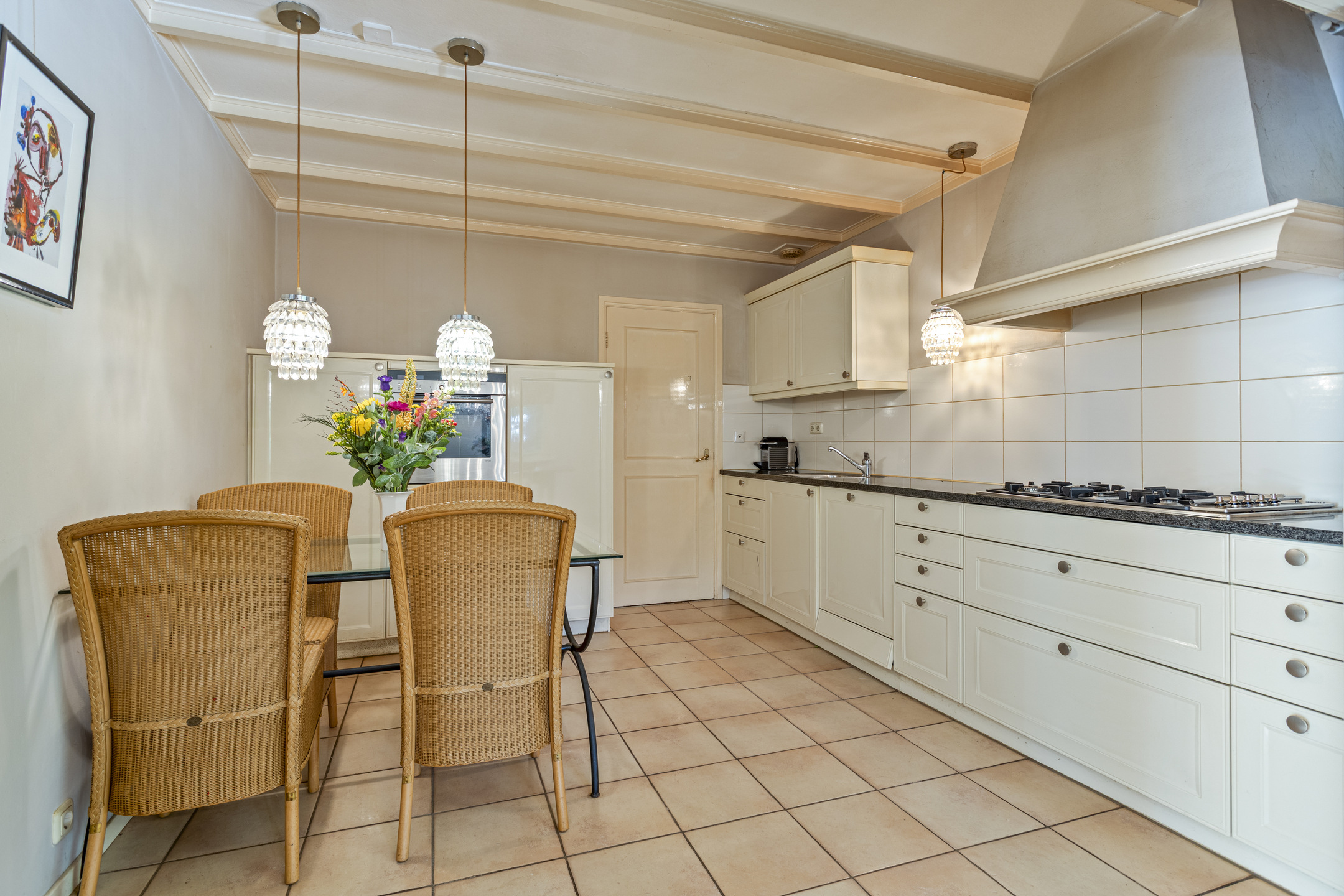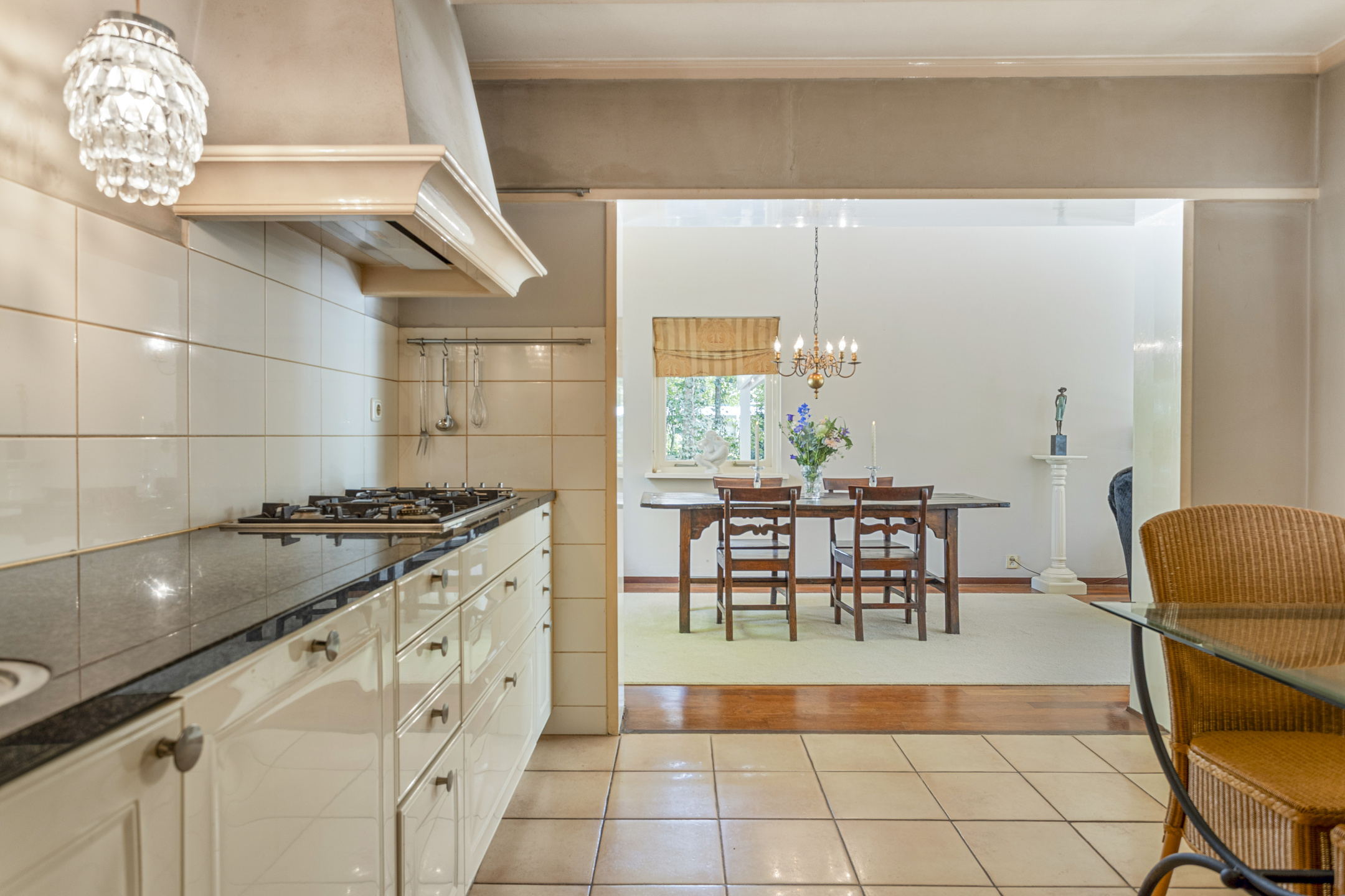 De living, keuken, tuinkamer en serre zijn ingenieus met elkaar verbonden, via open doorgangen, wat zorgt voor ruimtelijk gevoel waarbij elke kamer een eigen functie en sfeer kent.