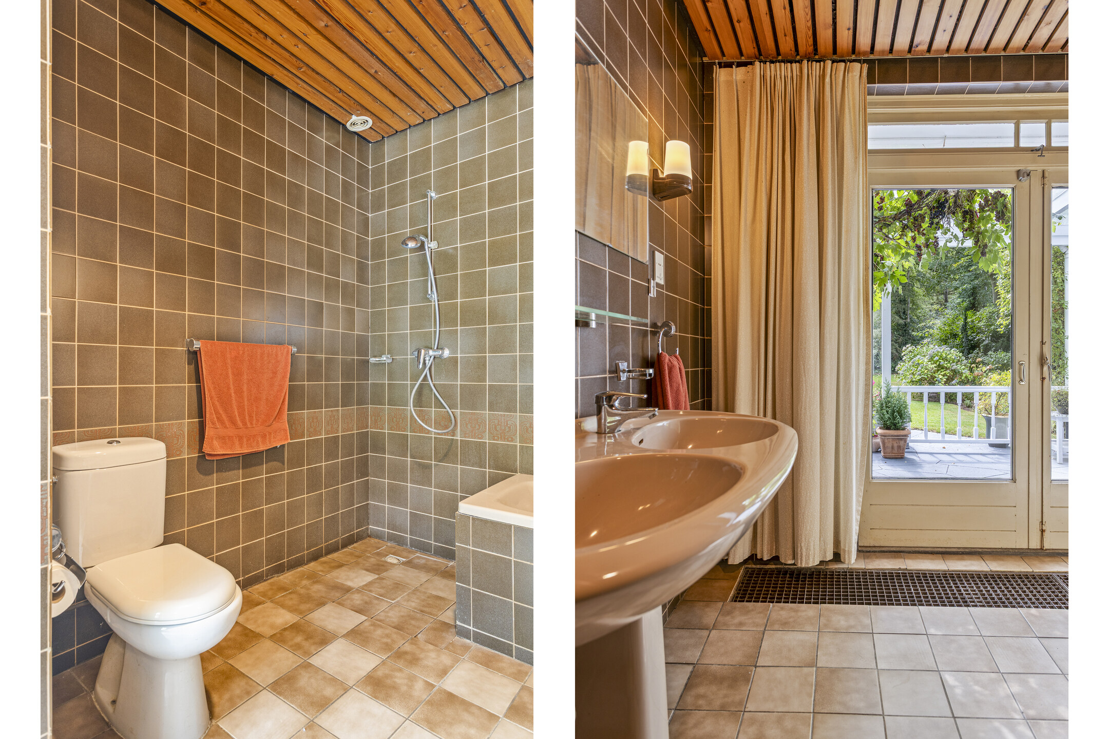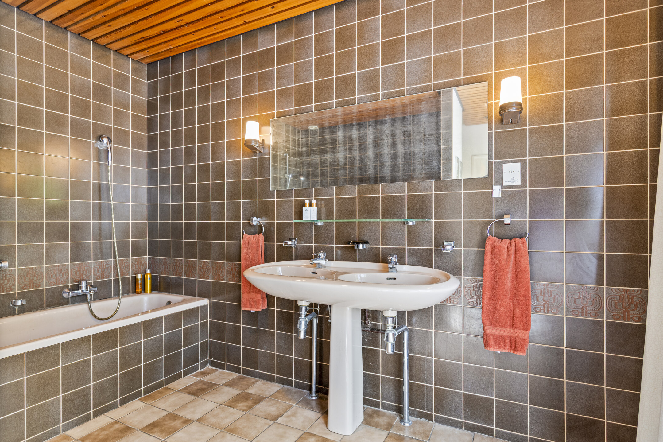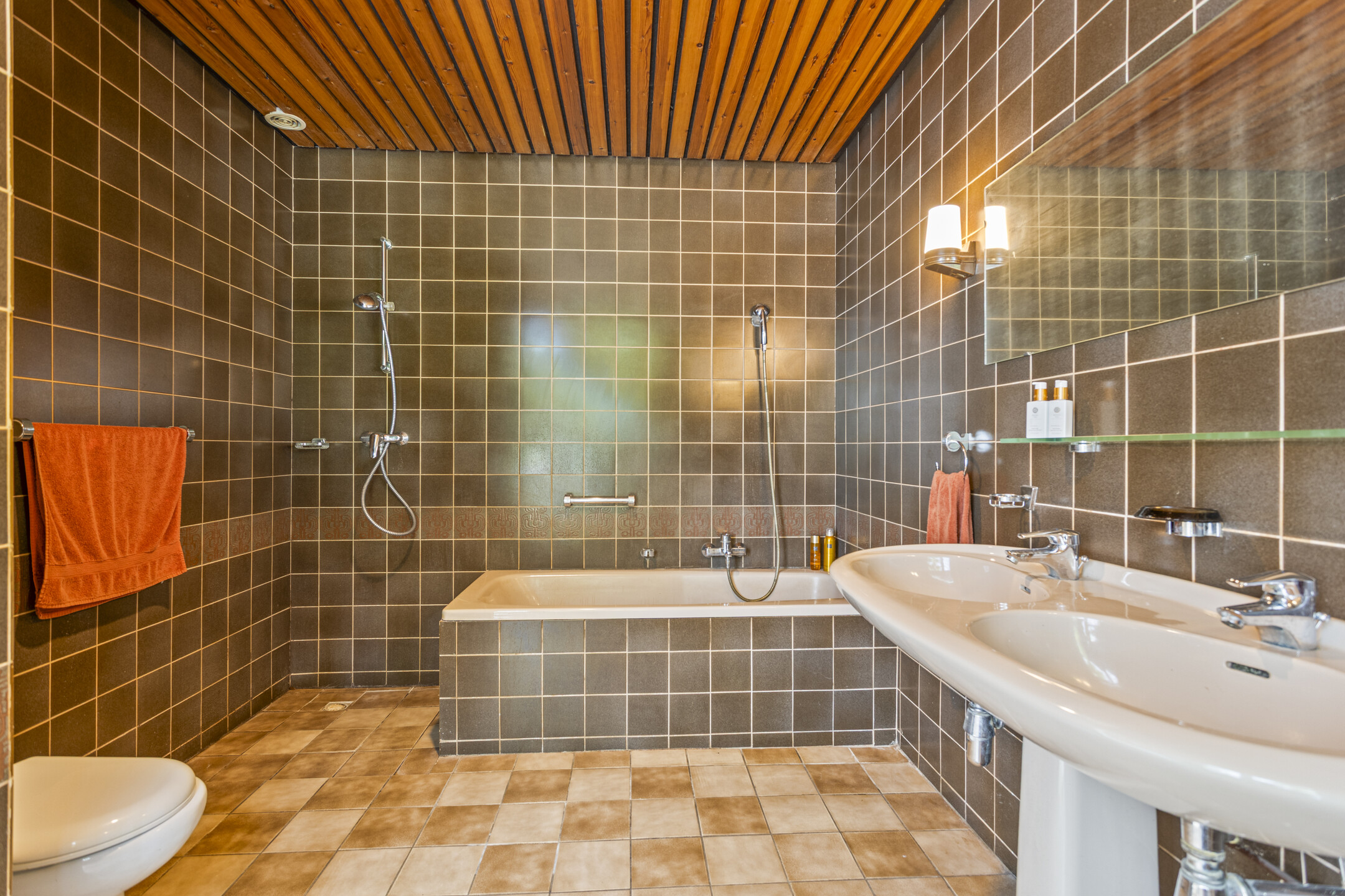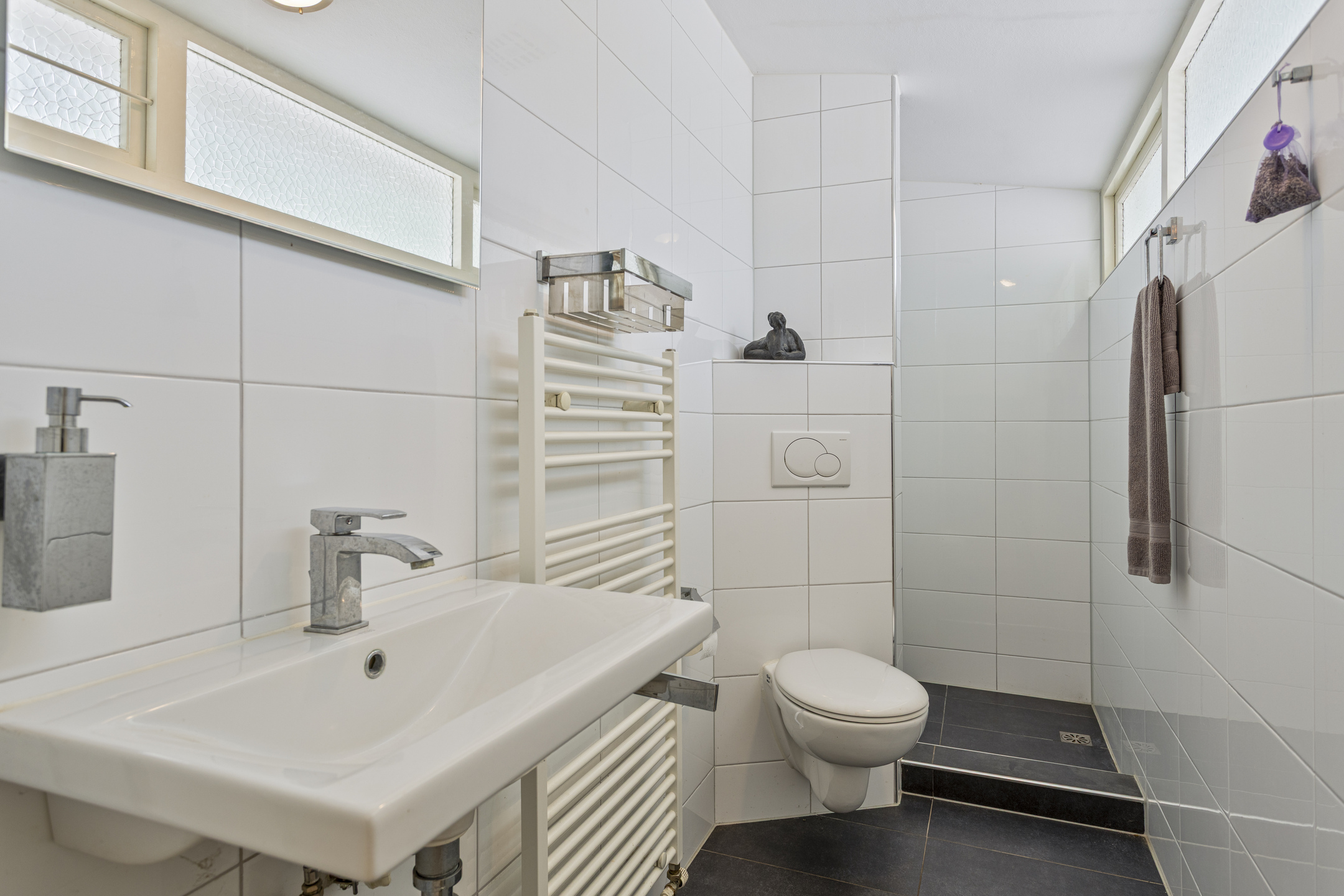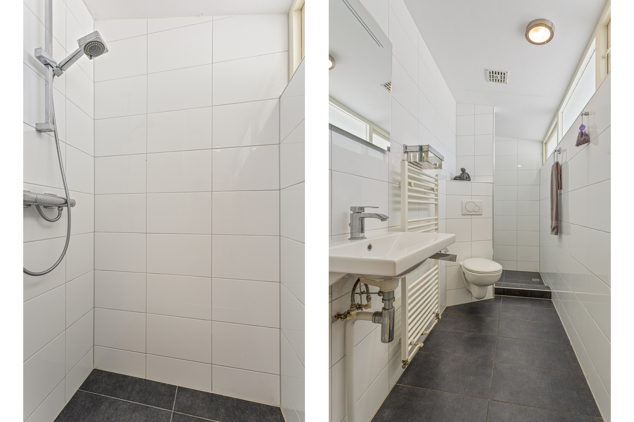 Rechts de deur naar de tweede badkamer, met inloopdouche, WC en wastafel.