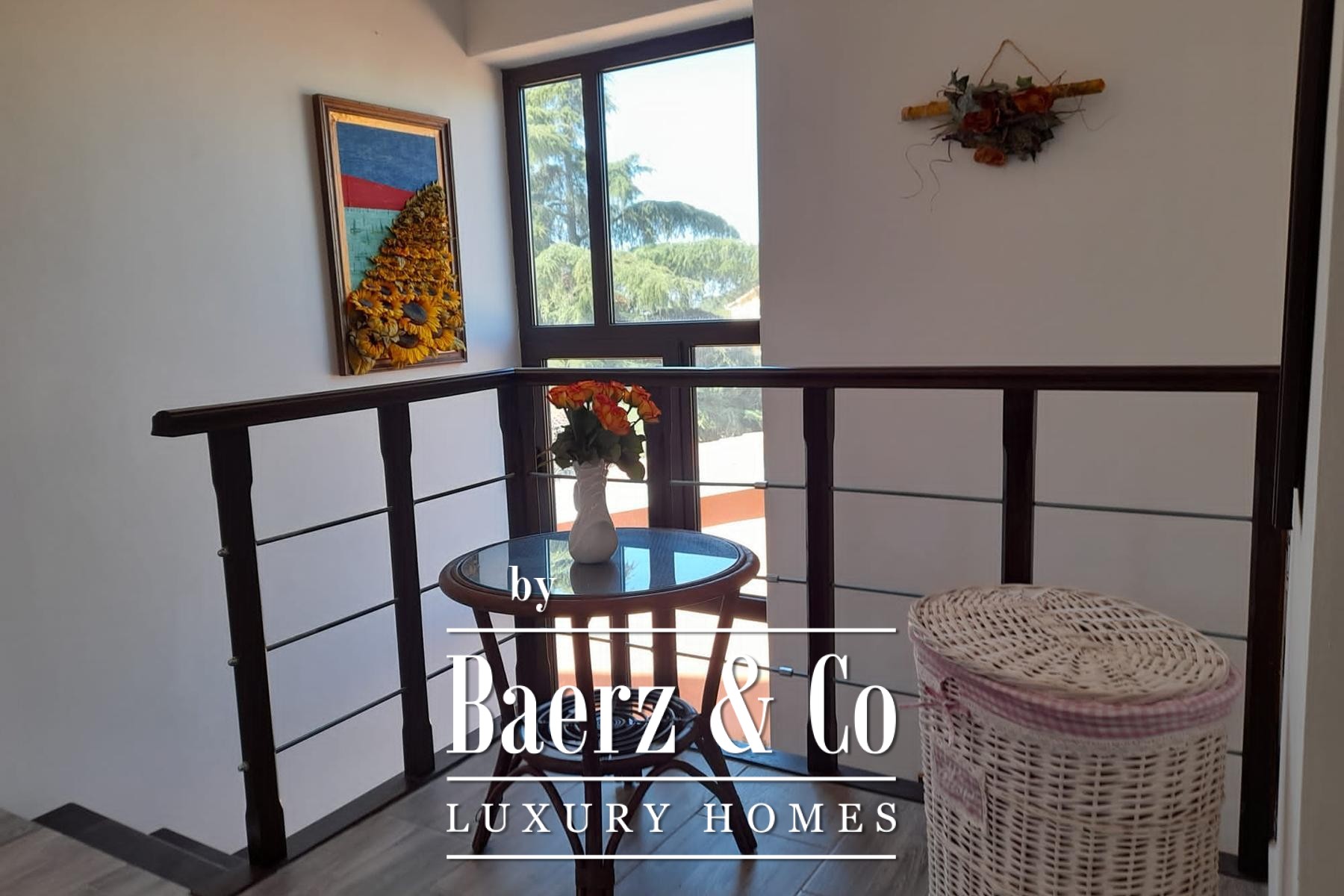 Im Obergeschoss bieten vier ruhige Schlafzimmer, jeweils mit Klimaanlage und TV, persönlichen Rückzugsraum; zwei davon teilen sich eine Terrasse mit Blick auf das Grundstück. Zwei zusätzliche Bäder sorgen für Komfort und ein entspanntes Lebensgefühl.