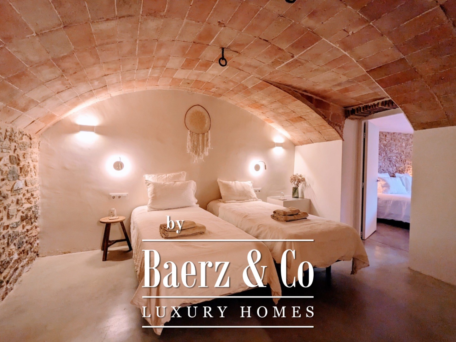 Auf 1.000 m² Wohnfläche beeindruckt das Haupthaus mit Gewölbedecken, poliertem Beton, Naturstein und massivem Eichenholz. Antike Steinböden verleihen dem Eingangsbereich Gewicht und führen in offene Wohnbereiche, die Ruhe und Verbundenheit fördern. Das Anwesen gliedert sich in drei eigenständige Bereiche: das ursprüngliche 650 m² große Bauernhaus, eine private Residenz mit 150 m² sowie ein Hausmeisterapartment mit 200 m². Über neun Schlafzimmer und acht Bäder erstrecken sich mehrere Gästesuiten mit privaten Terrassen und Zugang zum Garten. Eine überdachte und eine offene Terrasse, eine Profiküche sowie originale Kamine machen das Anwesen zu jeder Jahreszeit außergewöhnlich.