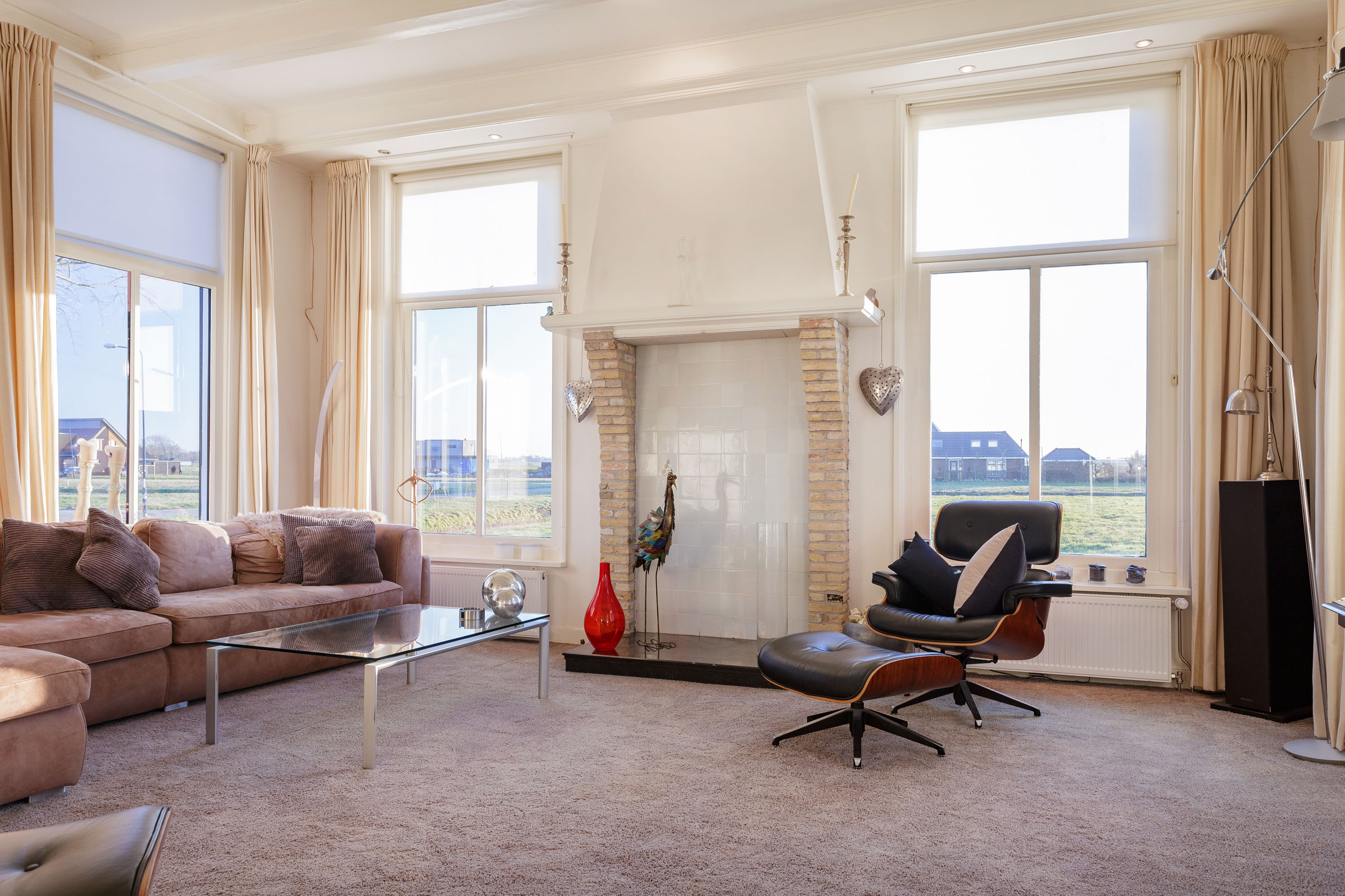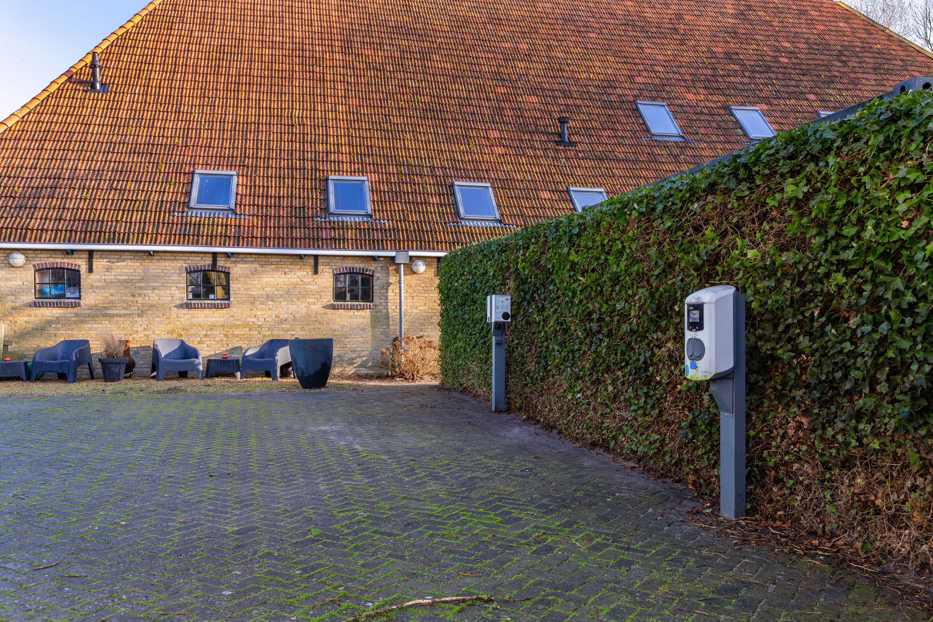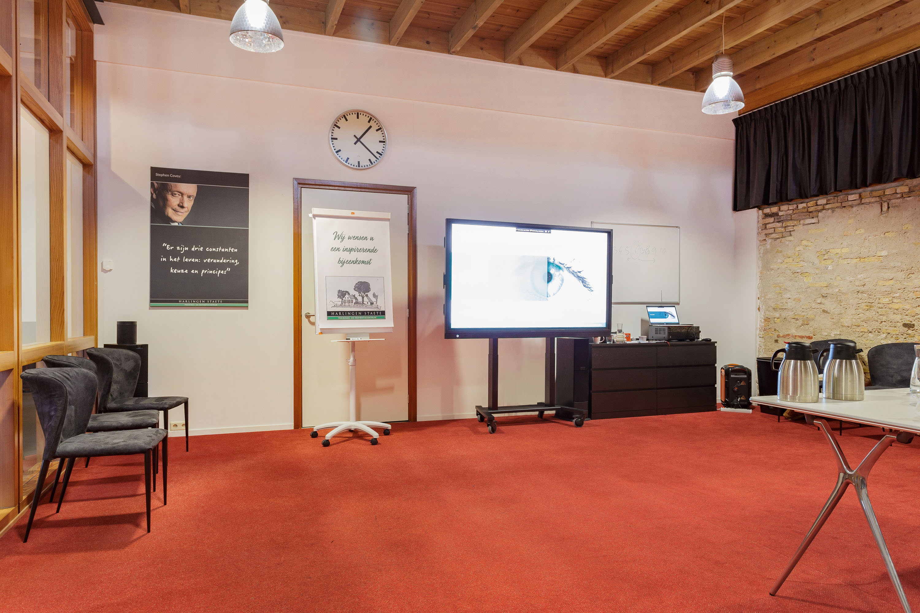 The former barn has been professionally renovated and completely modernized. Imposing open stable doors with glass entrance, is a striking feature upon arrival at Harlingen Staete. There are now 4 beautiful fully furnished rooms with en-suite bathroom. Furthermore, downstairs are 3 spacious multifunctional rooms situated around a large open-plan hall with a view of the imposing ridge in the middle of the barn. All rooms are light and atmospheric due to the use of a lot of glass, the preservation of the old stable windows and the beautiful old beams of the 6-sided part of the barn in sight. It goes without saying that all high-tech connections/wiring for internet, light, presentations etc. are present as well as a pantry and separate toilet groups.
