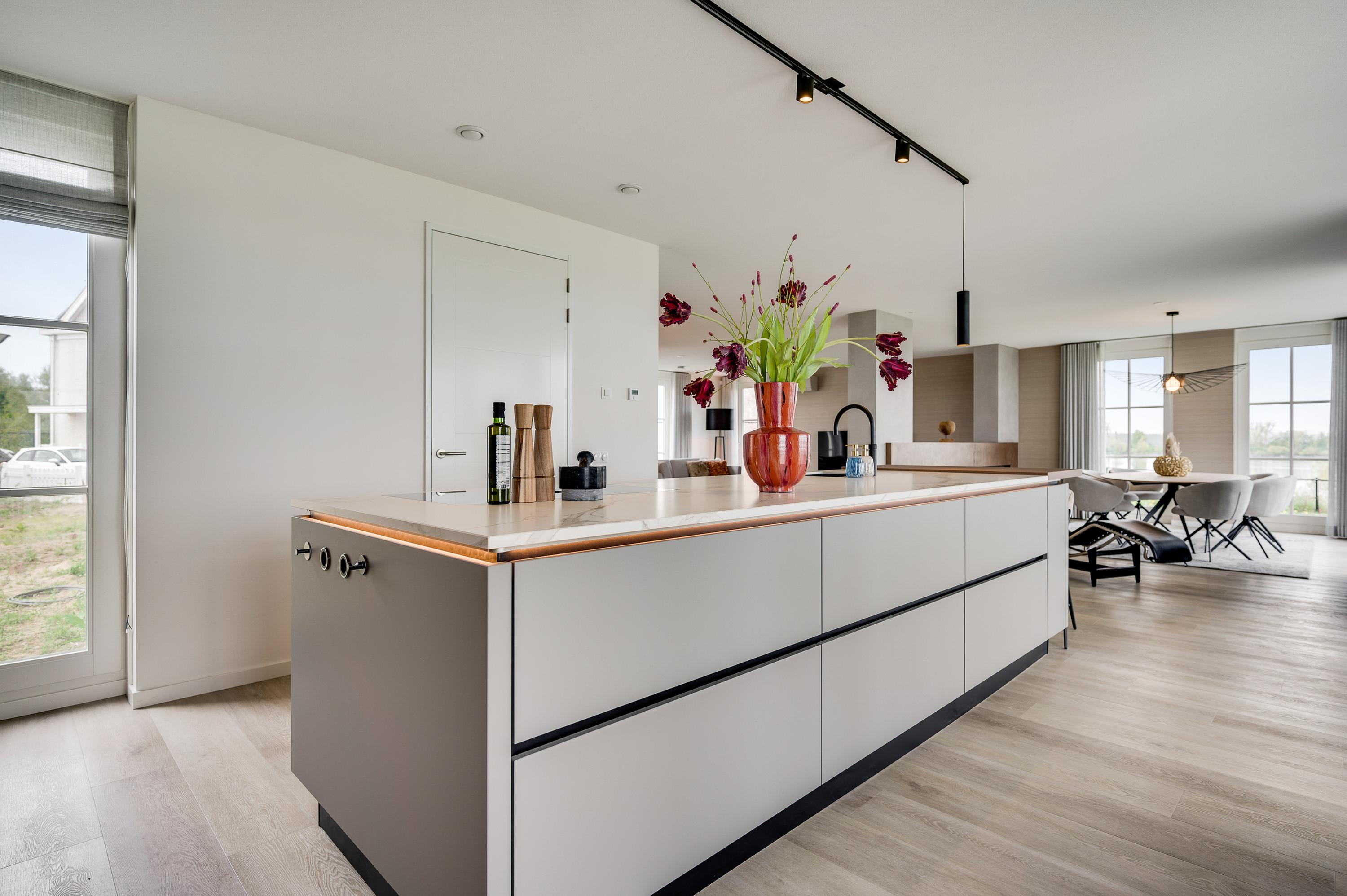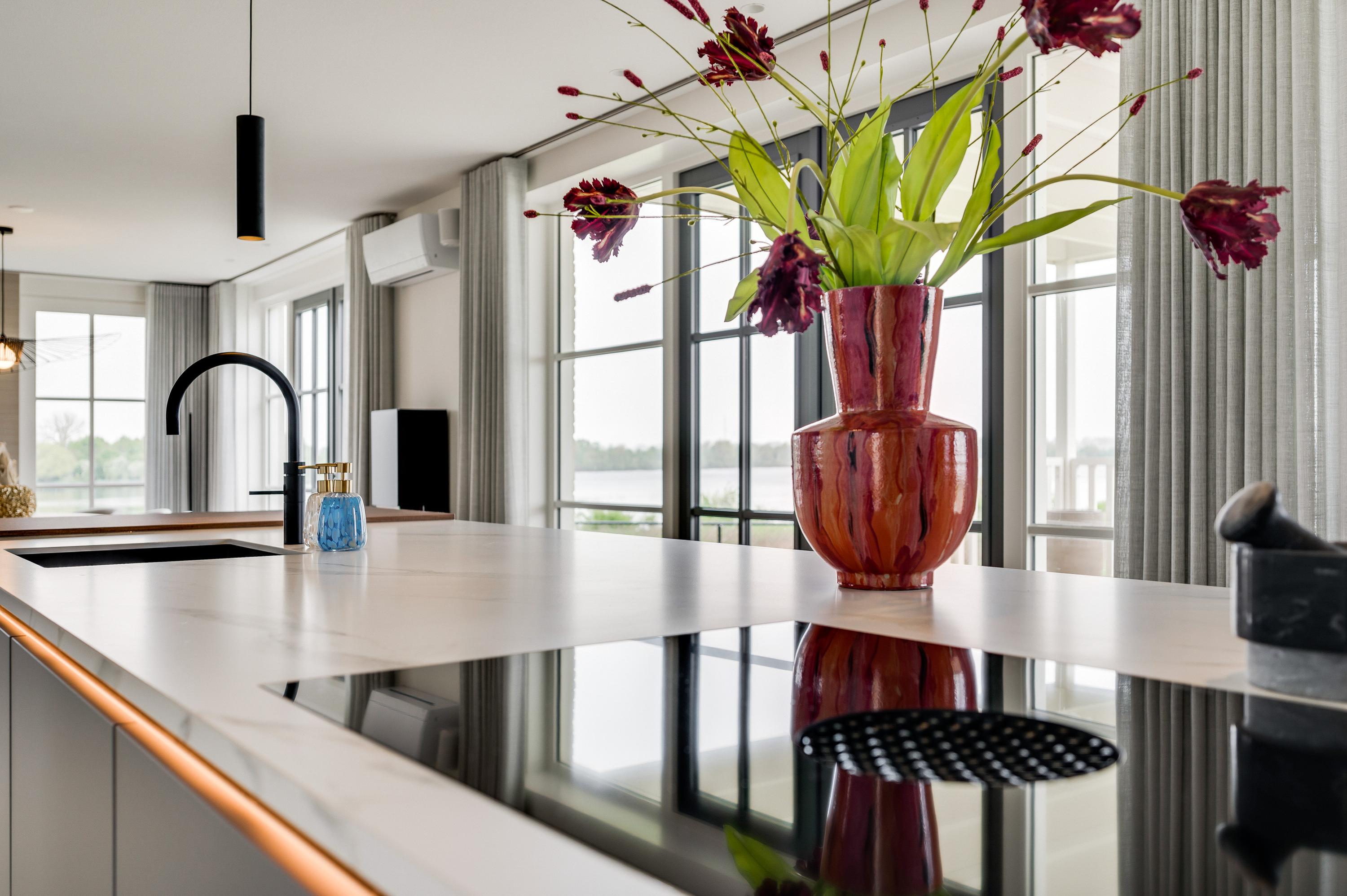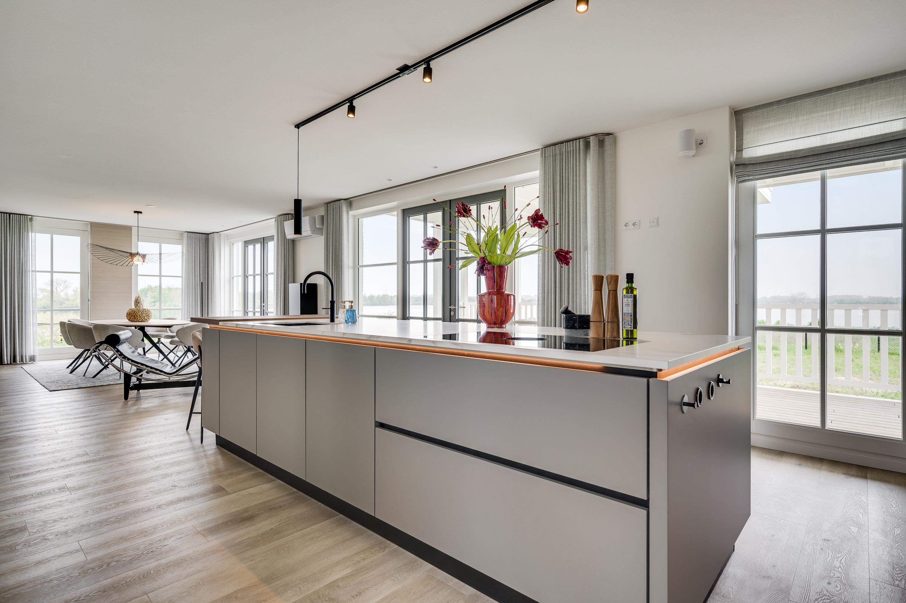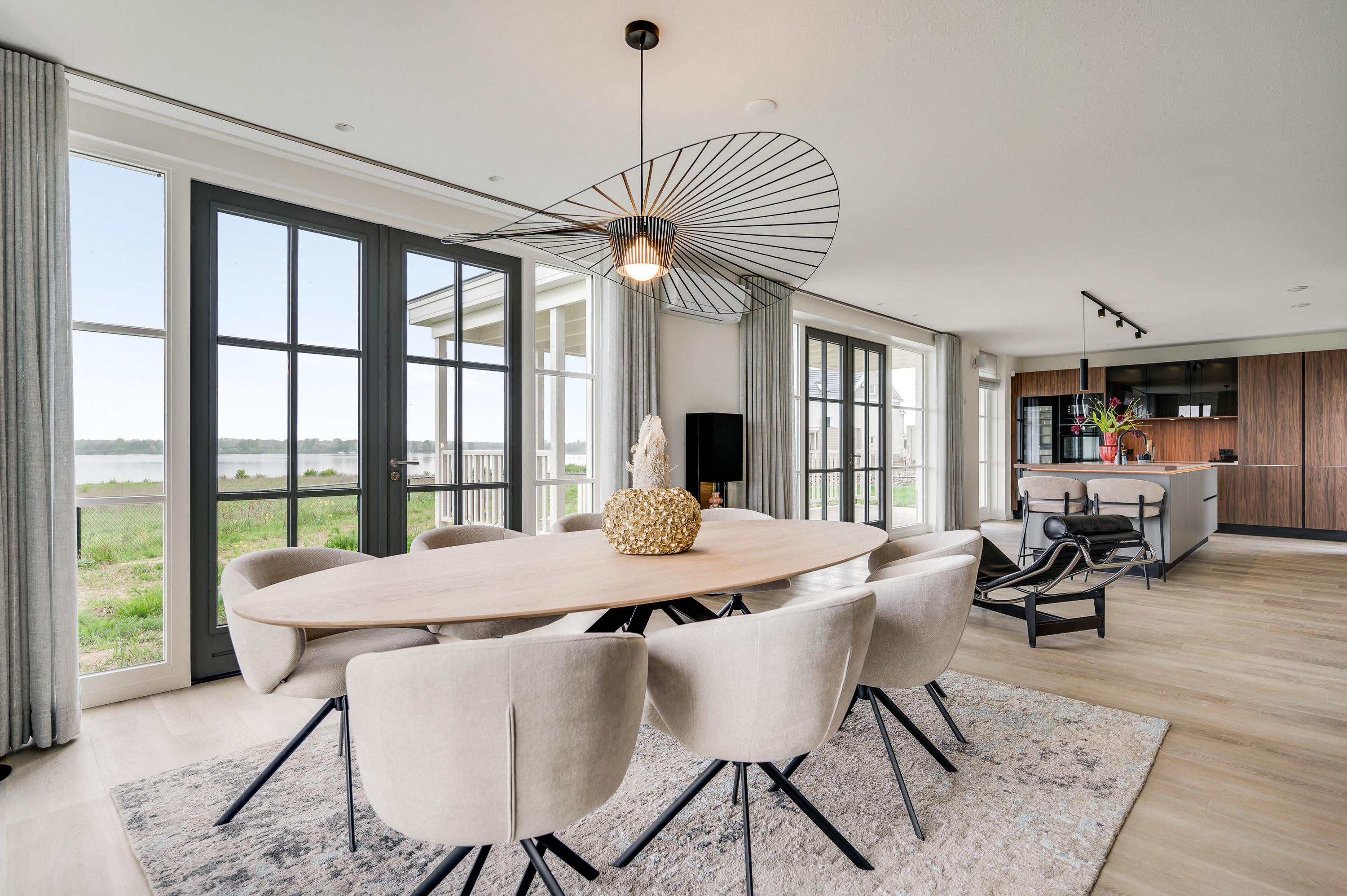 Villa Herten vereint Wasser, Licht und moderne Architektur zu einer seltenen Symbiose. Diese Villa in Herten bietet 266 m² Wohnfläche und liegt einzigartig an der Spitze einer Halbinsel, umgeben von den stets wechselnden Impressionen des Oolderplas. Von der überdachten Veranda aus eröffnet sich tagtäglich ein Panorama, das besonders in den Abendstunden durch das sanfte Spiel von Wasser und Himmel geprägt wird.