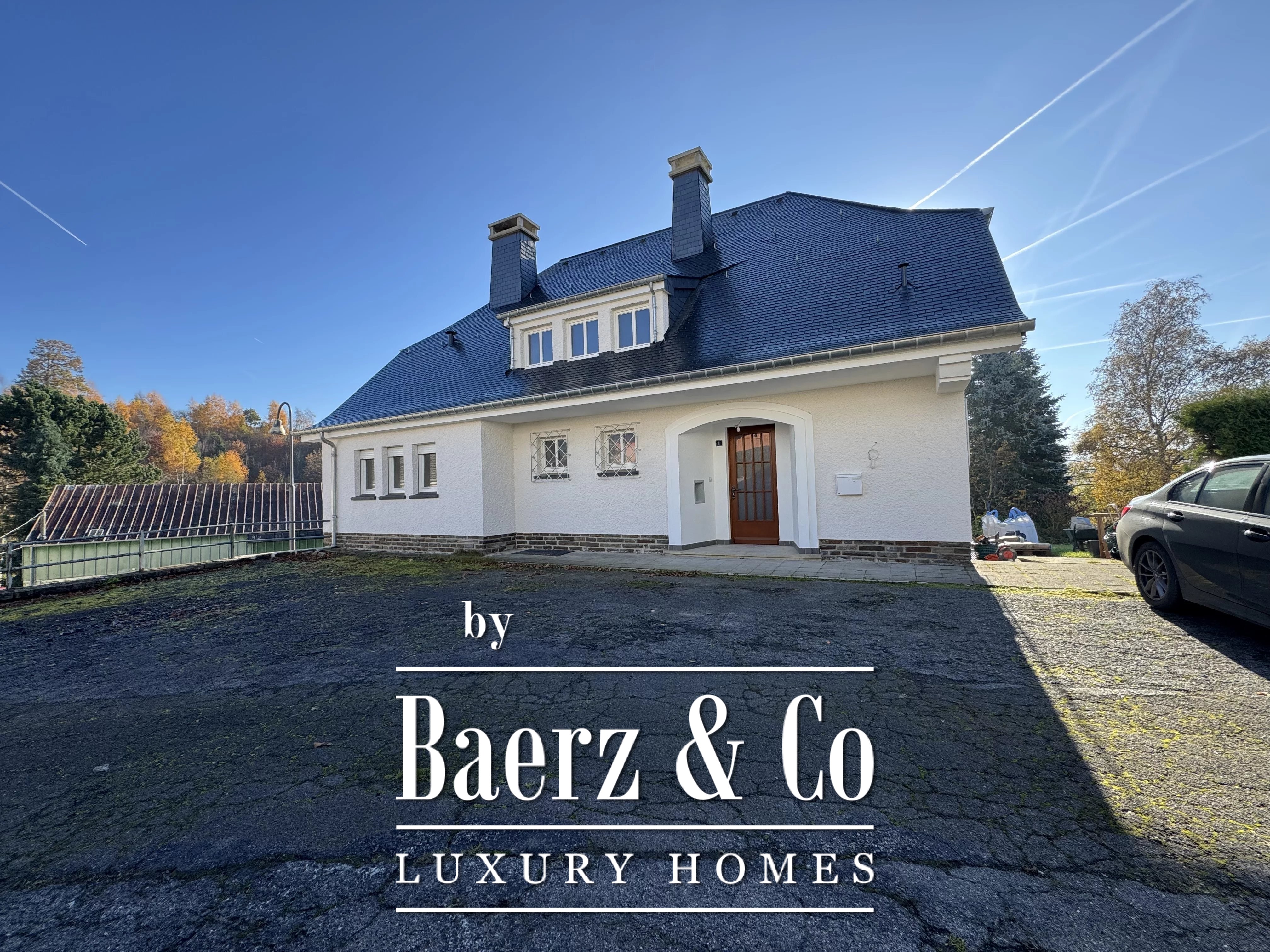 Eine 22,23 m² große Garage, drei Kellerräume und eine Diele im Untergeschoss bieten vielfältigen Nutzraum. Das als denkmalgeschütztes Gebäude anerkannte Anwesen bietet eine ruhige Dorfkulisse in Luxemburg, in der sich Ruhe und Privatsphäre harmonisch verbinden.