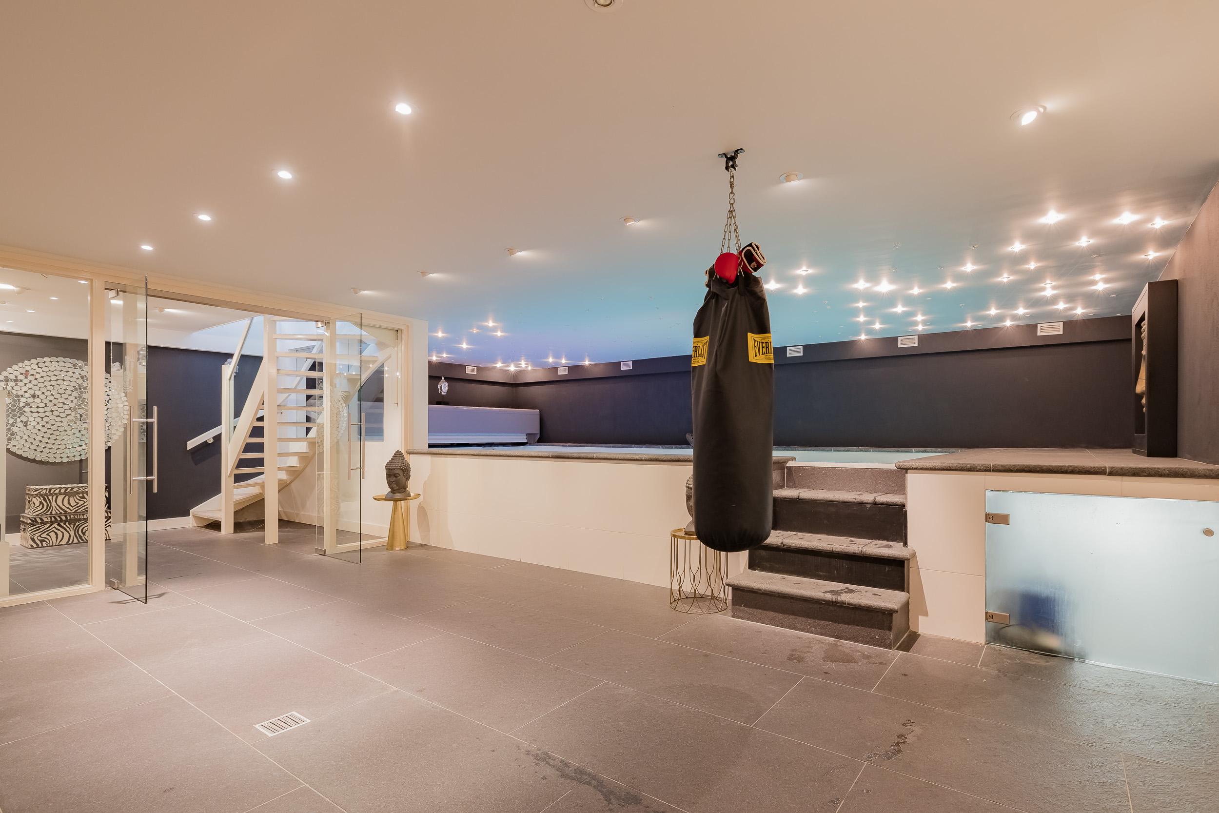 Im Untergeschoss verwöhnt die Residenz mit beheiztem Innenpool, Wellnesseinrichtungen und Raum für Entspannung oder Hobbys. Draußen lädt eine großzügige Terrasse mit mehreren Sitzbereichen und privatem Bootssteg zum direkten Zugang zu den Kagerplassen ein. Der angelegte Garten bietet ruhige Abgeschiedenheit, einen Whirlpool und Parkmöglichkeiten auf dem Grundstück.