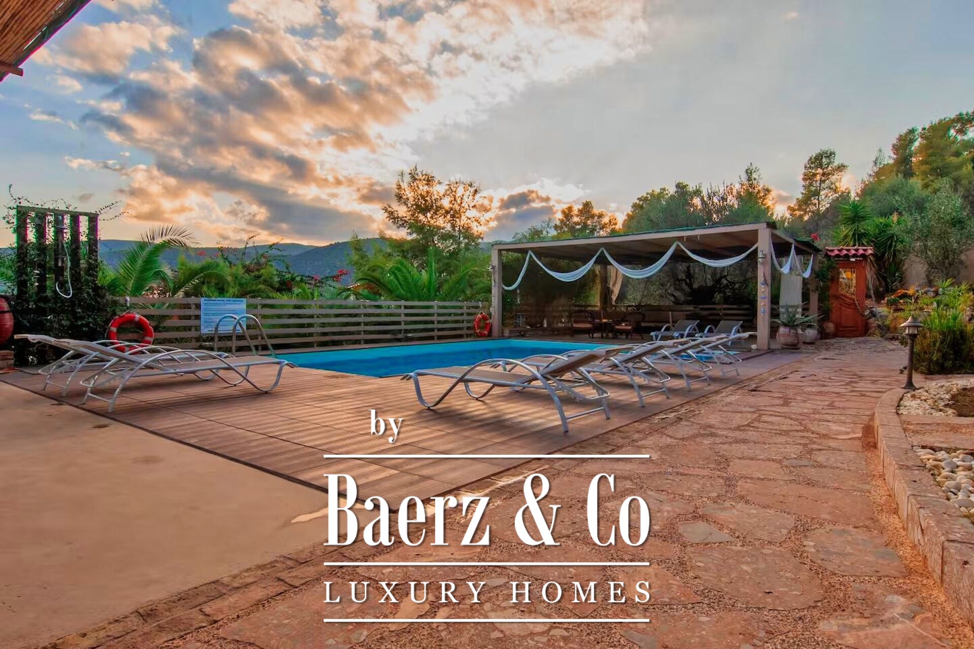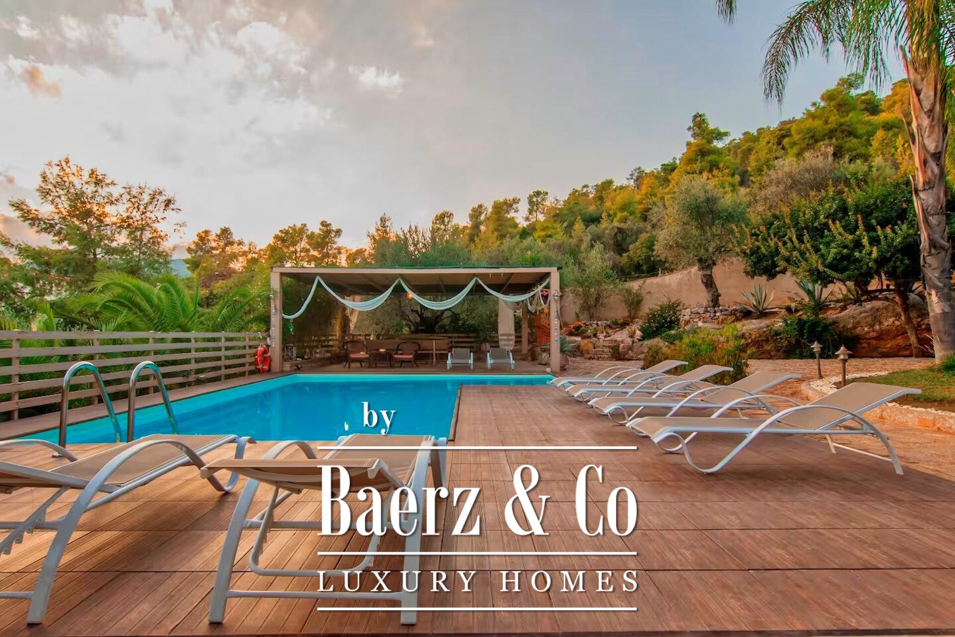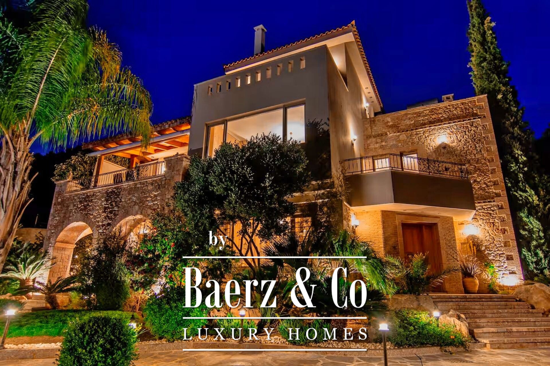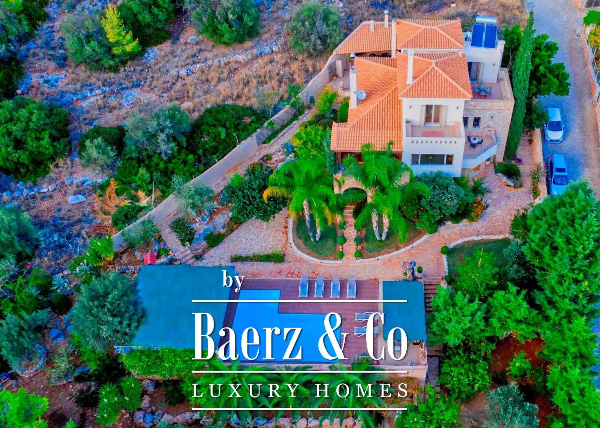 Die Villa Korfos fügt sich harmonisch in den ruhigen Rhythmus der Saronischen Küste ein, nur 250 Meter vom Meer entfernt. Das Anwesen erstreckt sich auf 335 m² über drei sorgfältig durchdachte Ebenen und richtet sich an Menschen, die Licht, Privatsphäre und bleibende Qualität schätzen. Beeindruckende, 180 Grad umfassende Meerblicke bestimmen das Ambiente—sichtbar von großzügigen Veranden und den behaglich-eleganten Innenräumen.