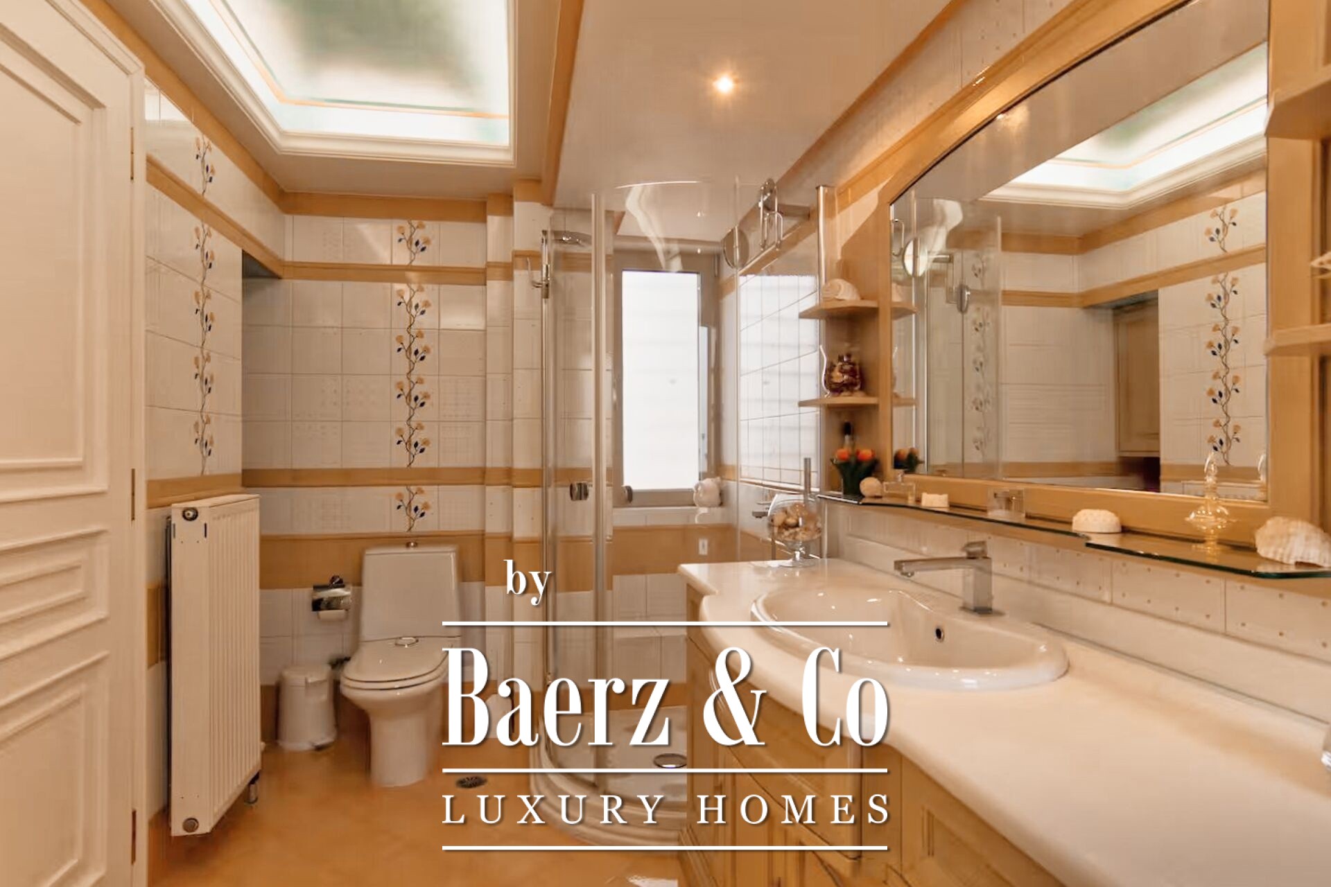 Die Hauptebene umfasst ein Wohnzimmer mit Kamin, eine halboffene Küche mit Granitarbeitsflächen und Markengeräten, ein Schlafzimmer, ein Gäste-WC sowie weitläufige Terrassen, die sich zum Horizont öffnen. In der dritten Etage befinden sich zwei Schlafzimmer—jeweils mit eigenem Balkon—und ein Badezimmer mit Hydromassagewanne, während das Erdgeschoss eine Master-Suite mit eigenem Bad sowie ein separates Apartment mit zwei Schlafzimmern, Küche und Wohnbereich bietet. Insgesamt sorgen fünf Badezimmer für höchsten Komfort.