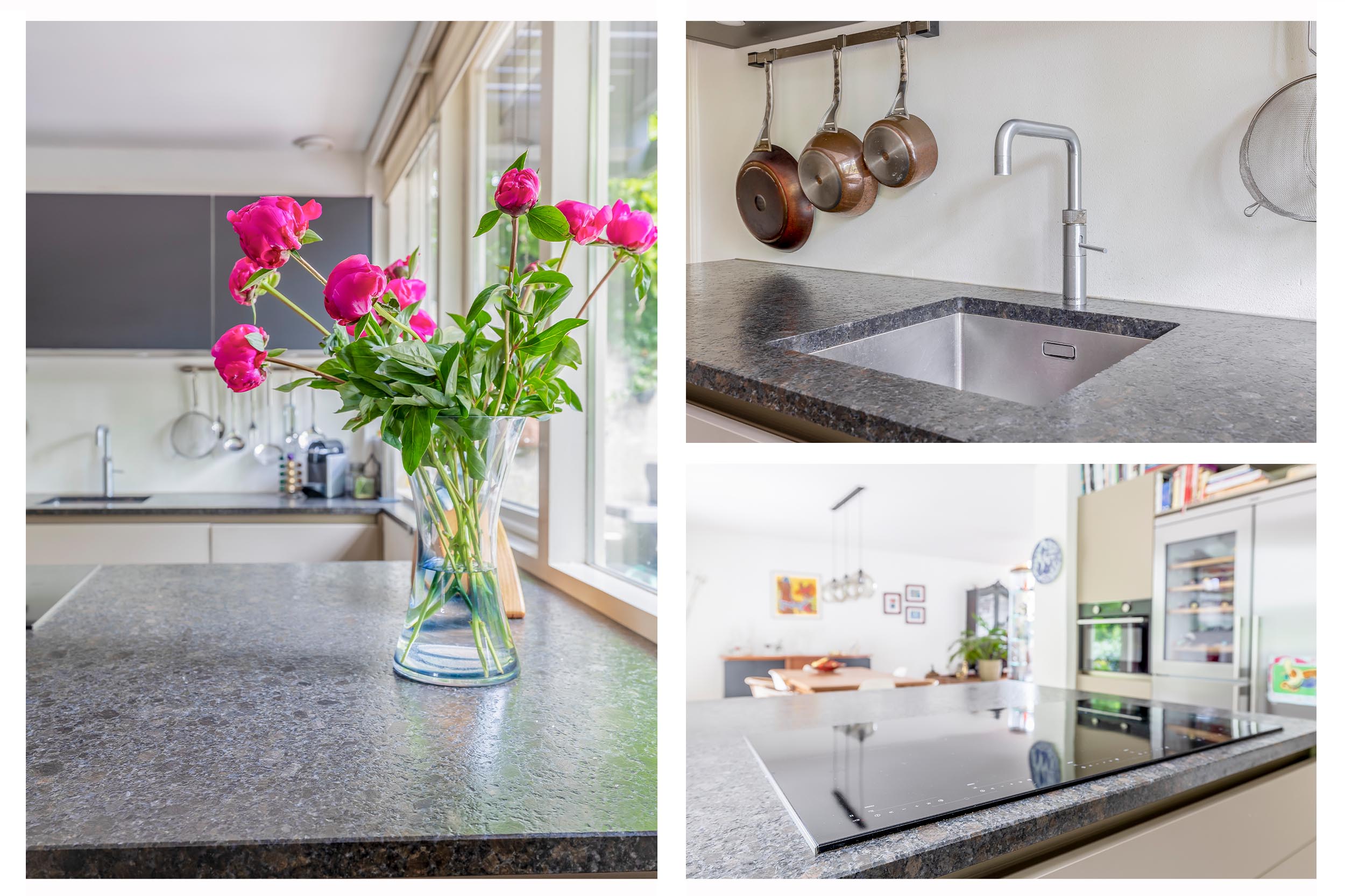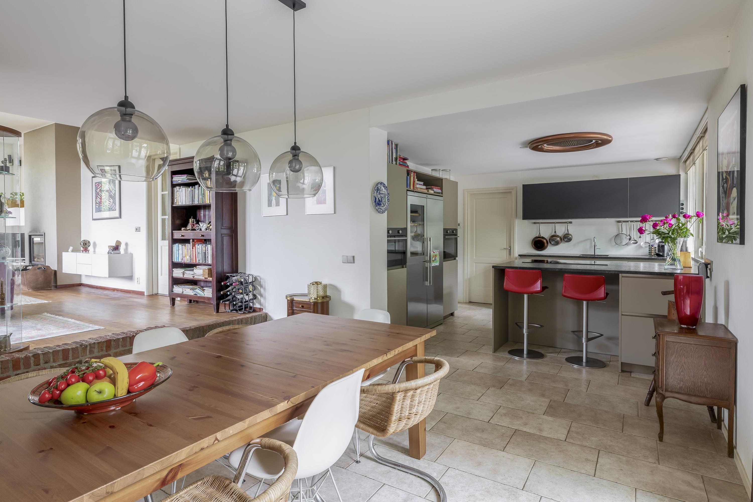 Innen laden großzügige Bereiche zu vielfältigen Wohnkonzepten ein. Sechs Schlafzimmer und zwei Badezimmer bieten Flexibilität für Familie oder Gäste. Das Wohnzimmer bildet das Herzstück und wird durch einen offenen Kamin sowie doppelte französische Türen geprägt, die das Innere nahtlos mit den sonnigen Terrassen im Garten verbinden. Die geräumige, modernisierte Küche mit Steinarbeitsplatte, Kochinsel, Weinkühlschrank und Kombiöfen bietet Ausblick ins private Grün. Fliesen- und Parkettböden, Fußbodenheizung und teilweise Wanddämmung zeugen von hoher Sorgfalt. Eine Sauna, mehrere Hobby- und Abstellräume sowie eine gut isolierte, beheizte Garage erweitern die Möglichkeiten.