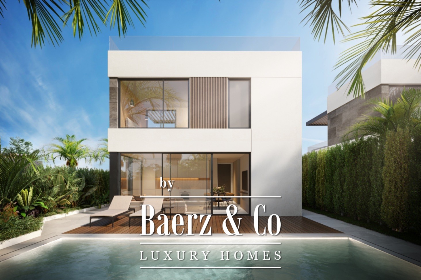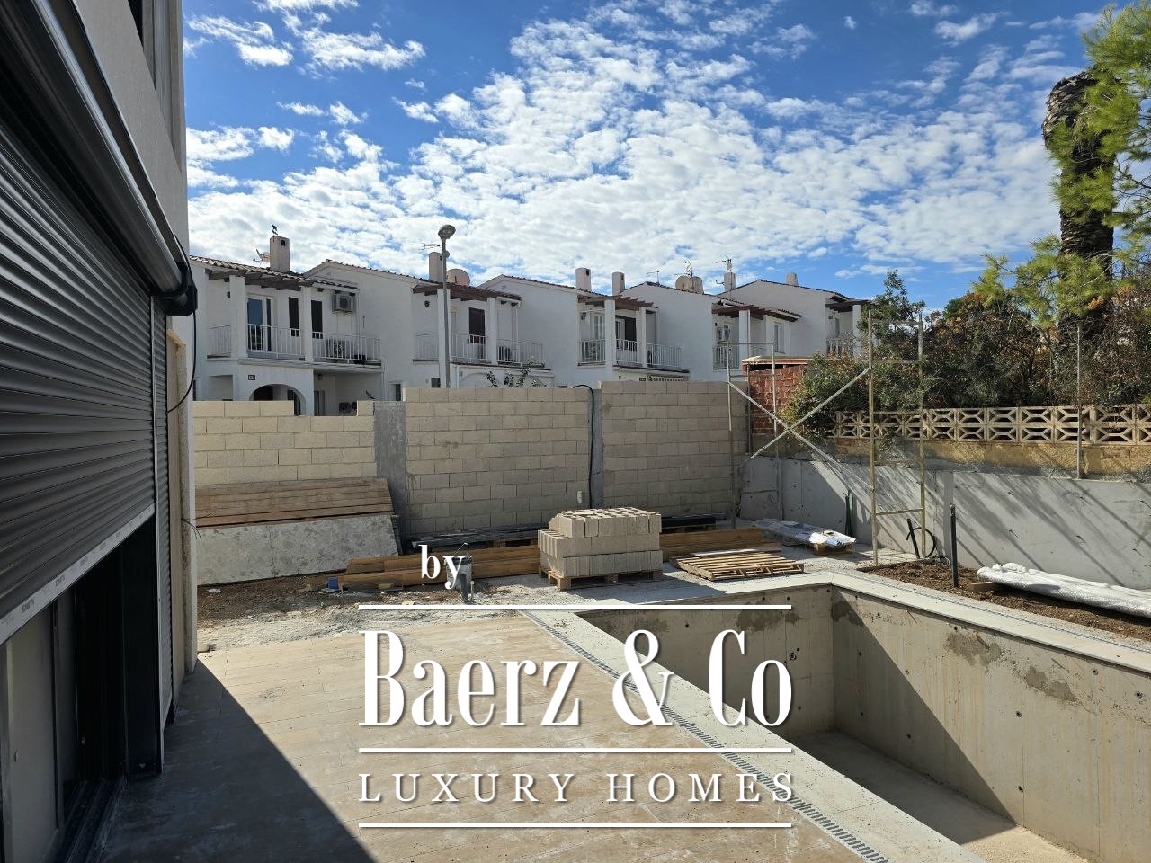 Nach dem Eintreten empfängt Sie ein ruhiger Garten sowie eine offene Terrasse, die den mediterranen Lebensstil widerspiegeln; eine Außenküche und ein Loungebereich laden zu langen Zusammenkünften unter der Sonne ein. Im Inneren entsteht durch das offene Wohn- und Esszimmer mit integrierter Küche ein fließender Raum, ideal für geselliges Beisammensein ebenso wie für die täglichen Familienrituale. Im Erdgeschoss befinden sich zudem ein Gästezimmer, ein Badezimmer und ein begehbarer Kleiderschrank, was das Wohnkonzept vielseitig und komfortabel macht.