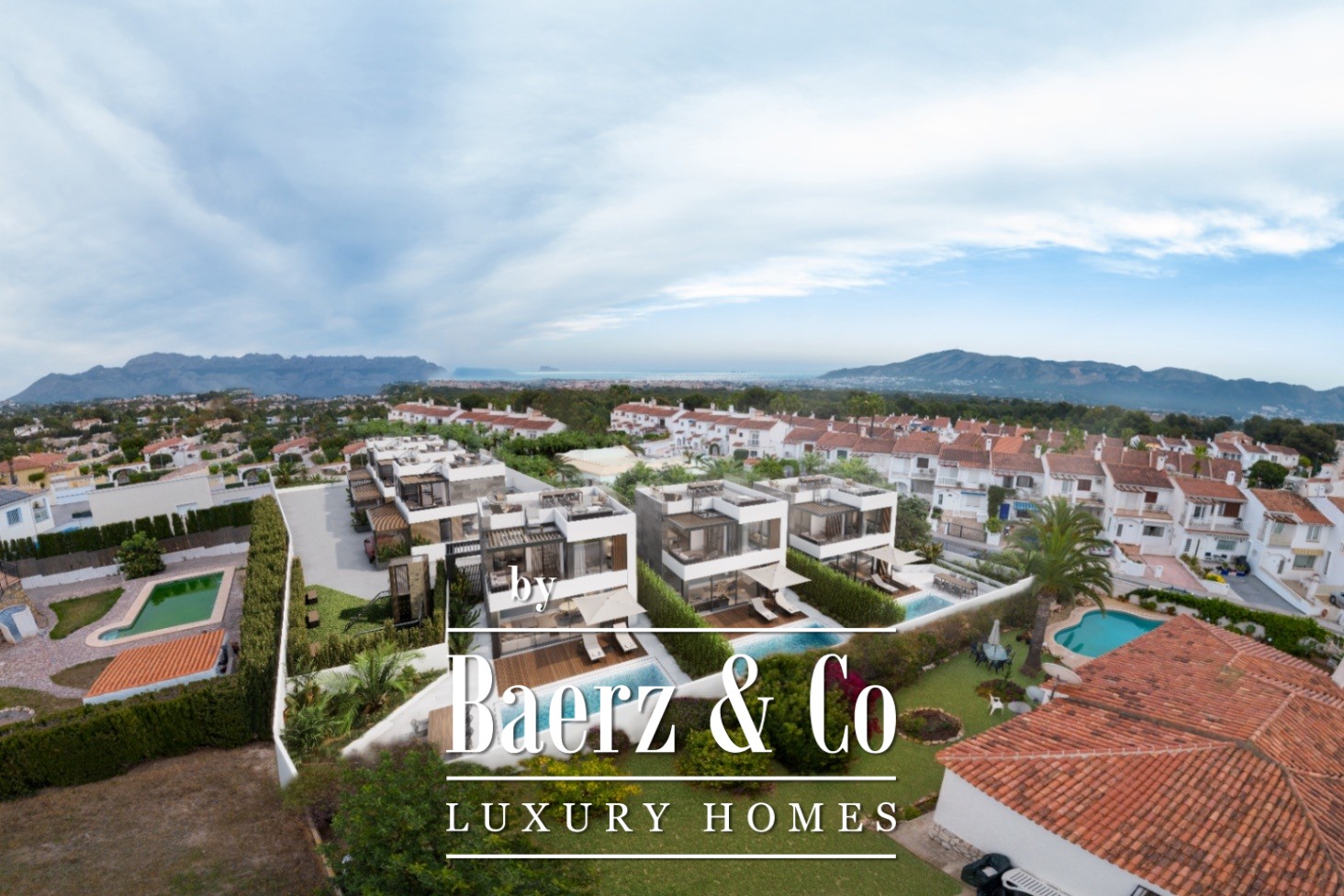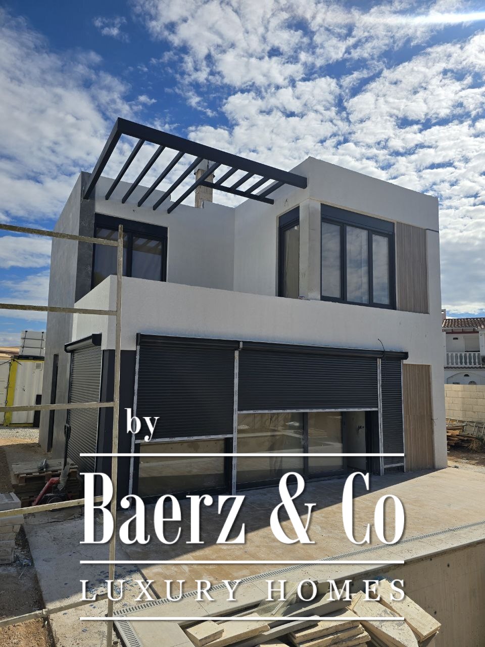 Im Obergeschoss öffnen sich zwei weitere Schlafzimmer zu einer Terrasse und einer Dachfläche mit ungehindertem Blick auf das Meer, Benidorm und Altea. Der private Pool, die Sicherheitstür, die Garage und die Doppelverglasung runden das Anwesen ab und verbinden praktische Aspekte mit diskretem Luxus. Die Fertigstellung der Villa La Nucía ist für November 2025 geplant und bietet damit eine seltene Gelegenheit für anspruchsvolle Käufer, die nach einer neuen Luxusvilla in La Nucía mit mediterranem Flair und Nähe zu allen wichtigen Annehmlichkeiten suchen.