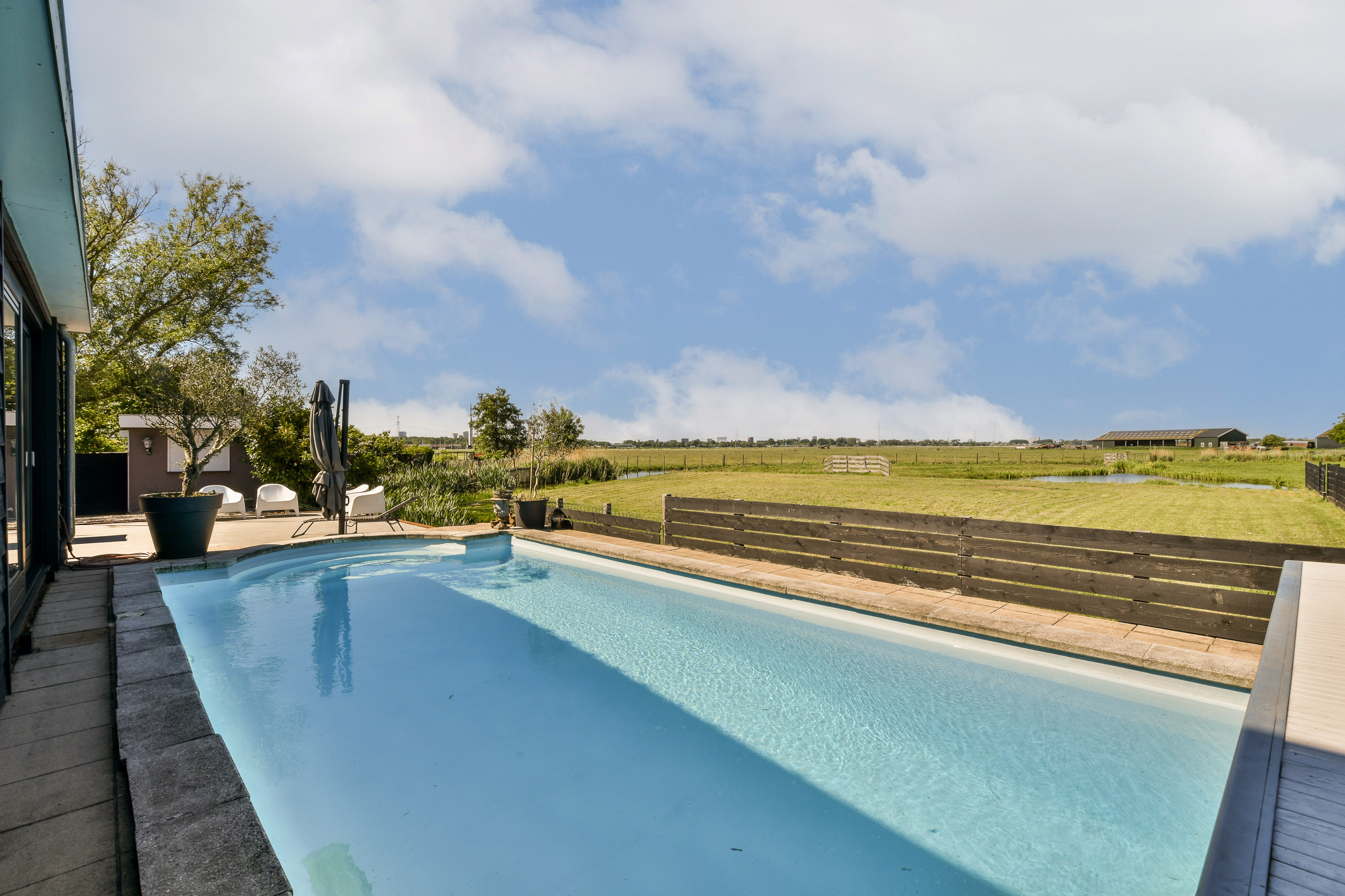Nestled amidst the meadows of the Landsmeerderveld and the North Holland Canal, this beautifully finished detached home offers unparalleled charm. The sweeping views of the meadows never cease to amaze. Whether relaxing by your poolside or enjoying a fine glass of wine in the open-plan kitchen, breathtaking sunsets become a part of your daily life. Peace and privacy abound here.