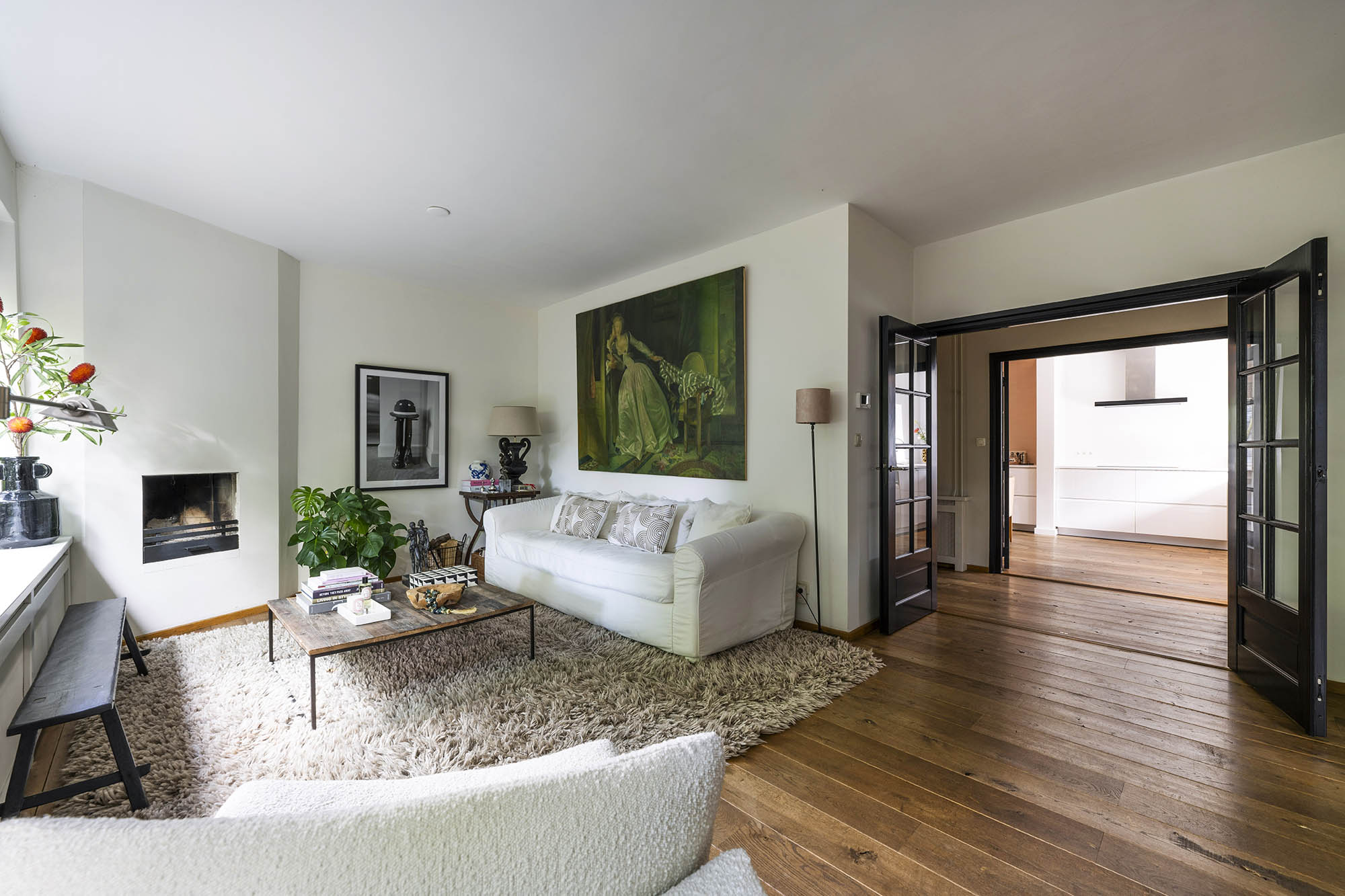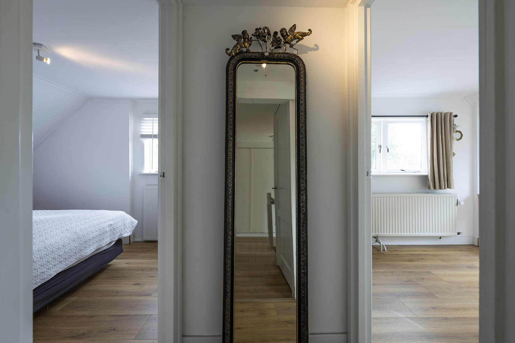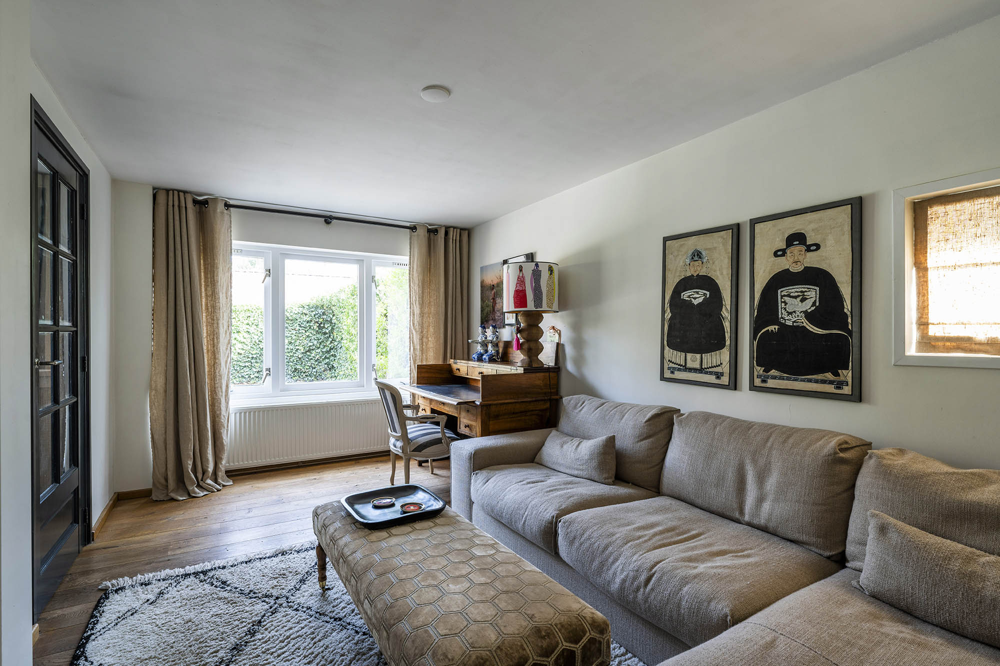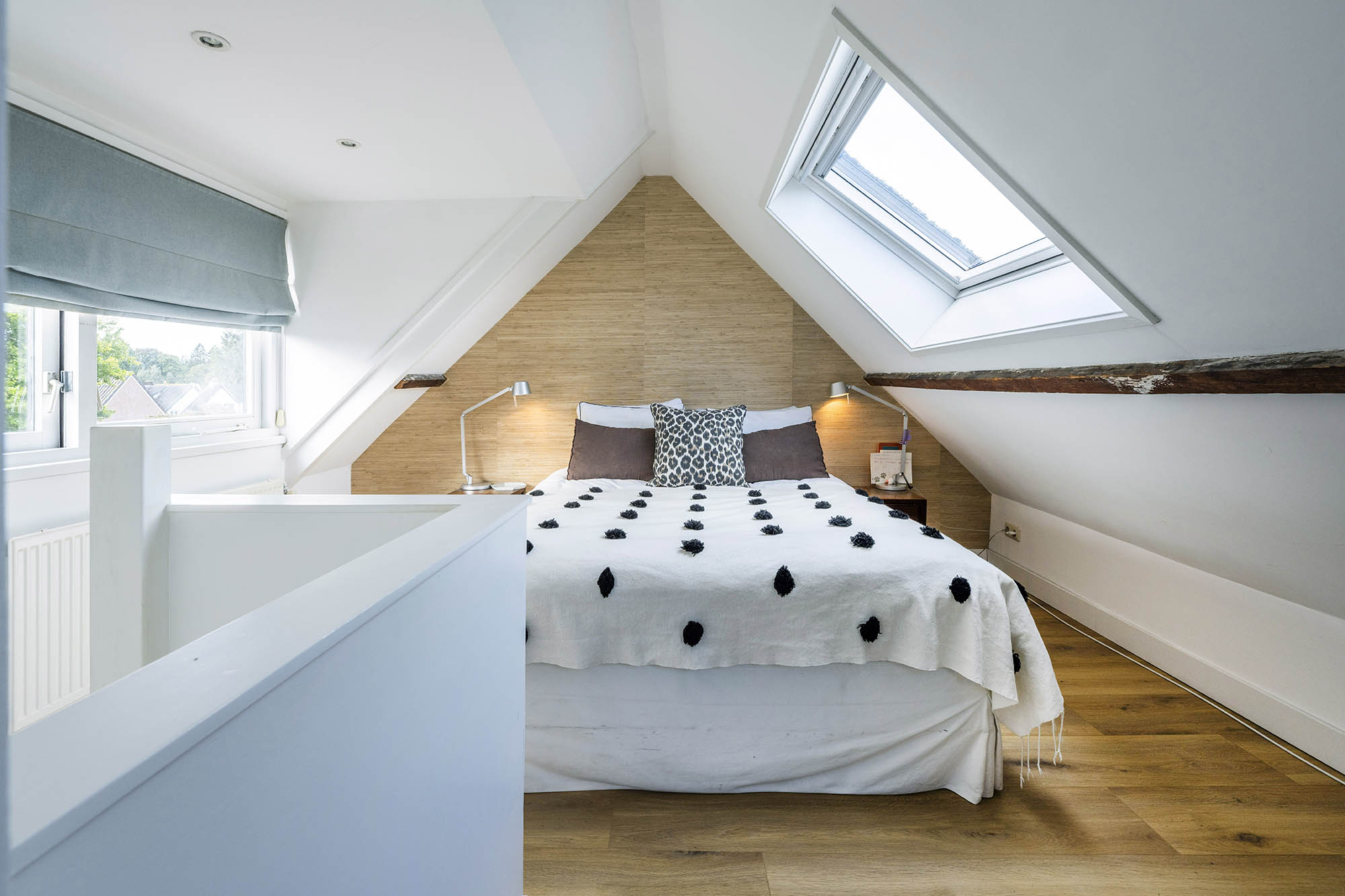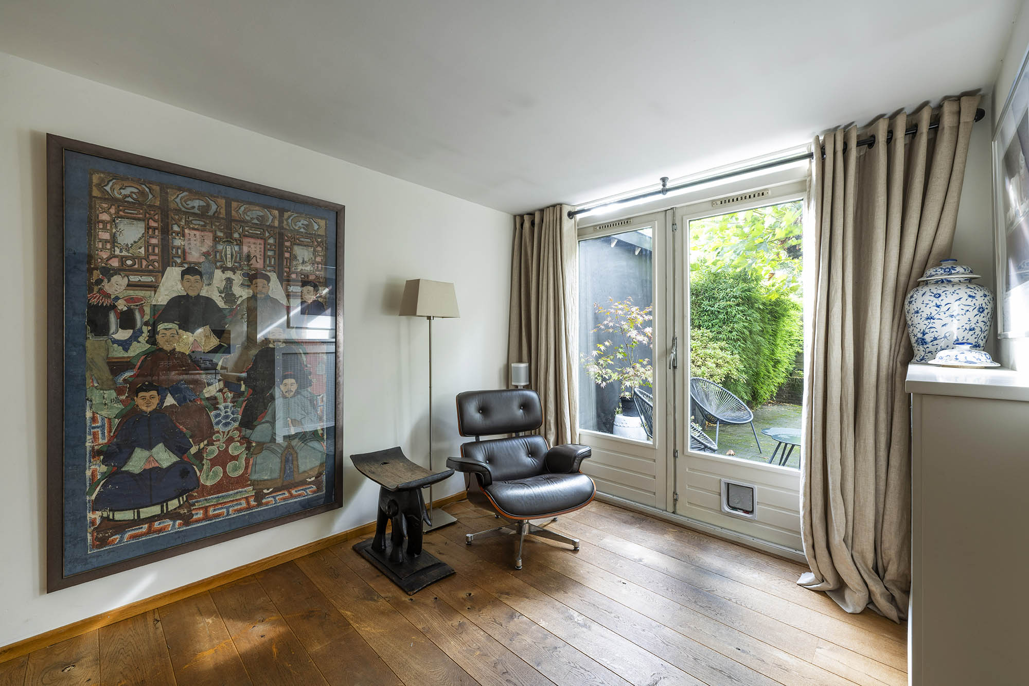 Das Familienhaus in Laren liegt ruhig hinter der Fassade eines reetgedeckten Bauernhauses, das nur über einen diskreten Kiesweg erreichbar ist. Diese abgeschiedene Lage bietet eine ausgewogene Kombination aus Privatsphäre und Komfort mit großzügigen Parkmöglichkeiten auf dem Grundstück sowie Zugang zum Ortszentrum. Schon beim Betreten des Hauses verspürt man ein Raumgefühl, das an diesem Standort selten zu finden ist. Das Wohnzimmer erstreckt sich über die gesamte Breite des Hauses und empfängt dank französischer Türen viel Licht, was einen fließenden Übergang in den sonnigen Garten mit Schatten spendenden Platanen schafft. Ein Kamin bildet den Mittelpunkt des Raumes, während eine separate Arbeitsecke Funktionalität und Wohnkomfort ergänzt. Die moderne, hochwertig ausgestattete Wohnküche sowie das separate Fernsehzimmer tragen zu einem entspannten Alltag bei. Im Obergeschoss sind drei Schlafzimmer durchdacht angeordnet, darunter ein Raum, der für die Wäsche genutzt wird. Das elegante Badezimmer ist mit Badewanne, Waschtisch und WC ausgestattet. Eine feste Treppe führt ins oberste Geschoss, wo sich die Master Suite mit maßgefertigtem Schrank und eigenem Bad als privater Rückzugsort präsentiert. Flexibilität ist das Herzstück dieser Immobilie: Der großzügige Grundriss erlaubt Schlafmöglichkeiten im Erdgeschoss und macht das Haus generationenübergreifend nutzbar. Das Haus umfasst 157 m² Wohnfläche auf einem 310 m² großen Grundstück sowie natürliche Belüftung, gedämmte Dächer und Böden, teilweise doppelt verglaste Fenster und Komfort der Energieklasse C. Alle Annehmlichkeiten des Ortes sind schnell erreichbar, während Wald und offene Landschaft nur eine kurze Radtour entfernt liegen. Für alle, die ein vielseitiges und einladendes Zuhause im Herzen von Laren suchen, bietet dieses Familienhaus diskreten Charme und ruhigen Luxus.