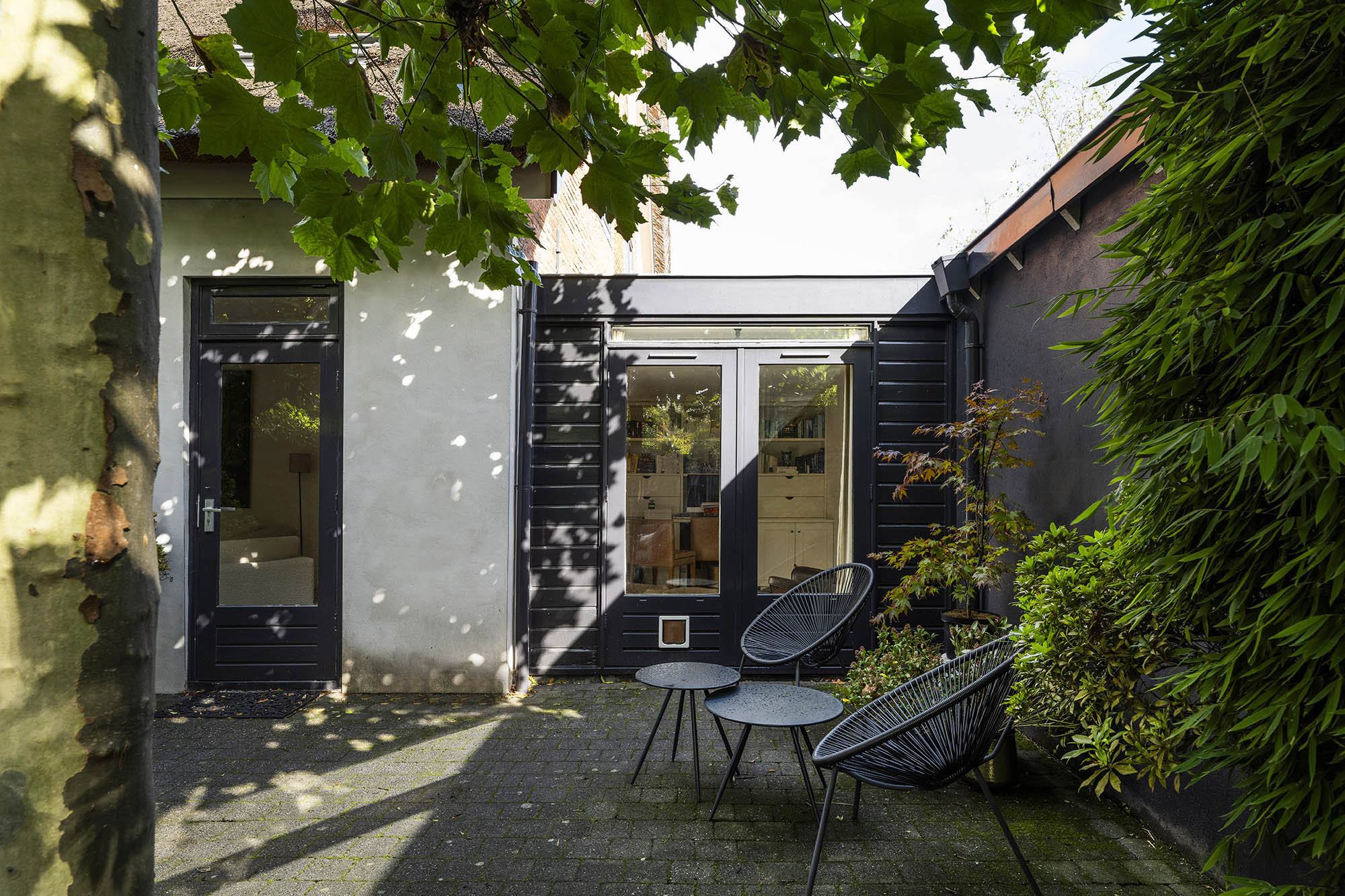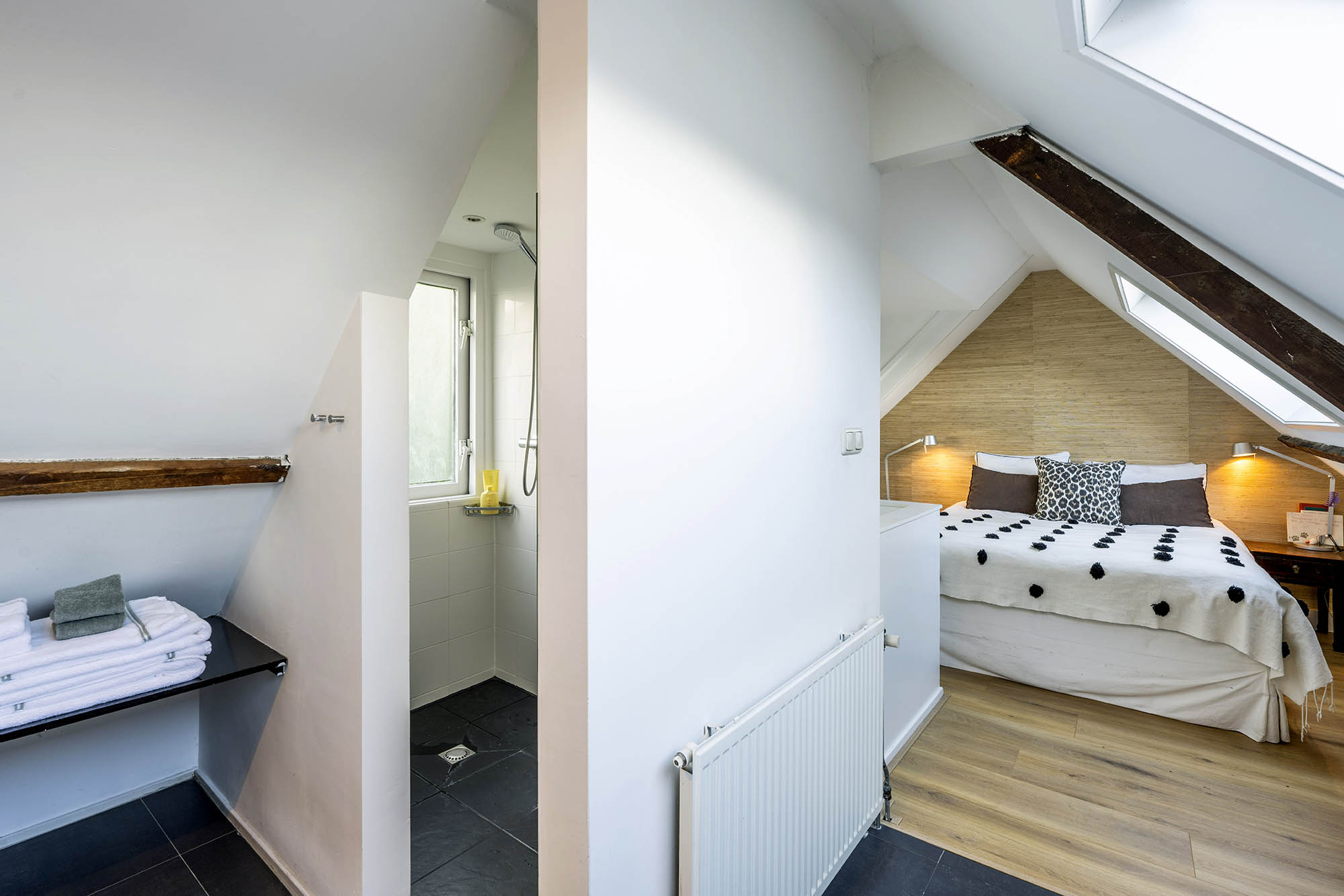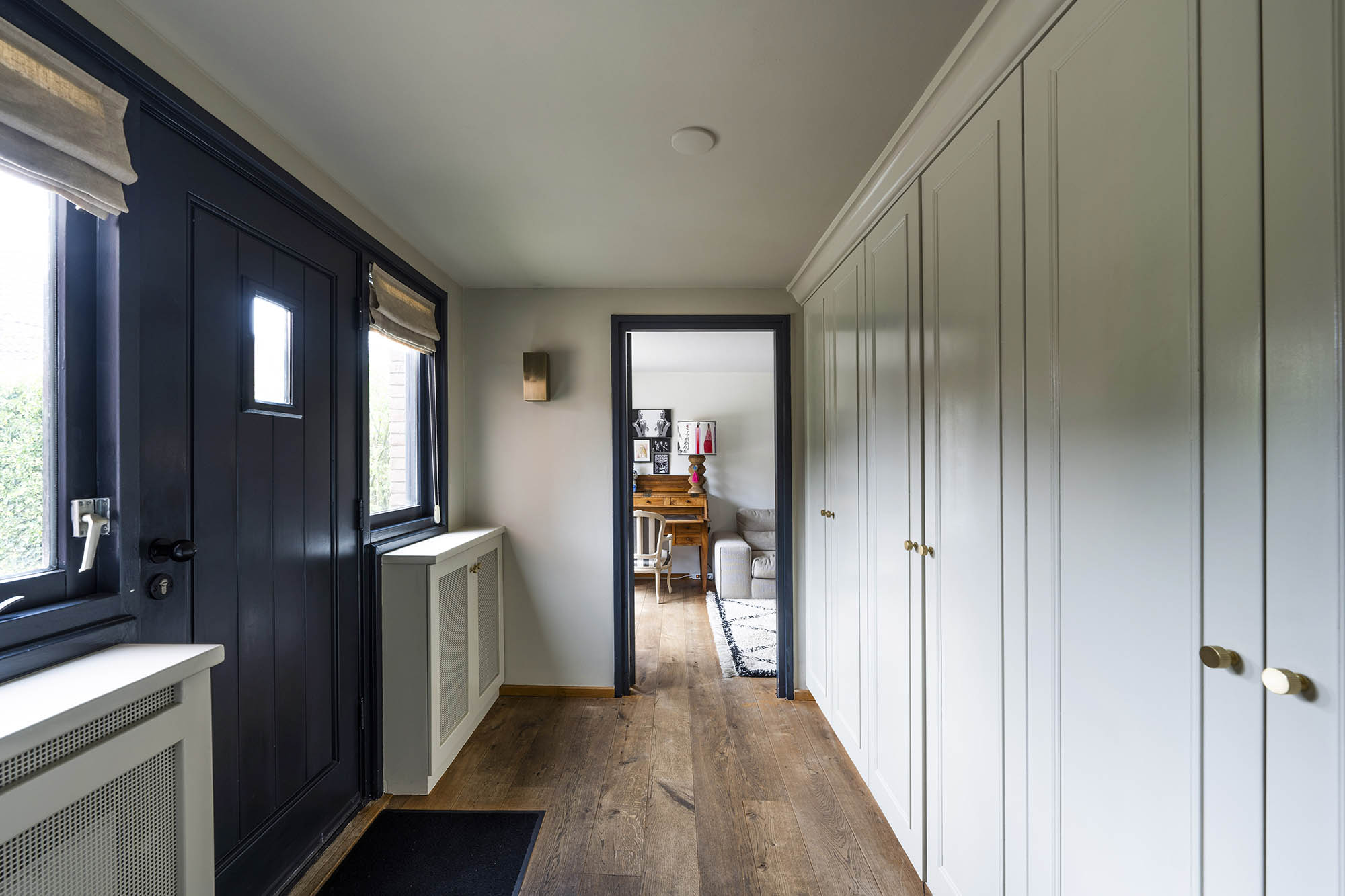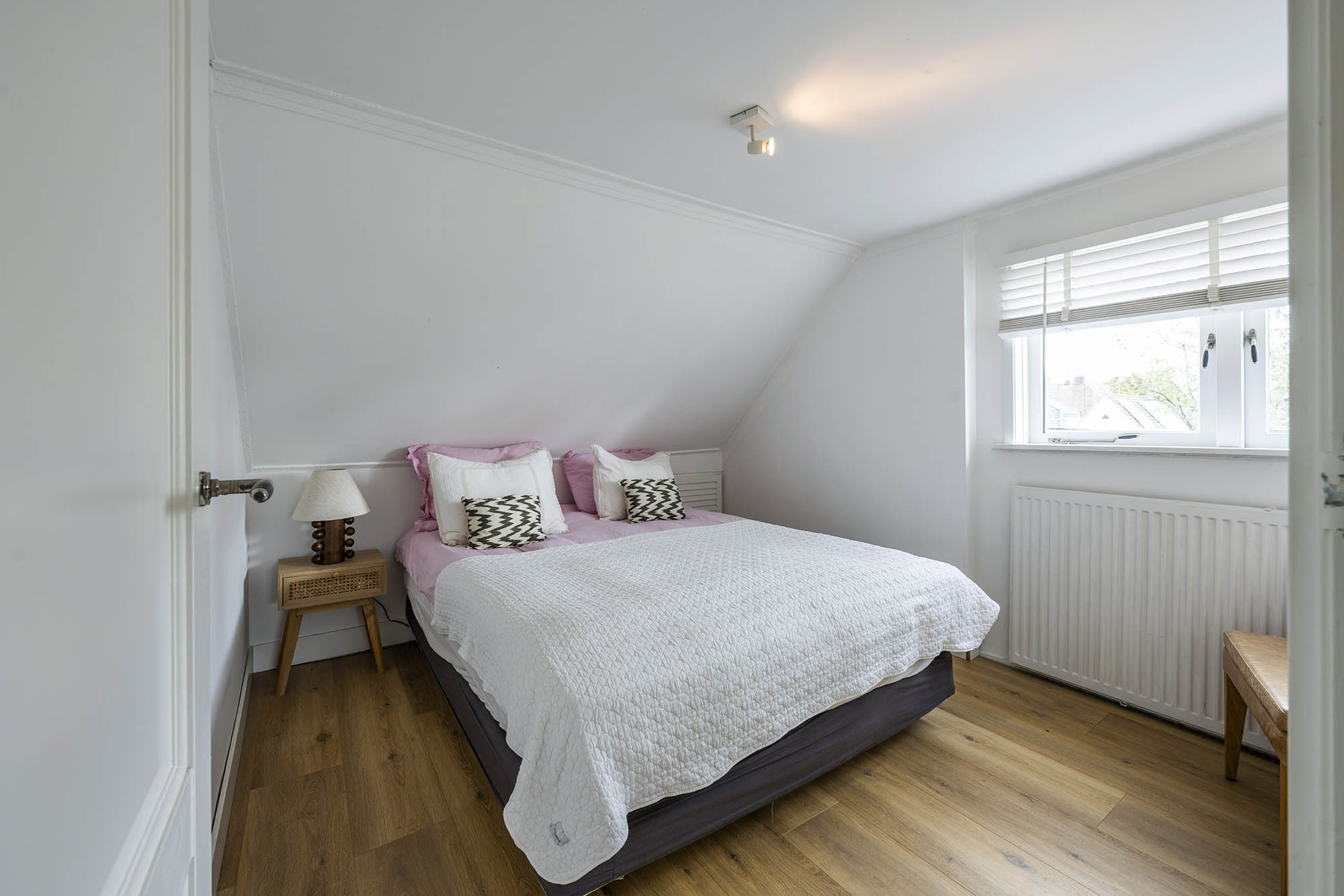 Das Familienhaus in Laren liegt ruhig hinter der Fassade eines reetgedeckten Bauernhauses, das nur über einen diskreten Kiesweg erreichbar ist. Diese abgeschiedene Lage bietet eine ausgewogene Kombination aus Privatsphäre und Komfort mit großzügigen Parkmöglichkeiten auf dem Grundstück sowie Zugang zum Ortszentrum. Schon beim Betreten des Hauses verspürt man ein Raumgefühl, das an diesem Standort selten zu finden ist. Das Wohnzimmer erstreckt sich über die gesamte Breite des Hauses und empfängt dank französischer Türen viel Licht, was einen fließenden Übergang in den sonnigen Garten mit Schatten spendenden Platanen schafft. Ein Kamin bildet den Mittelpunkt des Raumes, während eine separate Arbeitsecke Funktionalität und Wohnkomfort ergänzt. Die moderne, hochwertig ausgestattete Wohnküche sowie das separate Fernsehzimmer tragen zu einem entspannten Alltag bei. Im Obergeschoss sind drei Schlafzimmer durchdacht angeordnet, darunter ein Raum, der für die Wäsche genutzt wird. Das elegante Badezimmer ist mit Badewanne, Waschtisch und WC ausgestattet. Eine feste Treppe führt ins oberste Geschoss, wo sich die Master Suite mit maßgefertigtem Schrank und eigenem Bad als privater Rückzugsort präsentiert. Flexibilität ist das Herzstück dieser Immobilie: Der großzügige Grundriss erlaubt Schlafmöglichkeiten im Erdgeschoss und macht das Haus generationenübergreifend nutzbar. Das Haus umfasst 157 m² Wohnfläche auf einem 310 m² großen Grundstück sowie natürliche Belüftung, gedämmte Dächer und Böden, teilweise doppelt verglaste Fenster und Komfort der Energieklasse C. Alle Annehmlichkeiten des Ortes sind schnell erreichbar, während Wald und offene Landschaft nur eine kurze Radtour entfernt liegen. Für alle, die ein vielseitiges und einladendes Zuhause im Herzen von Laren suchen, bietet dieses Familienhaus diskreten Charme und ruhigen Luxus.