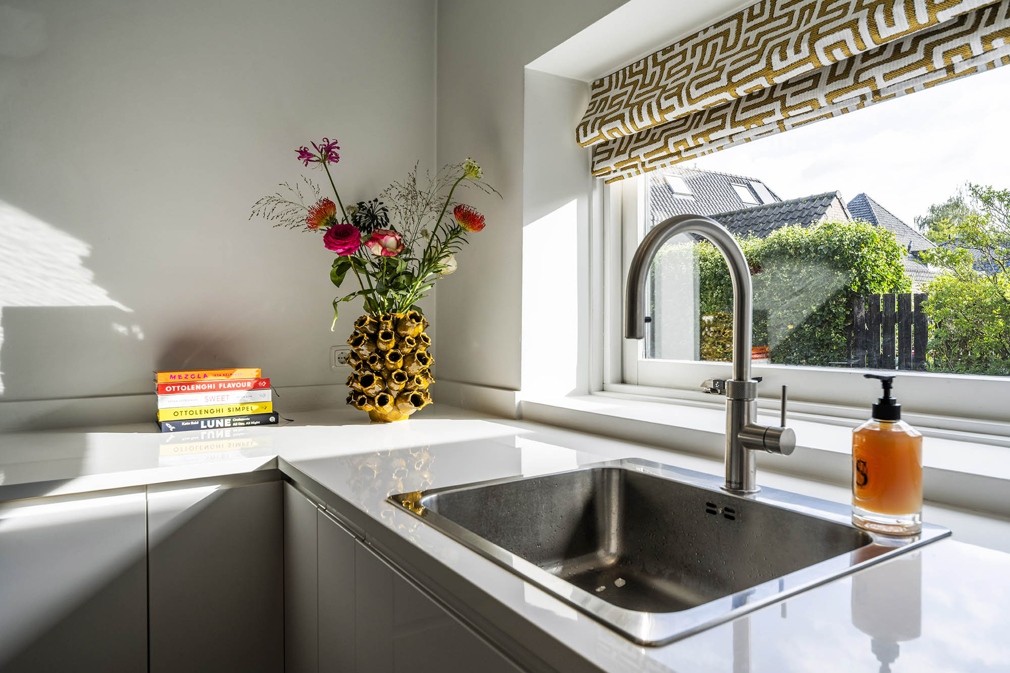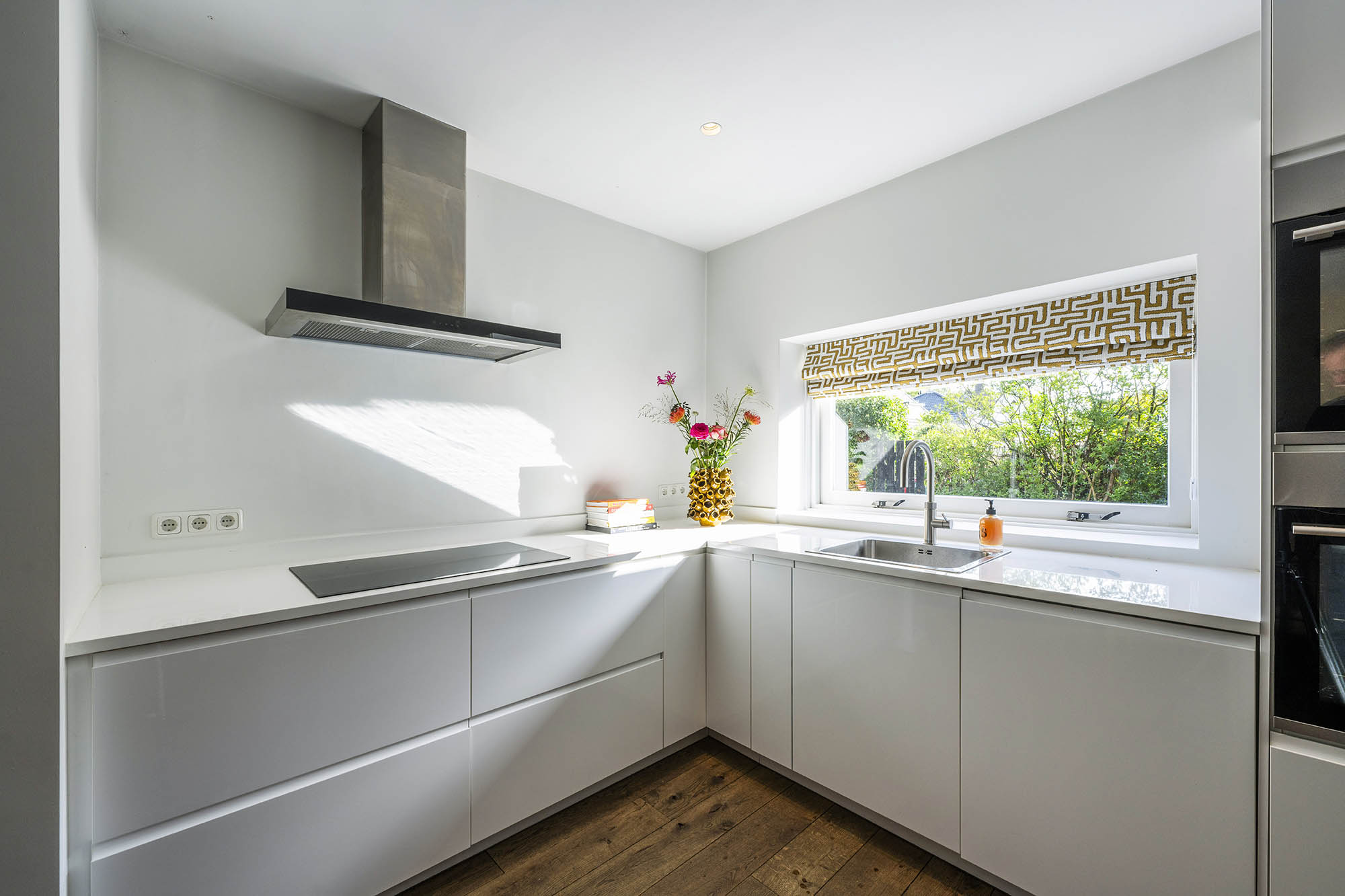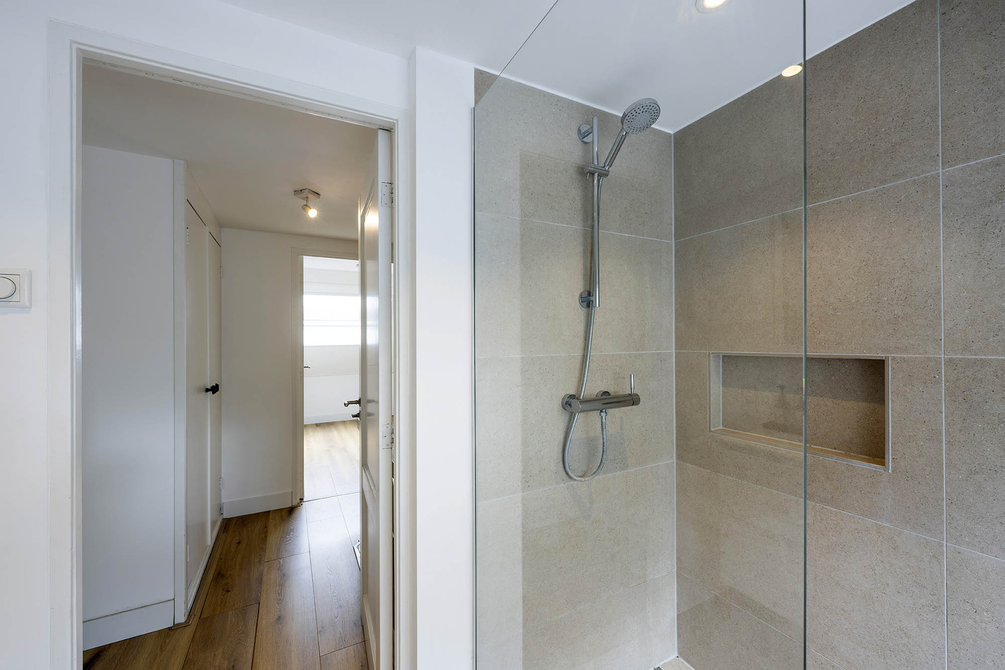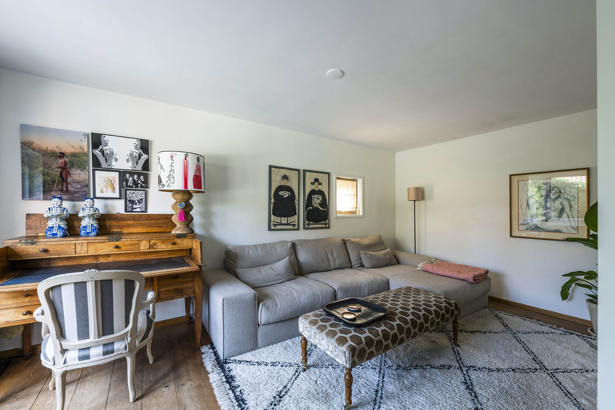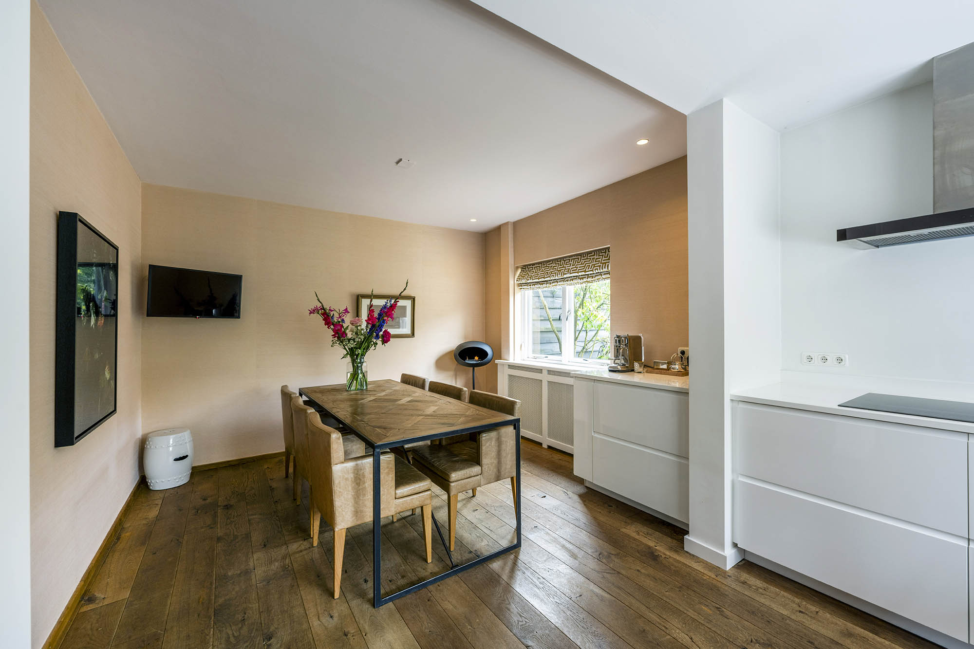 Das Familienhaus in Laren liegt ruhig hinter der Fassade eines reetgedeckten Bauernhauses, das nur über einen diskreten Kiesweg erreichbar ist. Diese abgeschiedene Lage bietet eine ausgewogene Kombination aus Privatsphäre und Komfort mit großzügigen Parkmöglichkeiten auf dem Grundstück sowie Zugang zum Ortszentrum. Schon beim Betreten des Hauses verspürt man ein Raumgefühl, das an diesem Standort selten zu finden ist. Das Wohnzimmer erstreckt sich über die gesamte Breite des Hauses und empfängt dank französischer Türen viel Licht, was einen fließenden Übergang in den sonnigen Garten mit Schatten spendenden Platanen schafft. Ein Kamin bildet den Mittelpunkt des Raumes, während eine separate Arbeitsecke Funktionalität und Wohnkomfort ergänzt. Die moderne, hochwertig ausgestattete Wohnküche sowie das separate Fernsehzimmer tragen zu einem entspannten Alltag bei. Im Obergeschoss sind drei Schlafzimmer durchdacht angeordnet, darunter ein Raum, der für die Wäsche genutzt wird. Das elegante Badezimmer ist mit Badewanne, Waschtisch und WC ausgestattet. Eine feste Treppe führt ins oberste Geschoss, wo sich die Master Suite mit maßgefertigtem Schrank und eigenem Bad als privater Rückzugsort präsentiert. Flexibilität ist das Herzstück dieser Immobilie: Der großzügige Grundriss erlaubt Schlafmöglichkeiten im Erdgeschoss und macht das Haus generationenübergreifend nutzbar. Das Haus umfasst 157 m² Wohnfläche auf einem 310 m² großen Grundstück sowie natürliche Belüftung, gedämmte Dächer und Böden, teilweise doppelt verglaste Fenster und Komfort der Energieklasse C. Alle Annehmlichkeiten des Ortes sind schnell erreichbar, während Wald und offene Landschaft nur eine kurze Radtour entfernt liegen. Für alle, die ein vielseitiges und einladendes Zuhause im Herzen von Laren suchen, bietet dieses Familienhaus diskreten Charme und ruhigen Luxus.