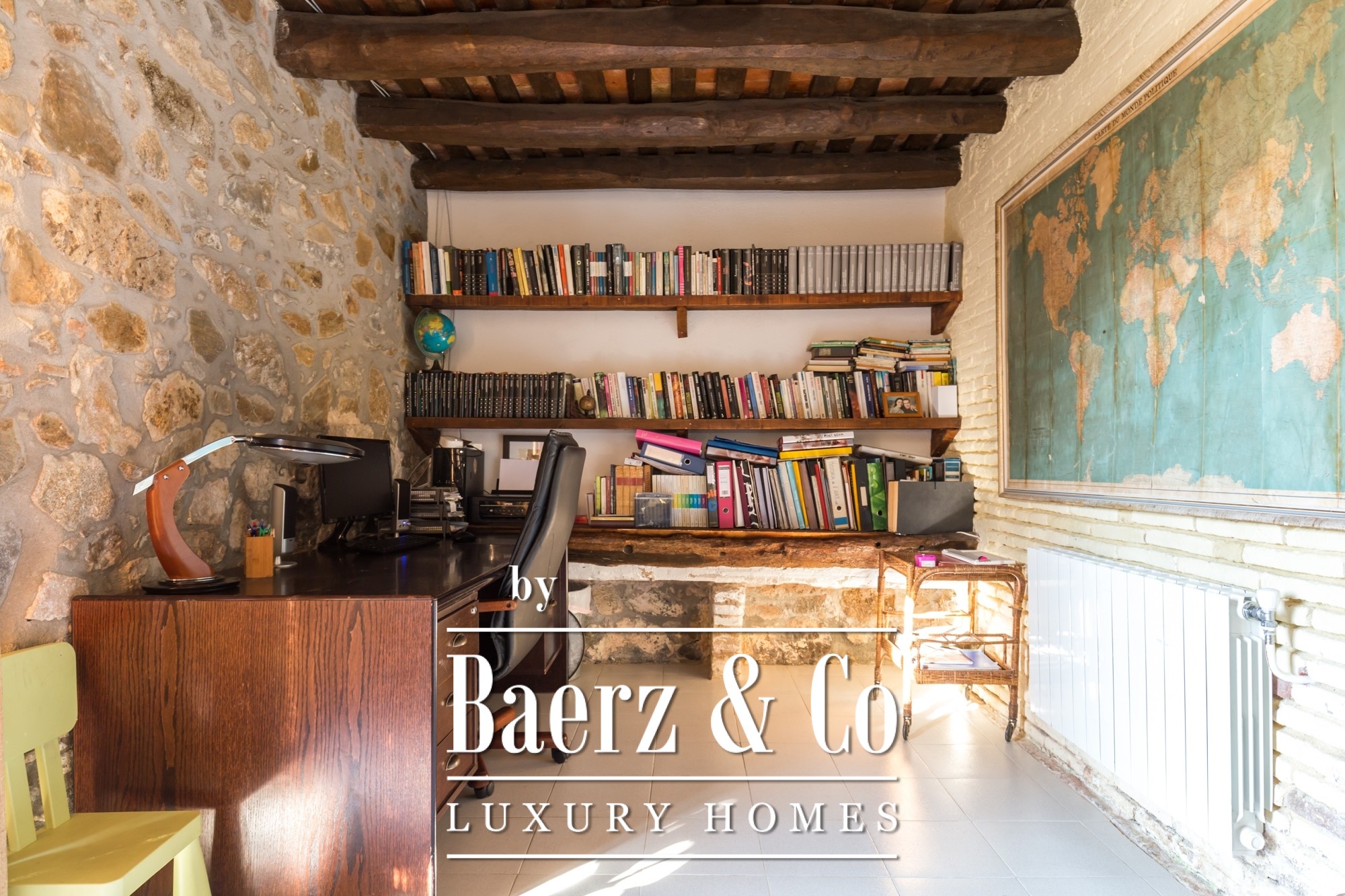 Das Haupthaus bietet sieben Schlafzimmer und vier Badezimmer. Die Suiten im Obergeschoss verfügen über private Terrassen und bieten außergewöhnliche Ausblicke. Hohe Decken, lichtdurchflutete Räume und originale architektonische Details verleihen dem Haus historischen Charme. Zwei Ess- und Wohnzimmer, eine großzügige Wohnküche sowie ein Arbeitszimmer mit Blick in den privaten Garten bieten Raum für Lebensqualität. Großzügige Stauflächen und Nebengebäude sorgen für funktionale Vielseitigkeit.