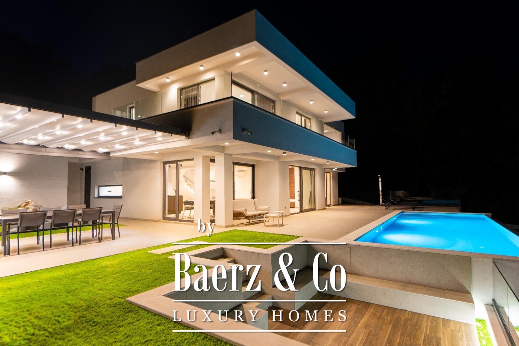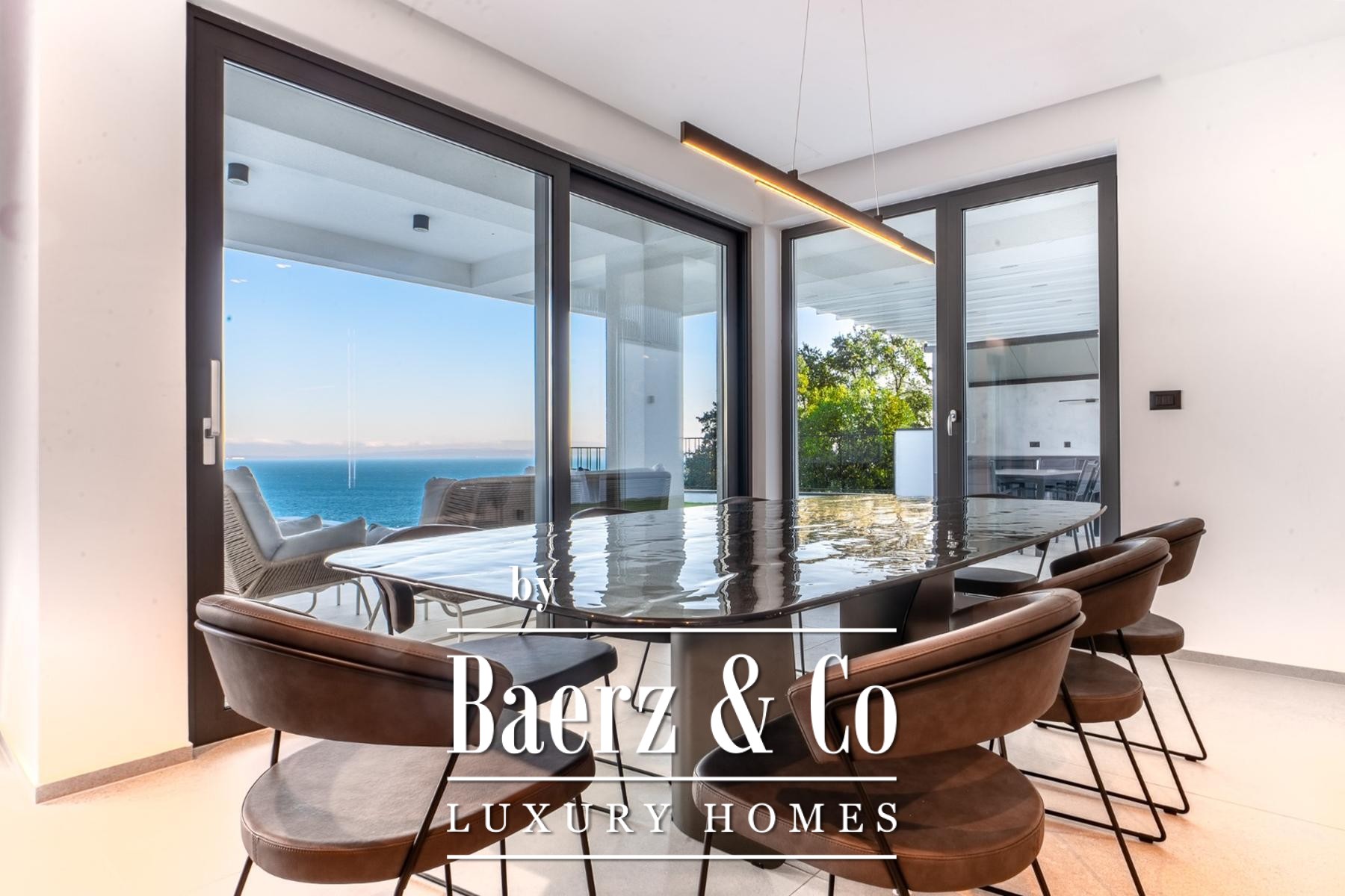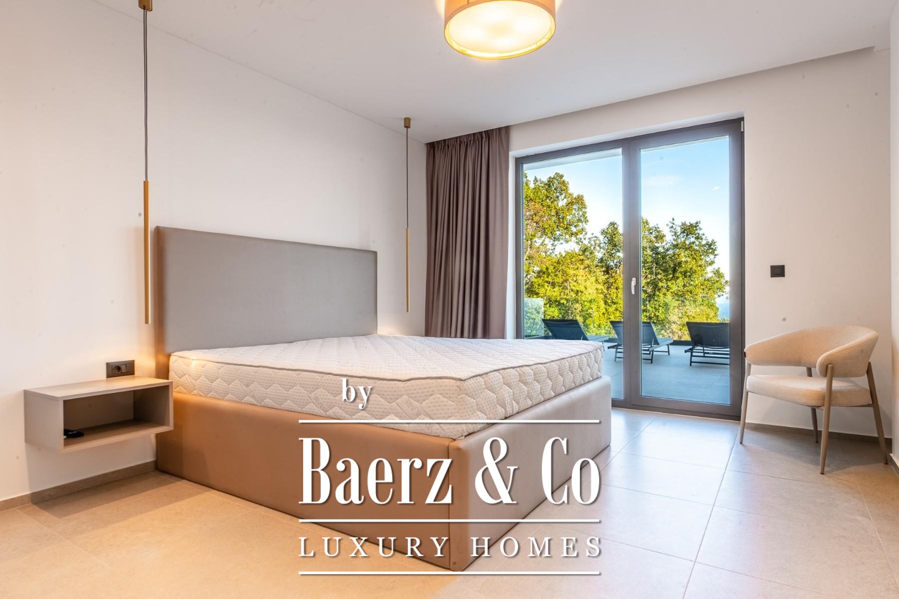 Die Modern Villa Lovran setzt einen erlesenen Standard für zeitgenössisches Wohnen und bietet 250 m² lichtdurchflutete Innenräume am ruhigen Hang oberhalb der Kvarner Bucht. Das Anwesen überzeugt durch eine durchdachte architektonische Komposition auf zwei Etagen, die jeweils auf Komfort und Privatsphäre ausgerichtet sind. Vier großzügige Schlafzimmer und vier Bäder schaffen viel Platz für Familie und Gäste, während der großzügige Wohn- und Essbereich nahtlos zur Panoramaterrasse übergeht. Bodentiefe Fenster rahmen den ungestörten Blick auf die Bucht und verleihen dem Haus eine Atmosphäre von Offenheit und Ruhe.