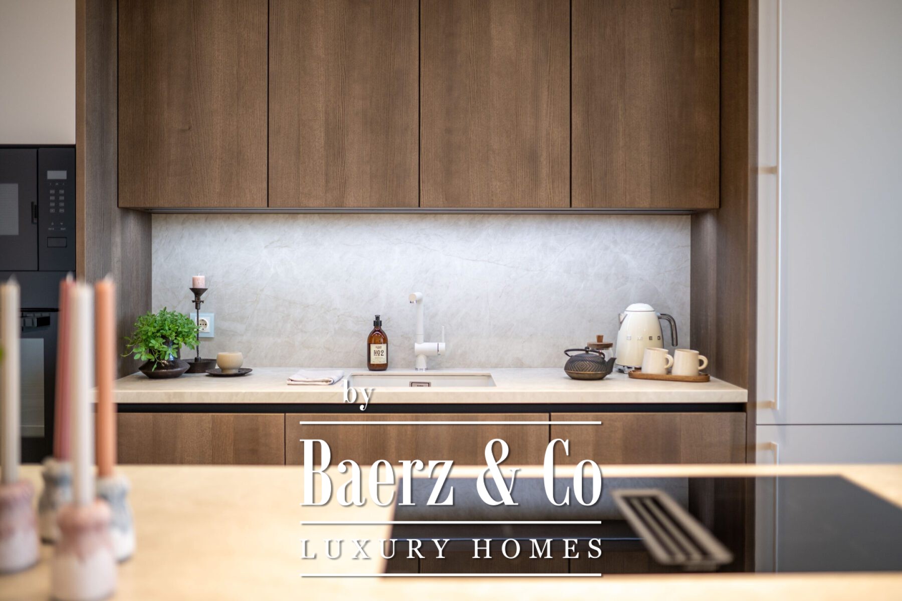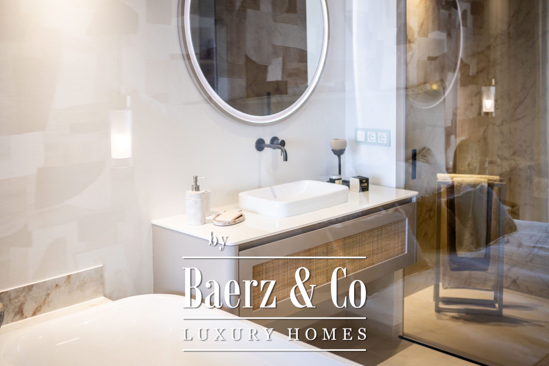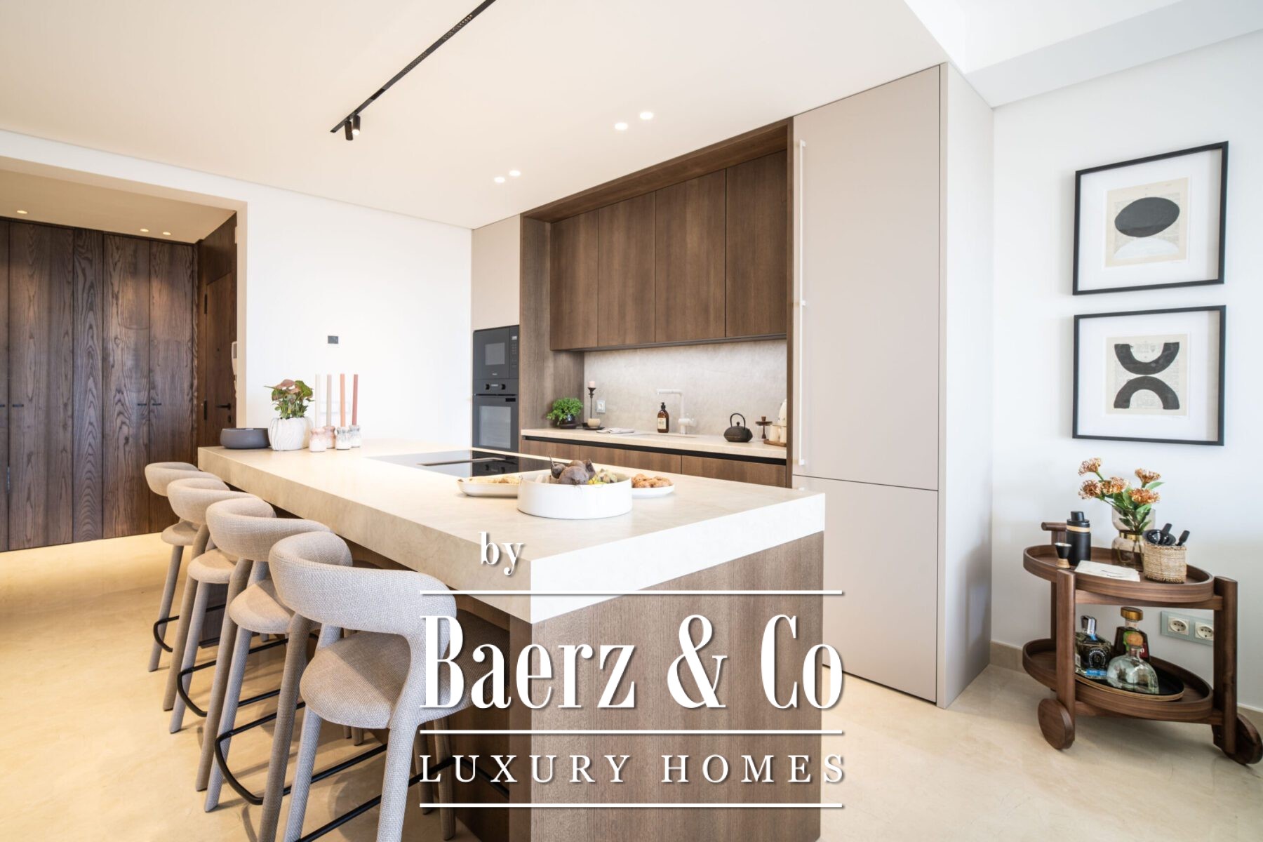 Im Inneren entfalten sich 124 m² Wohnfläche mit Klarheit und Sorgfalt. Ein nahtlos offener Grundriss führt in eine moderne Küche, in der hochwertige Geräte und großzügige Arbeitsflächen sowohl den täglichen Ablauf als auch feierliche Anlässe begleiten. Drei Schlafzimmer bieten individuelle Rückzugszonen; die Mastersuite ist als privates Refugium mit beeindruckender Aussicht und einem außergewöhnlichen Bad gestaltet. Zwei elegante Bäder verbinden Funktionalität und Gelassenheit auf harmonische Weise.