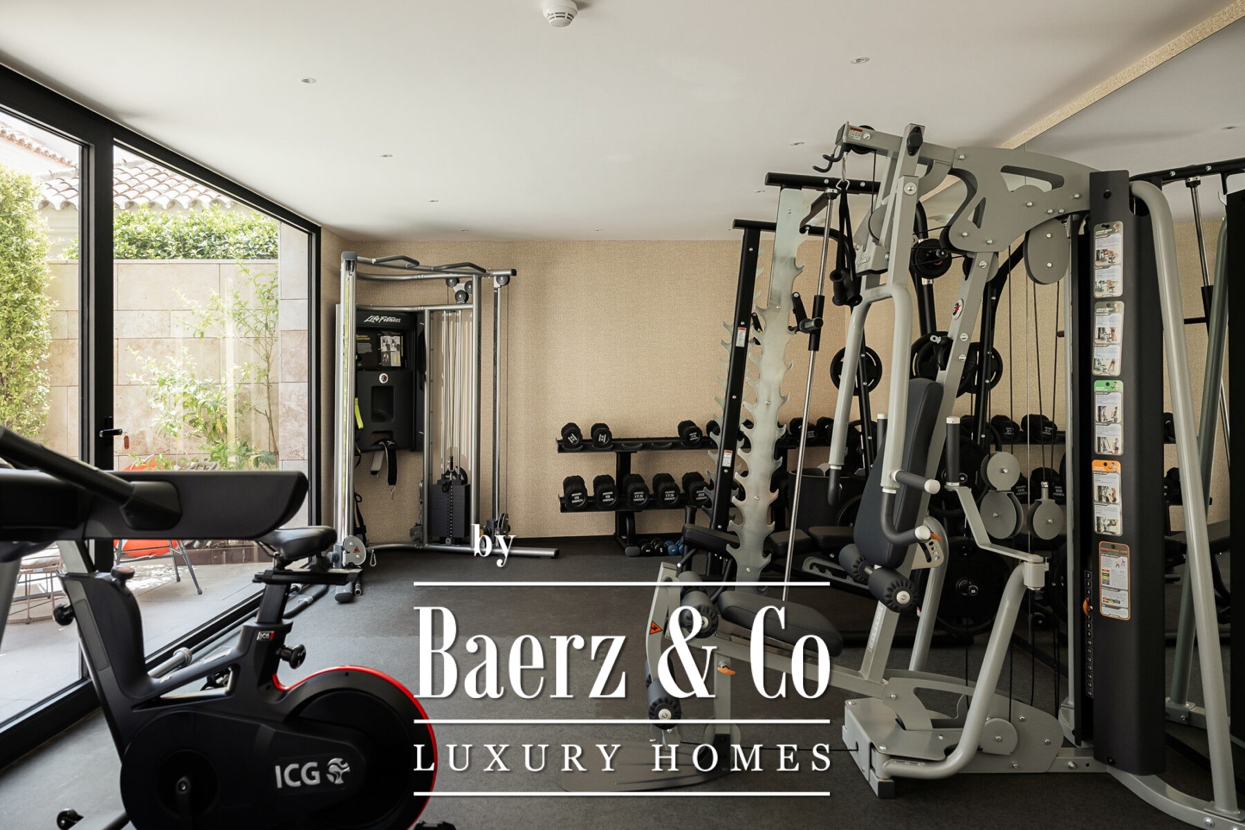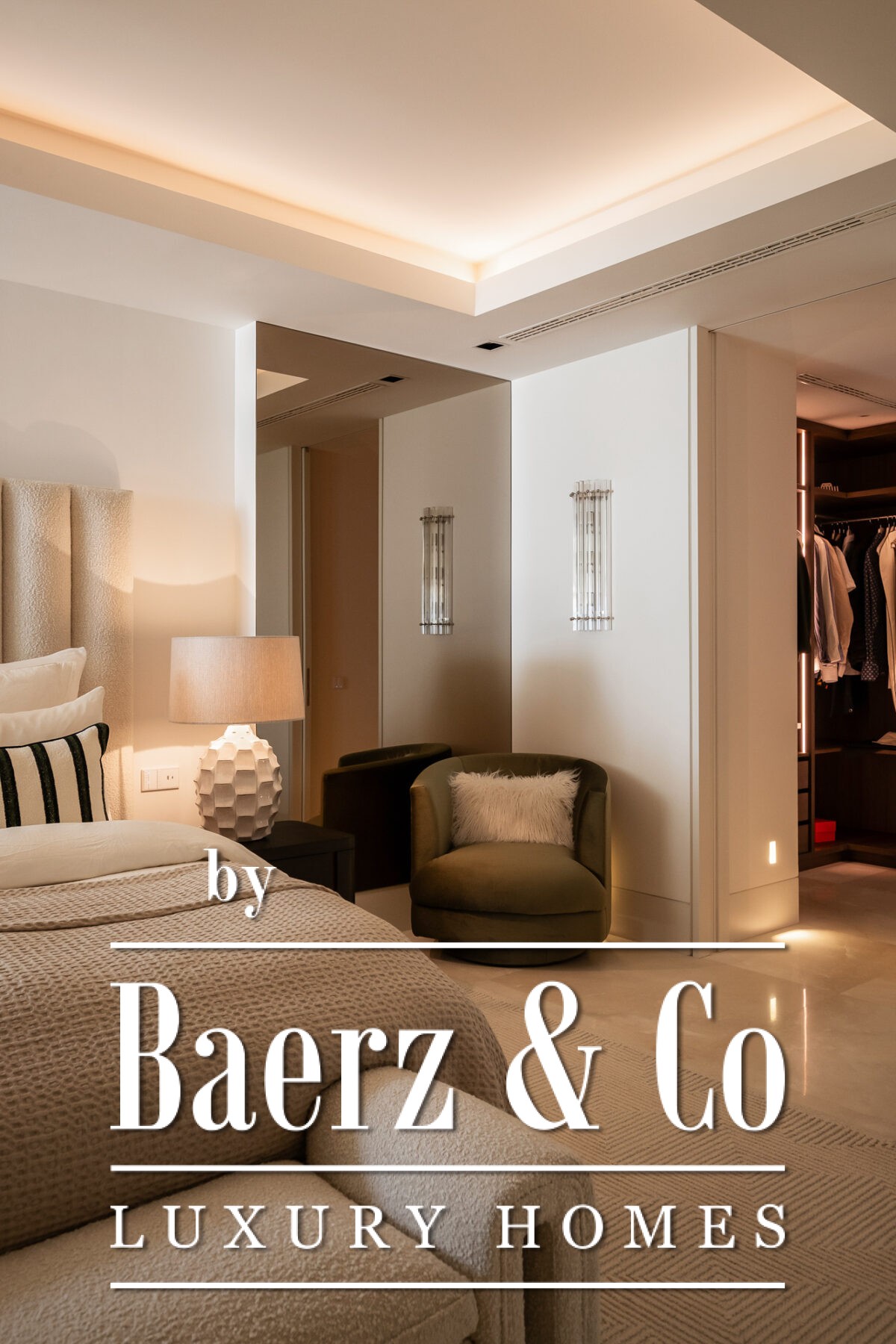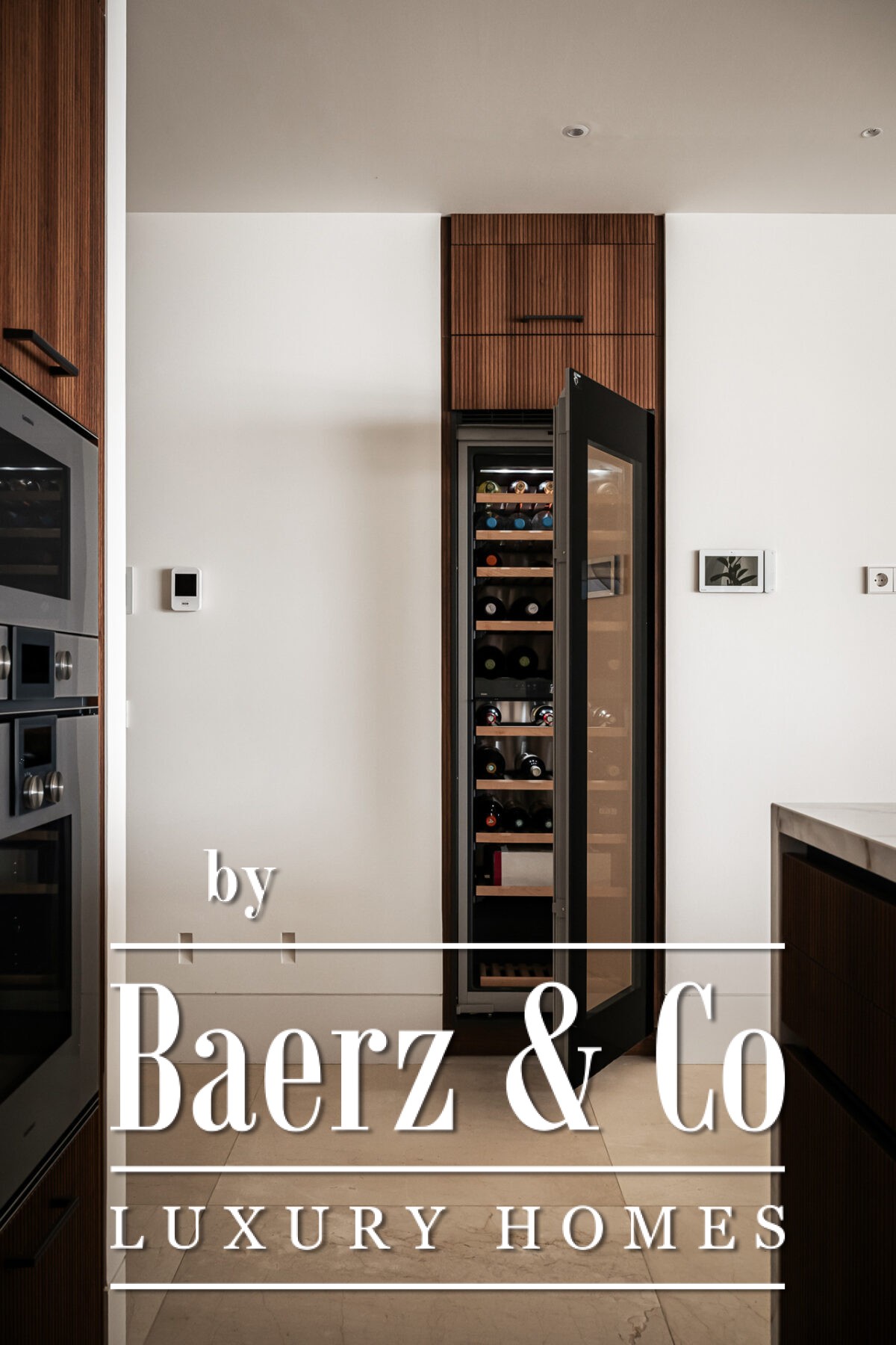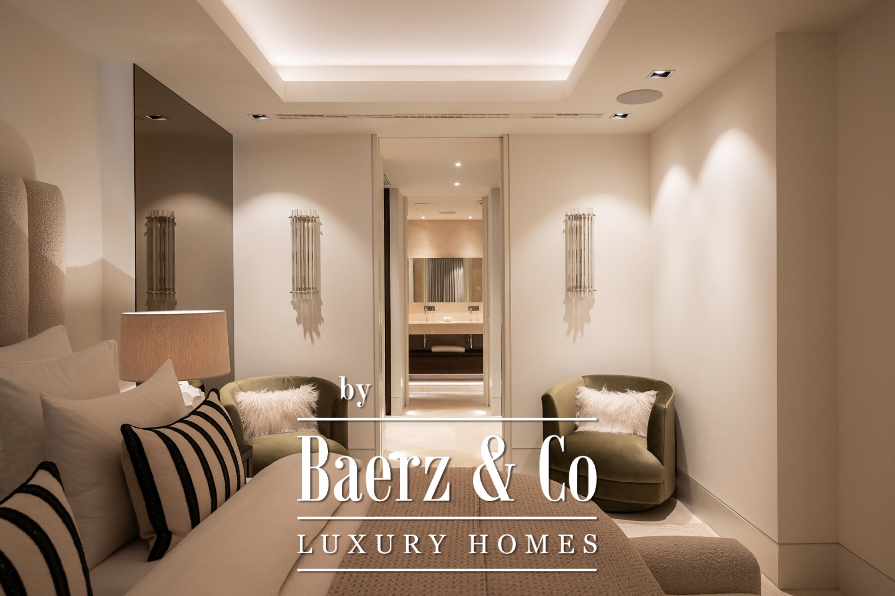 Das Raumkonzept ist effizient gestaltet: Von der zentralen Diele teilen sich die Bereiche klar in soziale und private Zonen auf. Der offene Wohnbereich geht nahtlos in eine Küche mit Gaggenau- und Miele-Geräten, einem eindrucksvollen, raumhohen Weindisplay sowie vollautomatischer Verglasung über, die den Innenraum mit der Terrasse verbindet. Im privaten Flügel erwartet Sie eine Master-Suite mit Ankleidezimmer und voll ausgestattetem Bad, ergänzt durch zwei weitere Schlafzimmer mit Bad en suite und Blick auf die ruhigen Gärten. Weitere Ausstattungsmerkmale sind Hauswirtschaftsraum, Smart-Home-Systeme, hochwertige Materialien in allen Bereichen sowie zwei Garagenplätze mit registriertem Elektro-Buggy und Abstellraum.