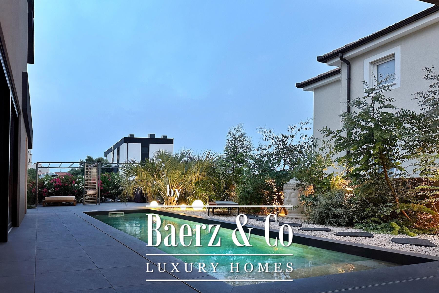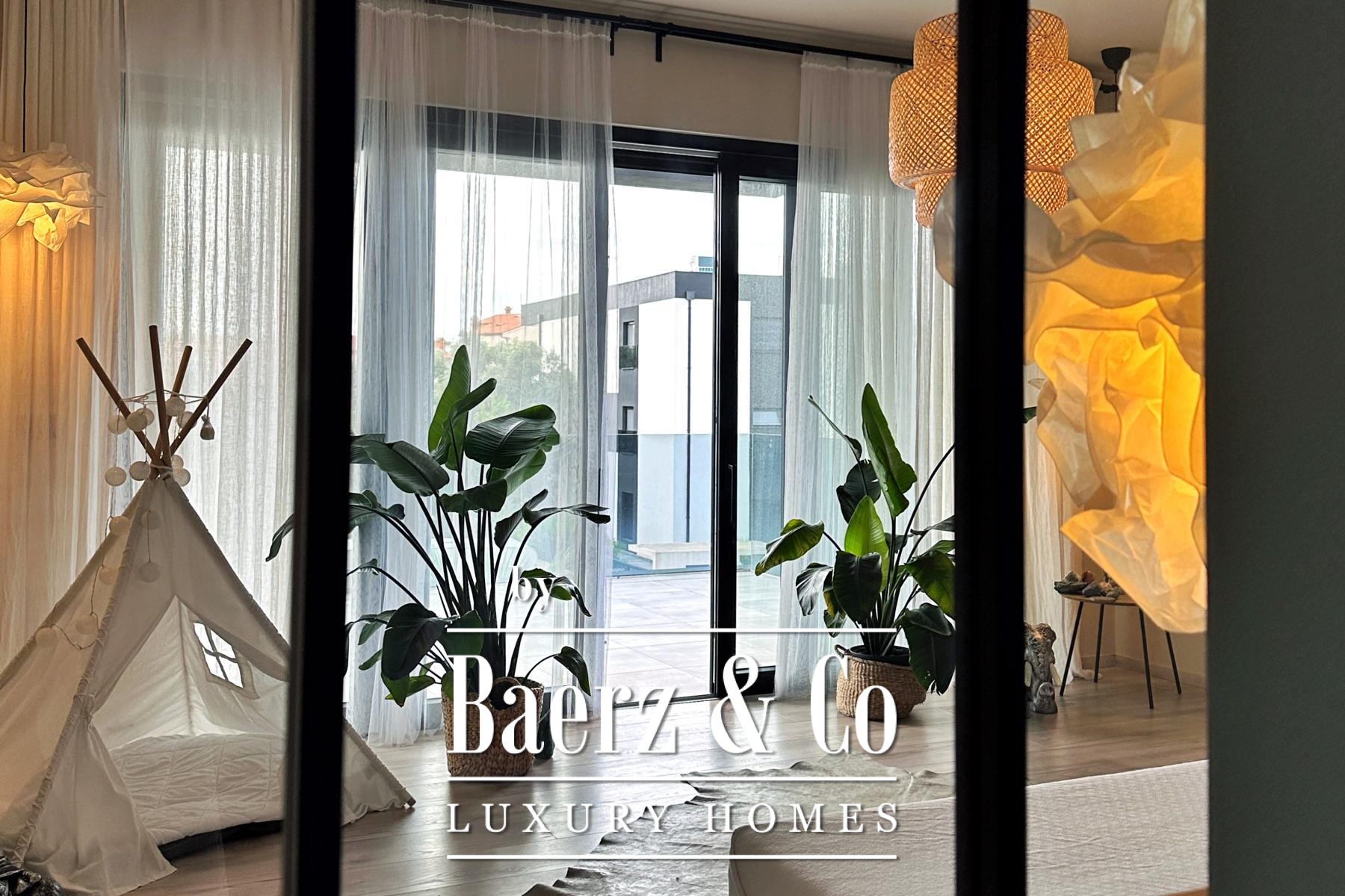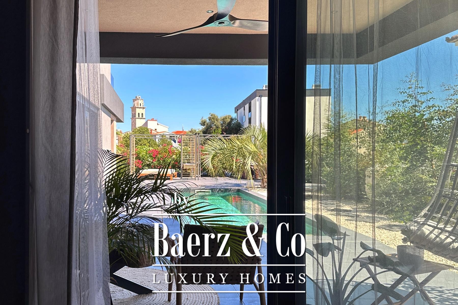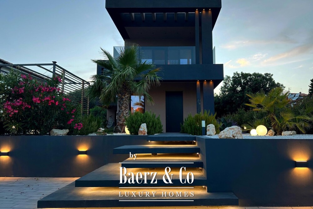 Die Villa Premantura Medulin befindet sich auf einem sorgfältig gestalteten 710 m² großen Grundstück am südlichen Rand der Halbinsel Istrien. Das Anwesen erstreckt sich über 205 m² und vermittelt durch dezente architektonische Linien sowie natürliches Licht in jedem Raum eine ruhige Atmosphäre. Das Erdgeschoss empfängt Sie mit einem großzügigen Wohnzimmer, das durch warme Farbtöne, maßgefertigte Möbel und einen Kamin geprägt ist, der das Ambiente bestimmt. Vom Boden bis zur Decke reichende Glasflächen öffnen den Blick auf Pool und Garten und verbinden Innen- und Außenbereich nahtlos miteinander. Eine komfortable Küche, ein Schlafzimmer, ein Gäste-WC, Hauswirtschaftsräume und der Zugang zum Hinterhof ermöglichen entspanntes Wohnen mit praktischem Anspruch.