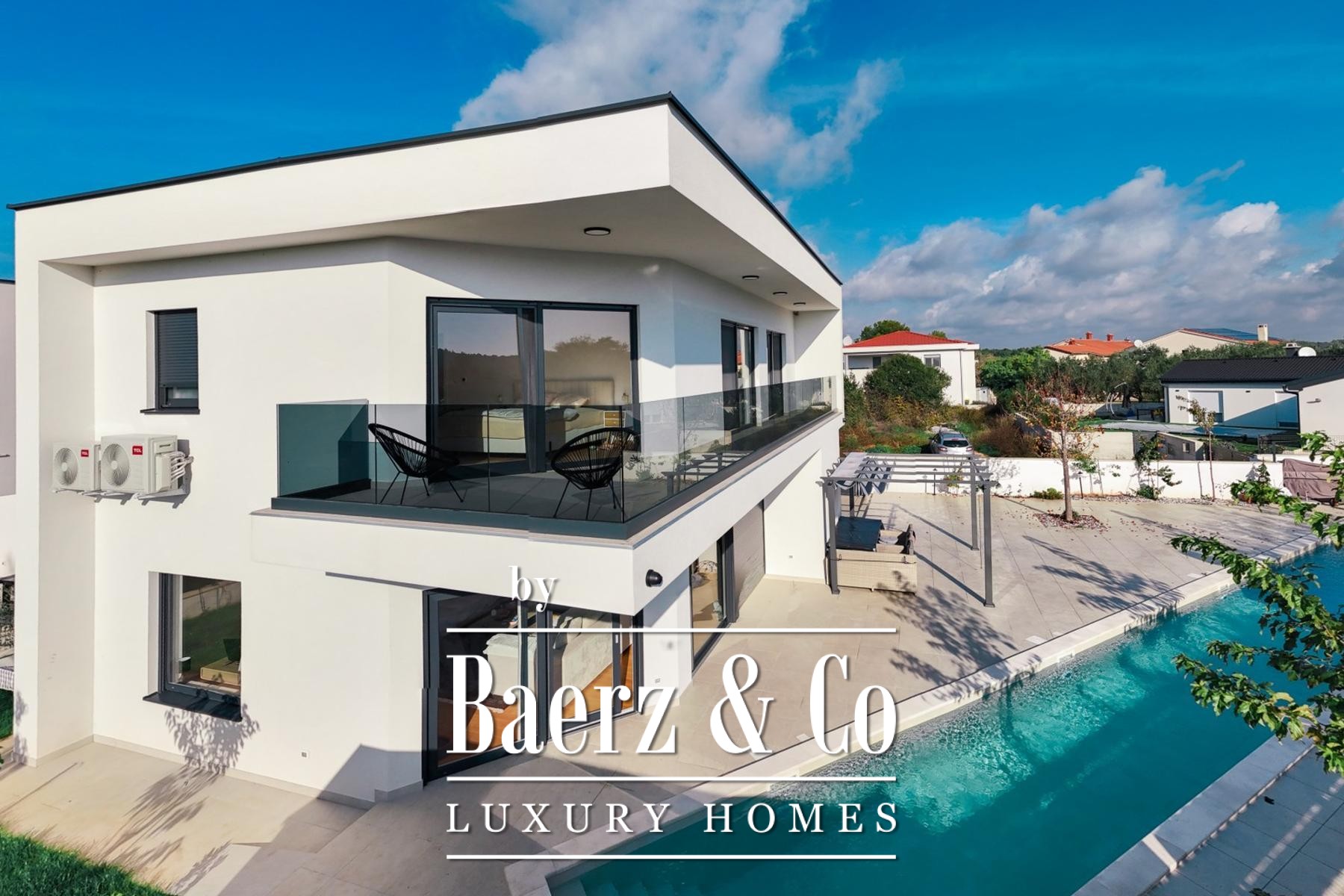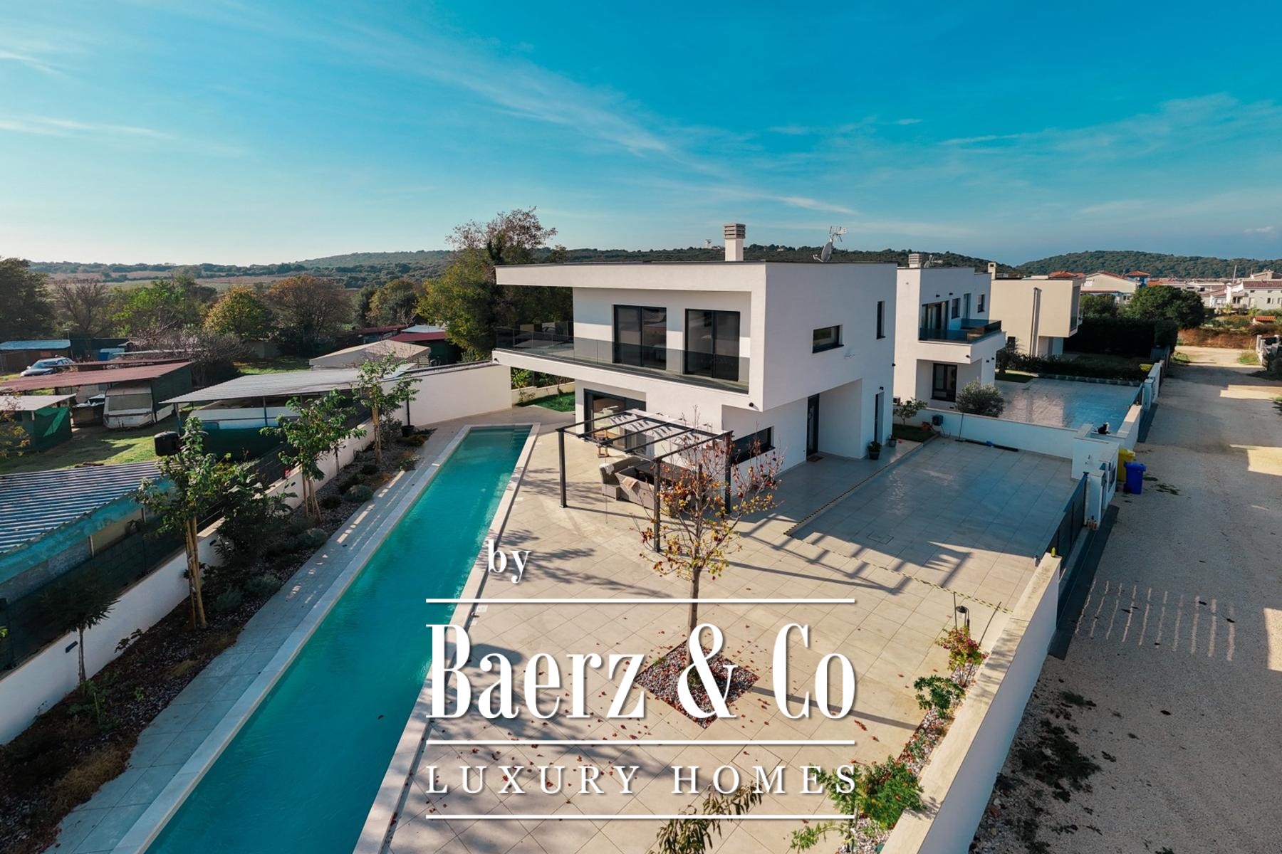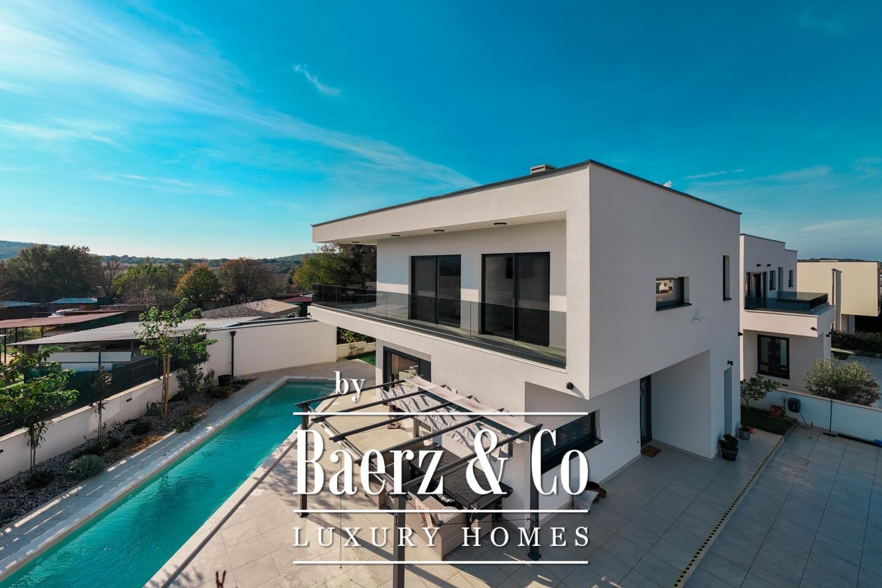 Die moderne Villa Medulin verbindet zeitgenössisches Design mit der mediterranen Ruhe der exklusiven Siedlung Volme. Nur fünf Gehminuten vom kristallklaren Meer entfernt, erstreckt sich dieses Neubauobjekt über 190 m² auf einem sorgfältig angelegten Grundstück von 500 m² und bietet einen inspirierenden Küstenlebensstil in Kroatien.