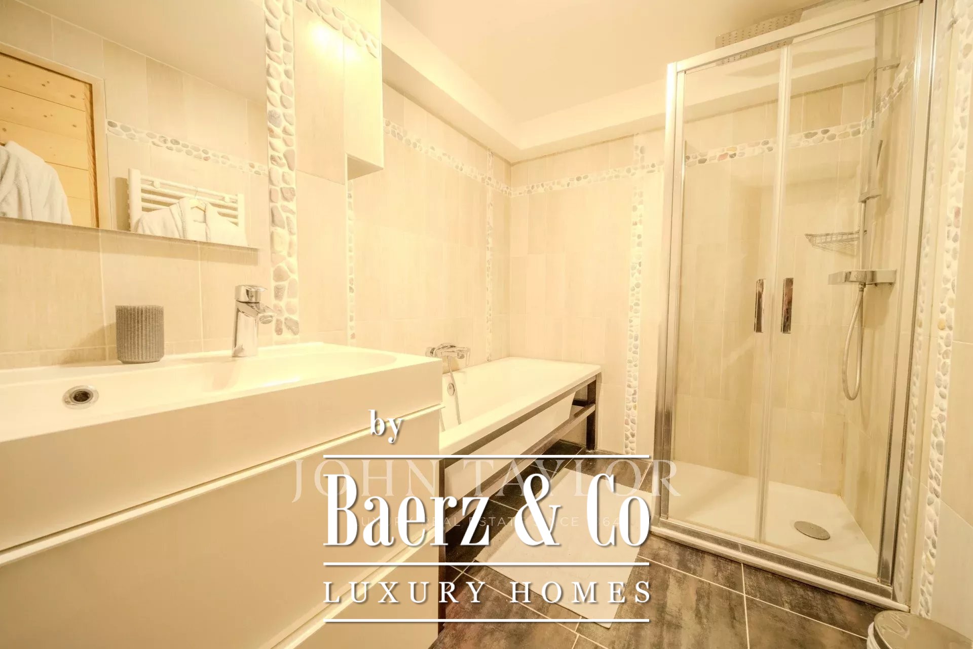 Eine private Garage für einen PKW sowie Außenstellplätze sorgen für einen nahtlosen An- und Abreiseprozess. Die Fußbodenheizung und die durchdachten Details schaffen ein Ambiente, das anspruchsvollen Chalet-Bewohnern einen unvergleichlichen Rückzugsort in Megève bietet, wo ländliche Gelassenheit auf durchdachtes Design trifft.