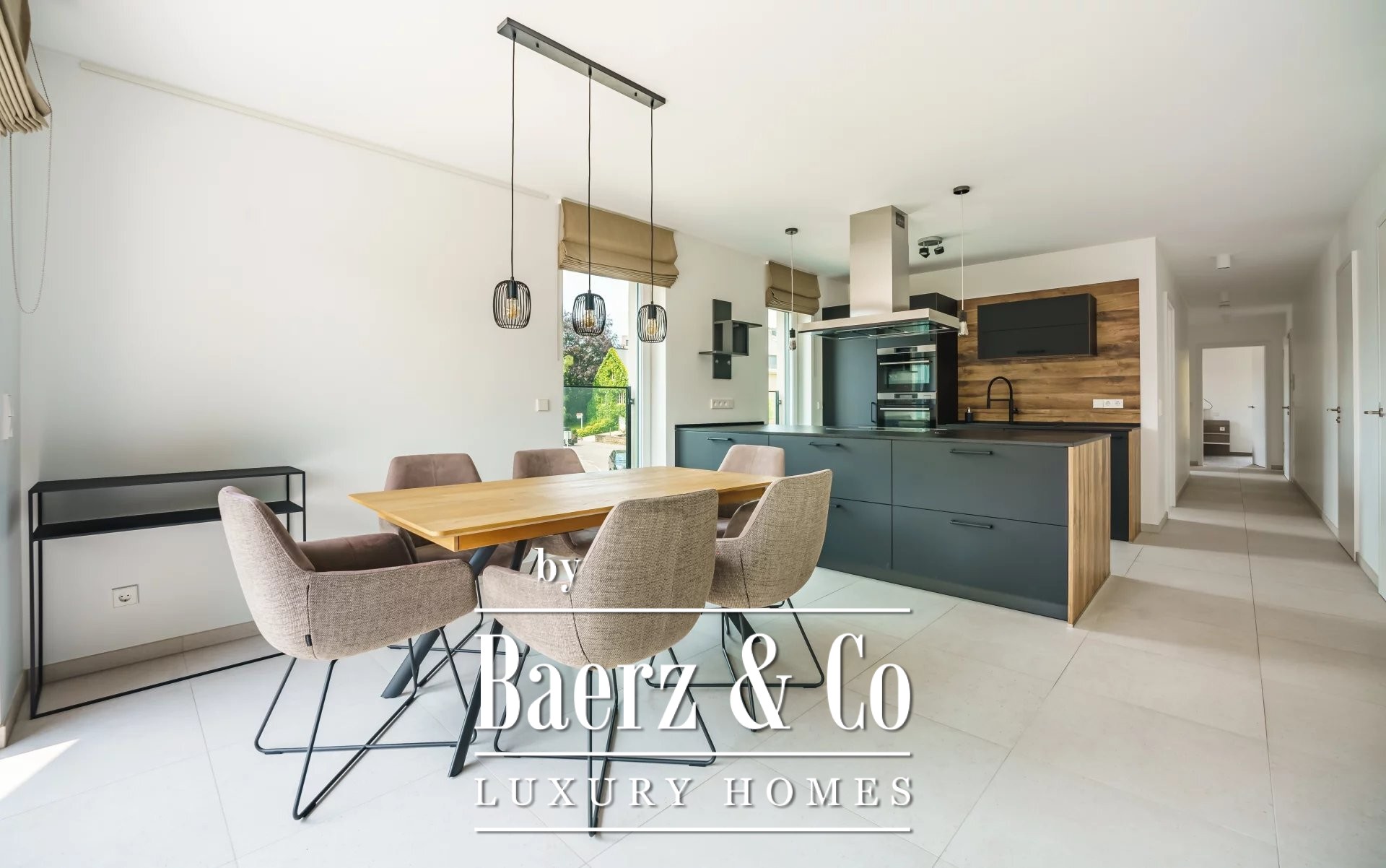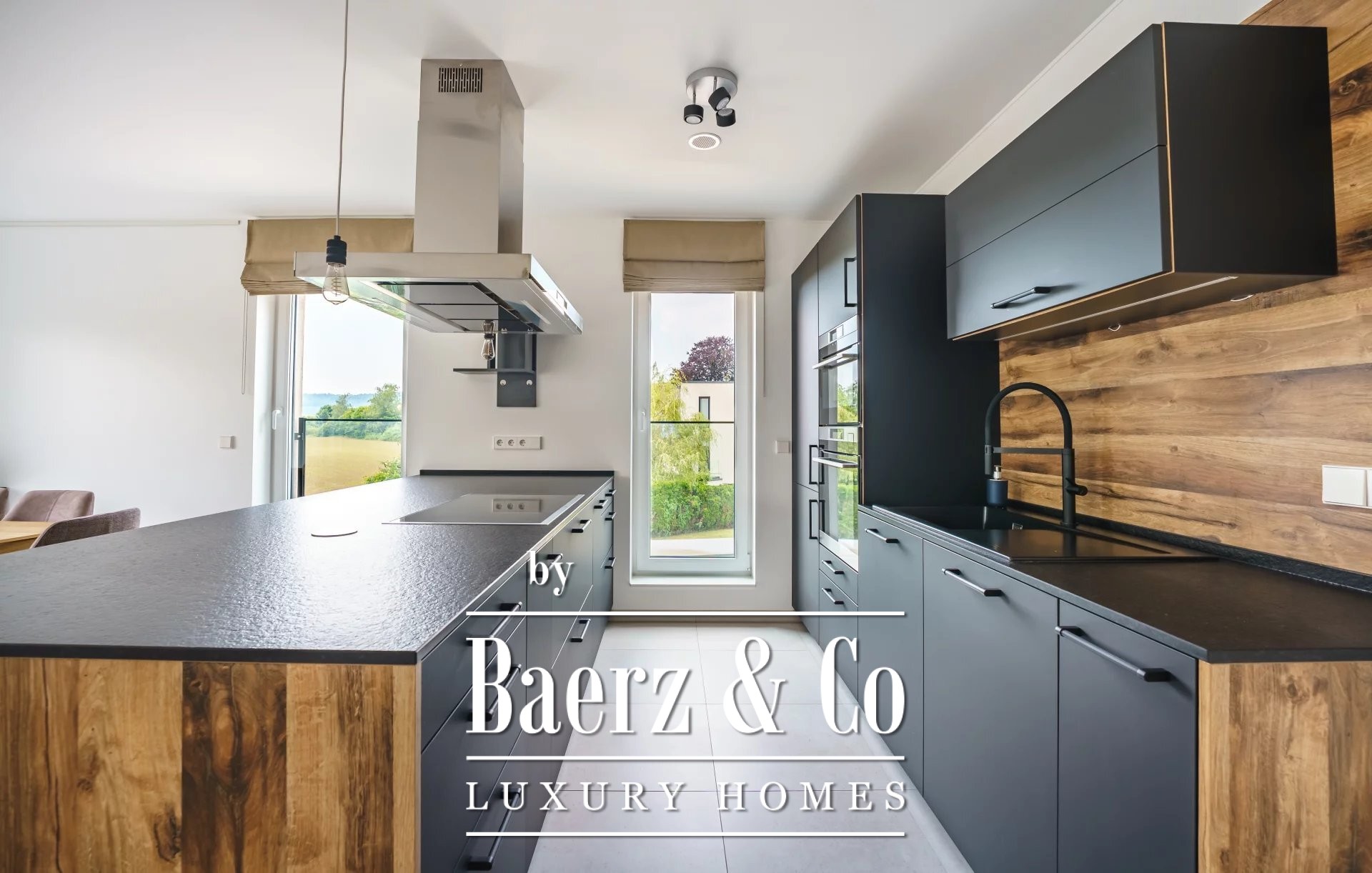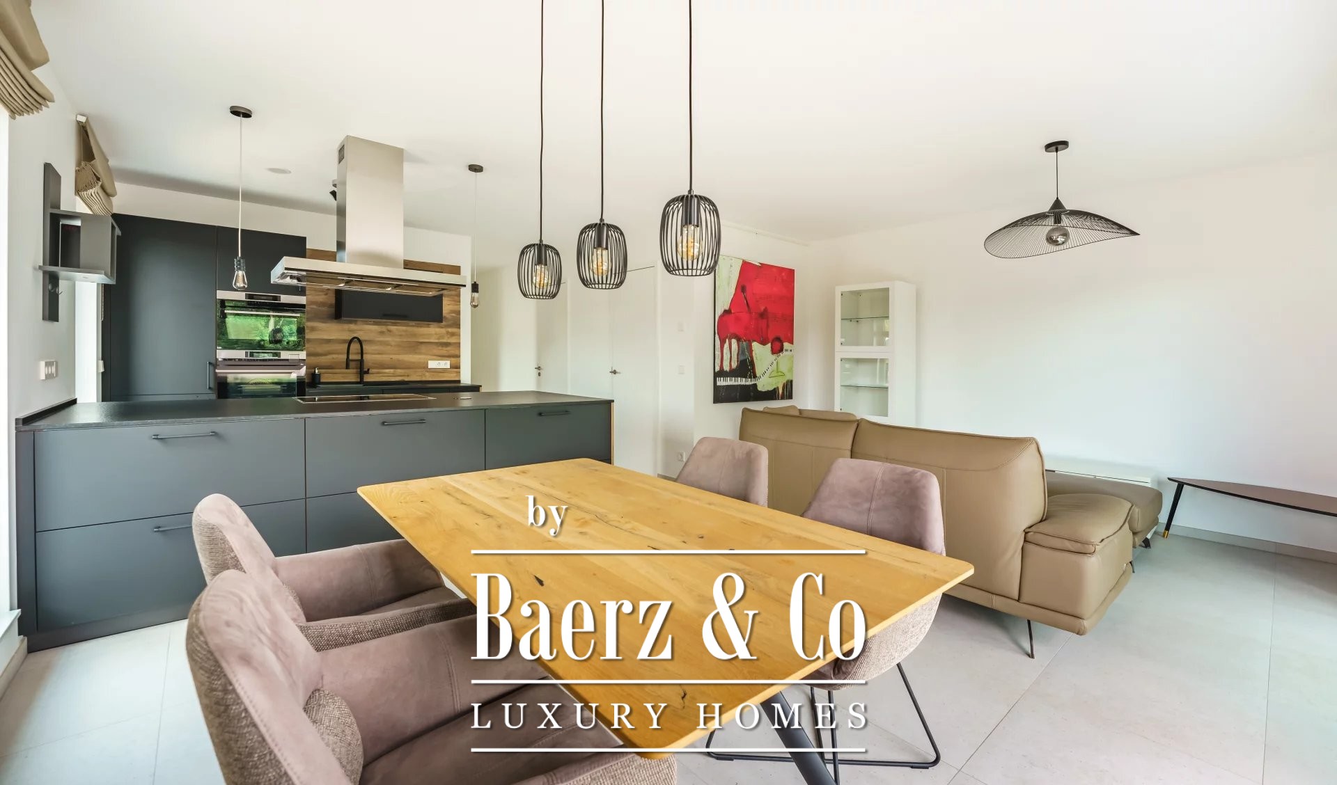 Das Apartment Mersch Luxemburg bietet eine ausgewogene Harmonie aus Raum und Licht auf 87 m² Wohnfläche, gestaltet von Arend & Fischbach. Beim Eintreten führt eine 10 m² große Diele in den offenen Wohnbereich mit Einbauküche, der sich über 35 m² erstreckt und auf eine 15 m² Terrasse mit Blick ins Grüne hinausführt. Zwei Schlafzimmer mit 13 m² und 18 m² bieten Rückzugsorte; ein elegantes Bad und separates WC sorgen für Privatsphäre. Die Grundrissgestaltung überzeugt mit Funktionalität: Ein 3 m² großer Abstellraum, ein Keller sowie Innen- und Außenstellplätze sind vorhanden. Dreifachverglasung, Fensterbeschattung, elektrische Markisen, Aufzug, Video-Gegensprechanlage und Energieklasse B unterstreichen den modernen Komfort.