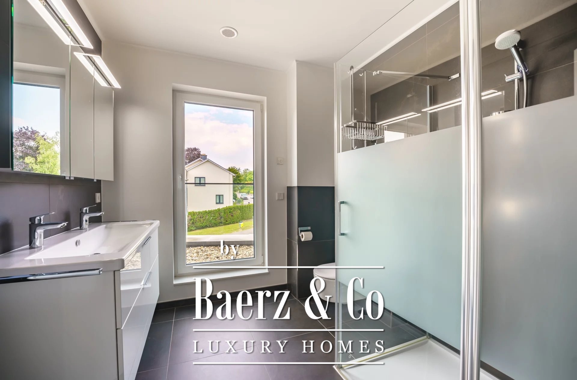 Das Leben außerhalb der Wohnung gestaltet sich ebenso mühelos: Radwege befinden sich nur hundert Meter entfernt, der weitläufige 13 Hektar große Mersch Park ist in 300 Metern erreicht und der Bahnhof Mersch ist bequem zu Fuß erreichbar. Anerkannte Kindergärten, die Mersch International School, Restaurants und Einkaufsmöglichkeiten wie Cactus, Leclerc, Grand Frais, Lidl und Aldi befinden sich in unmittelbarer Nähe. Die Ausrichtung der Wohnung ermöglicht einen ruhigen Ausblick ins Grüne, ergänzt durch direkten Zugang zu Sportzentren und der A7, wodurch sich internationalen Käufern ein Lebensstil von Leichtigkeit und zurückhaltender luxemburgischer Qualität bietet.