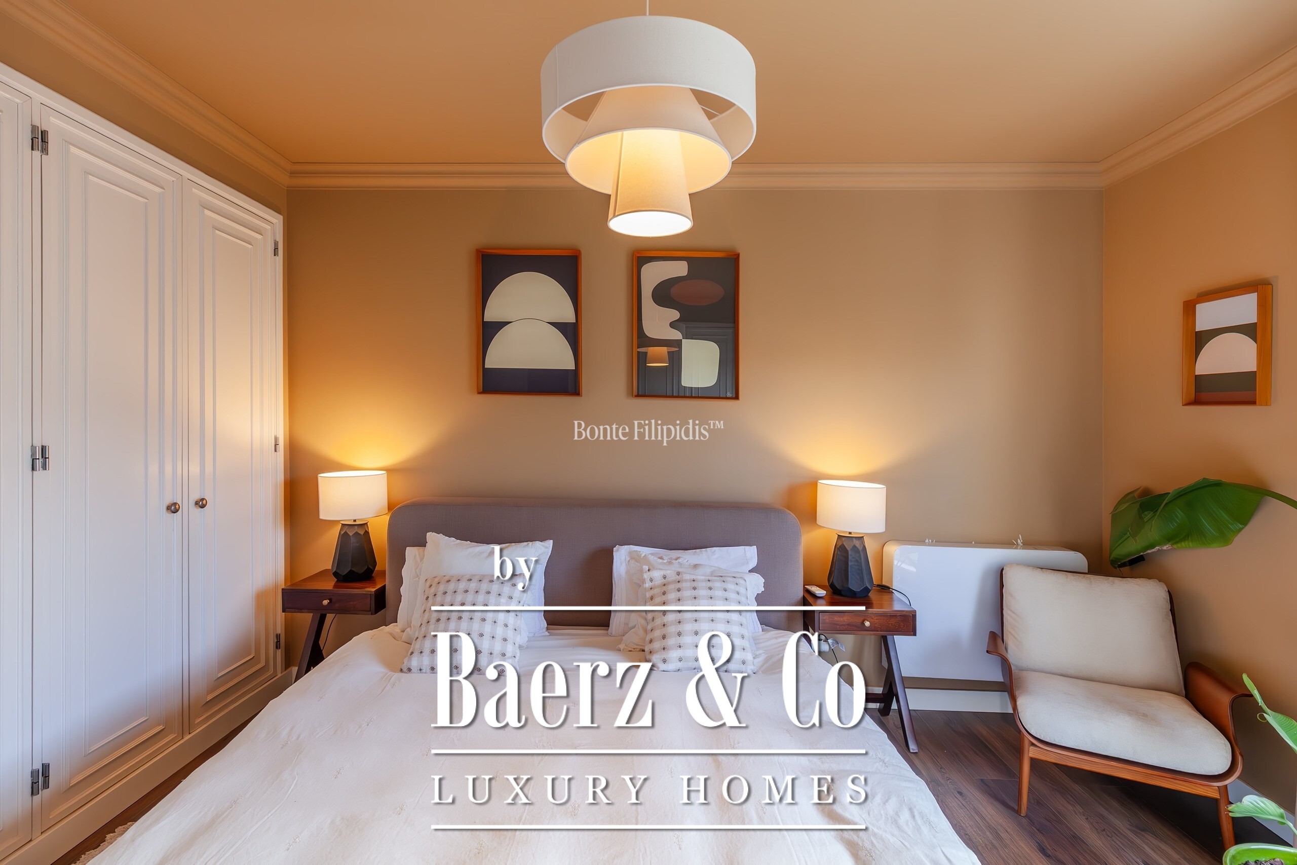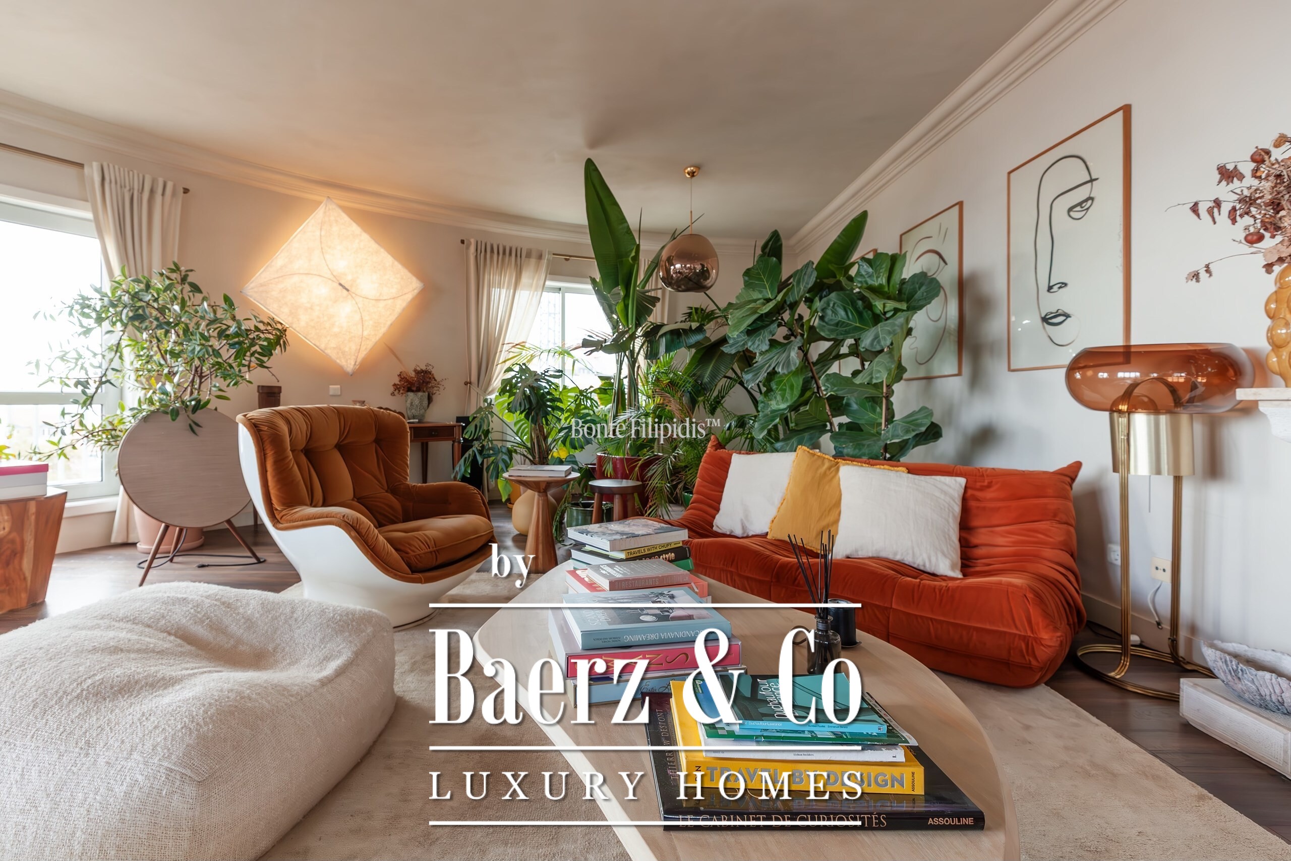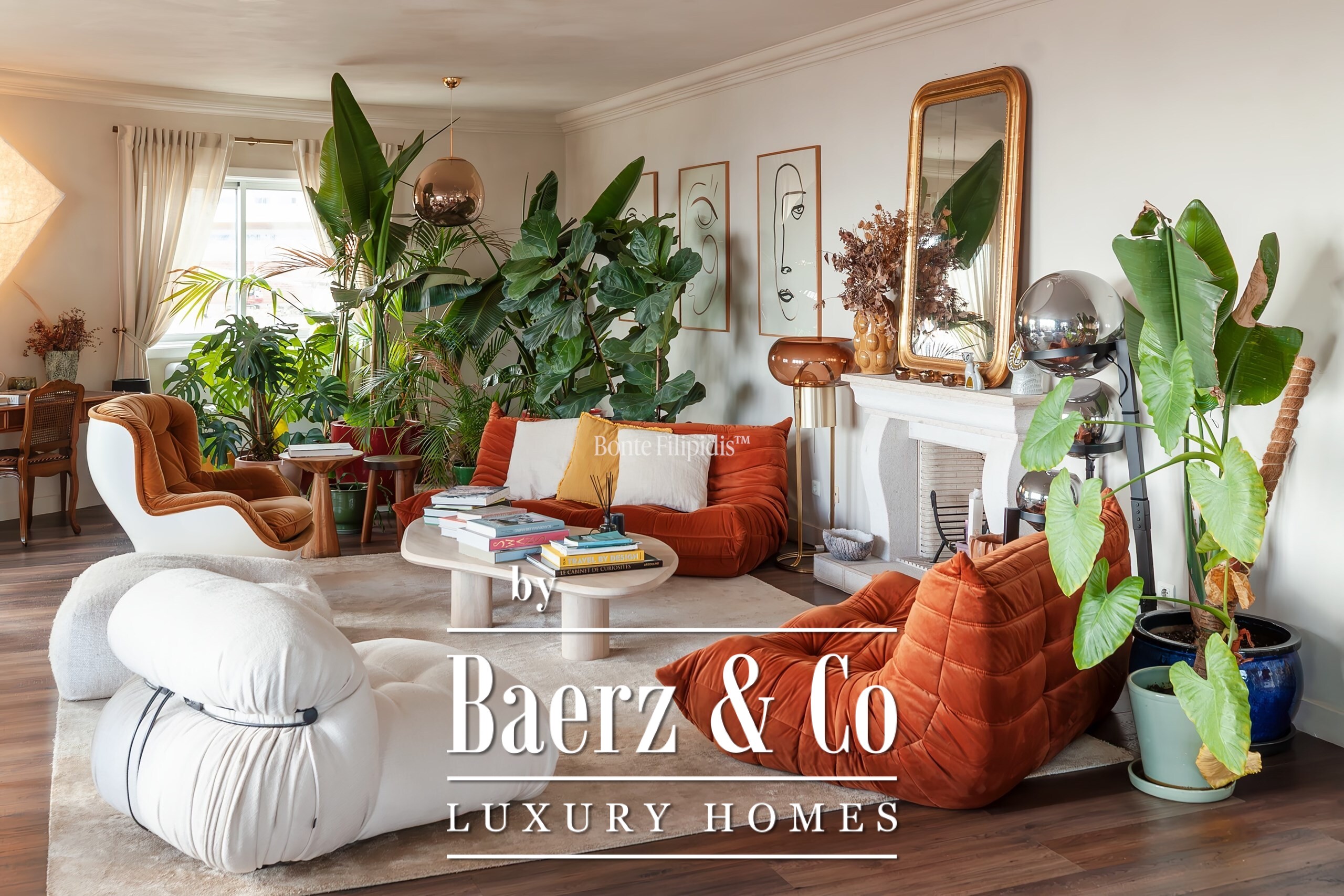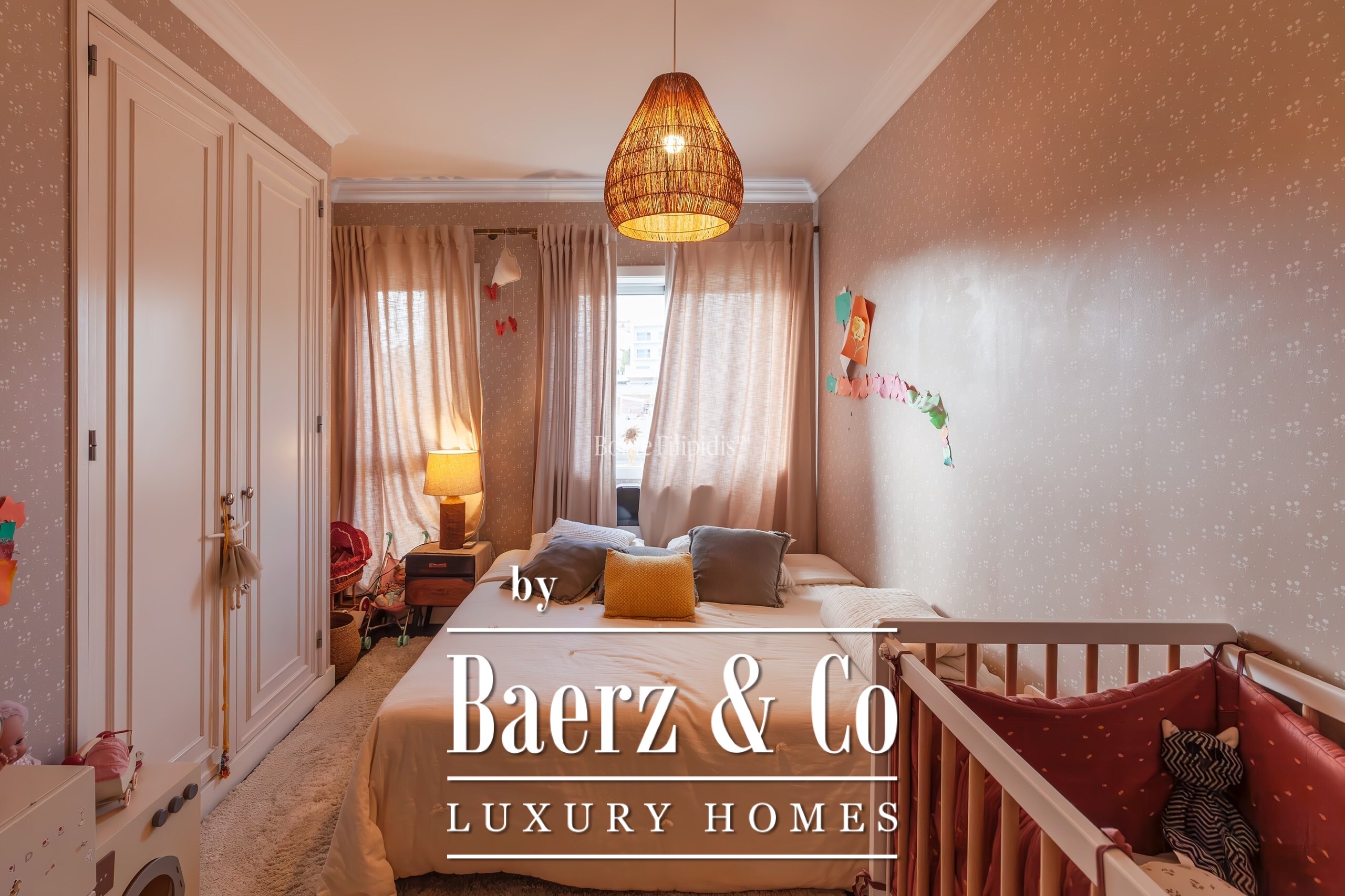 Die vier Schlafzimmer zeichnen sich durch eine diskrete Großzügigkeit aus und werden durch drei vollwertige Bäder ergänzt. Die Wohnung verbindet traditionelle Lissabonner Eleganz – hohe Decken, Holzböden, originale Details – mit durchdachtem modernen Komfort. Das Gebäude bietet Aufzug, gesicherte Parkmöglichkeiten und durchdachte Annehmlichkeiten.