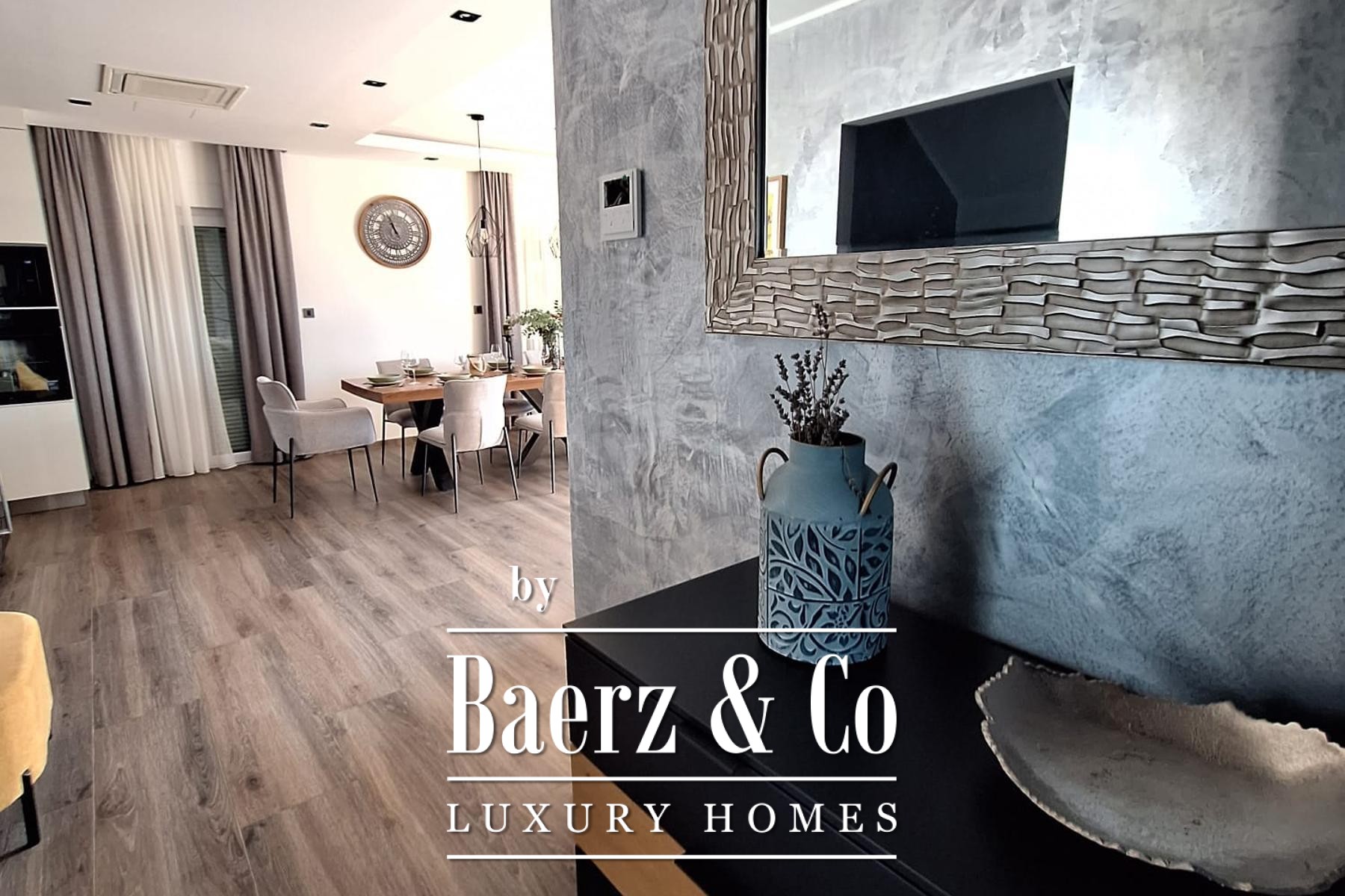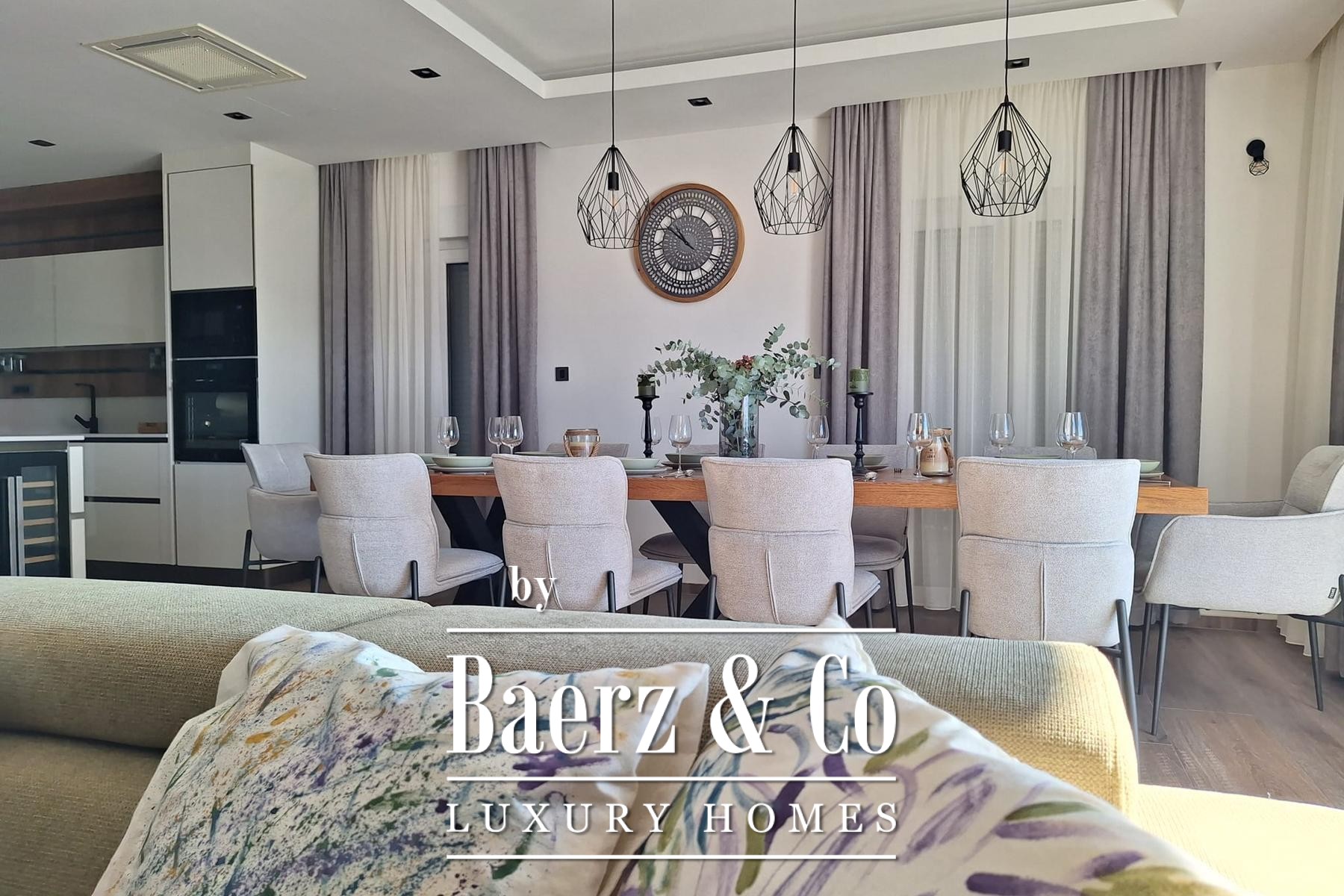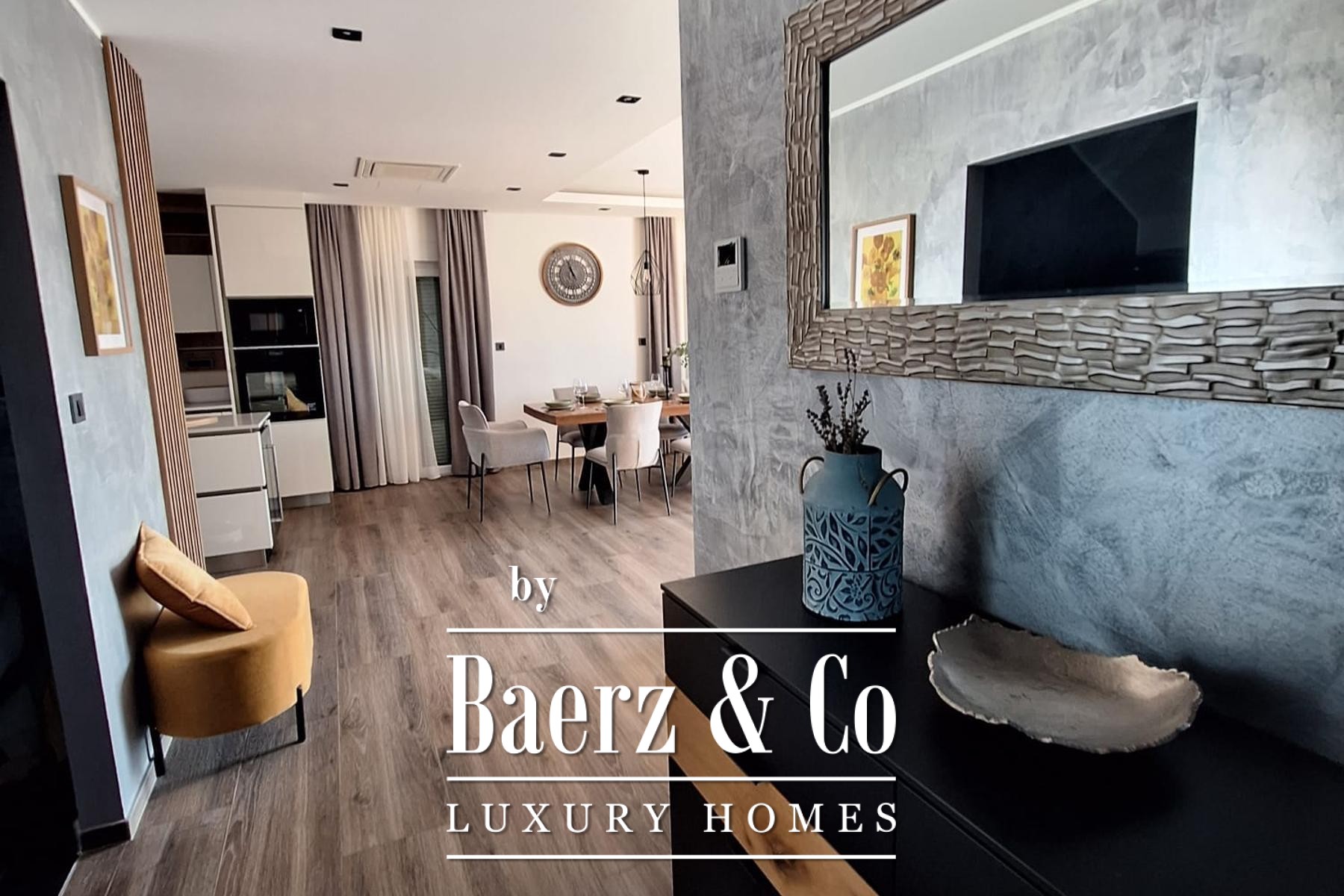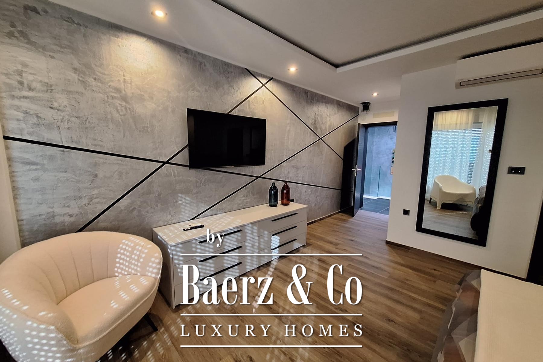 Die Aufteilung ist sorgfältig auf zeitgemäßen Komfort und elegante Privatsphäre abgestimmt. Das Untergeschoss umfasst einen eigenen Wellnessbereich, einen Fitnessraum sowie einen Raum für Sport oder Freizeitaktivitäten, ergänzt durch einen praktischen Hauswirtschaftsraum. Im Erdgeschoss verbindet ein großzügiger Wohnbereich fließend eine offene Küche mit dem Essplatz, ein Gäste-WC und ein Schlafzimmer mit eigenem Bad vervollständigen das vielseitige Raumangebot.
