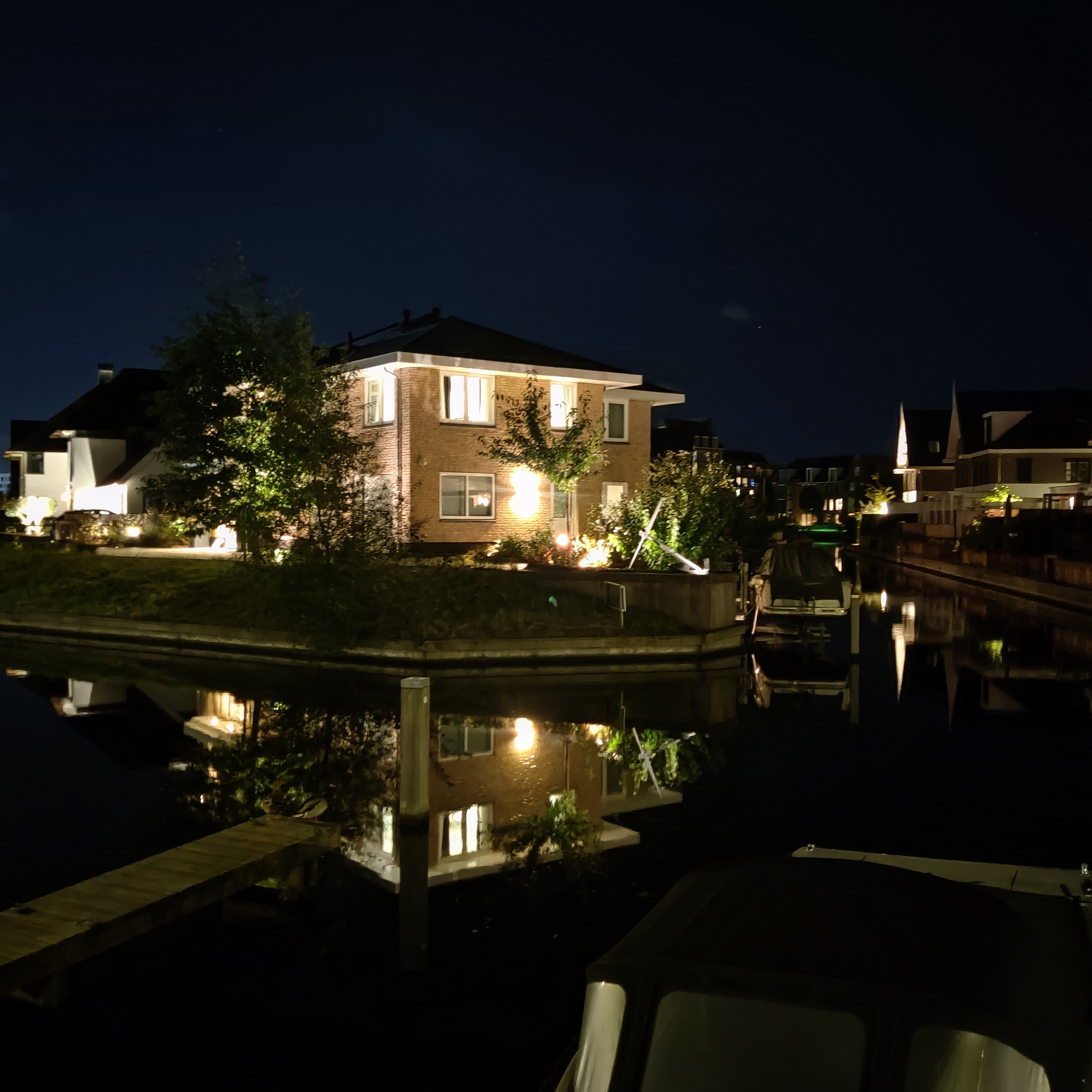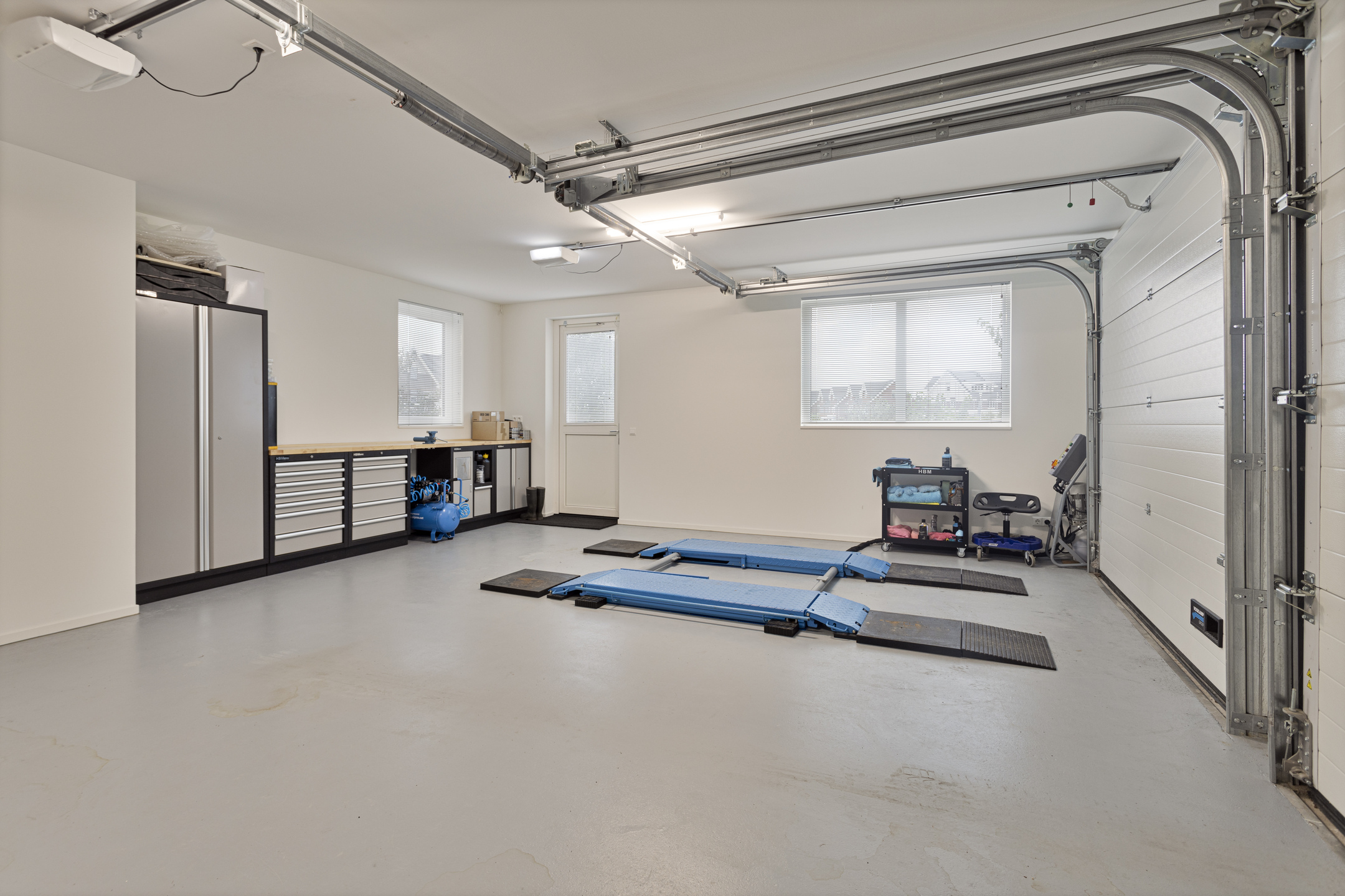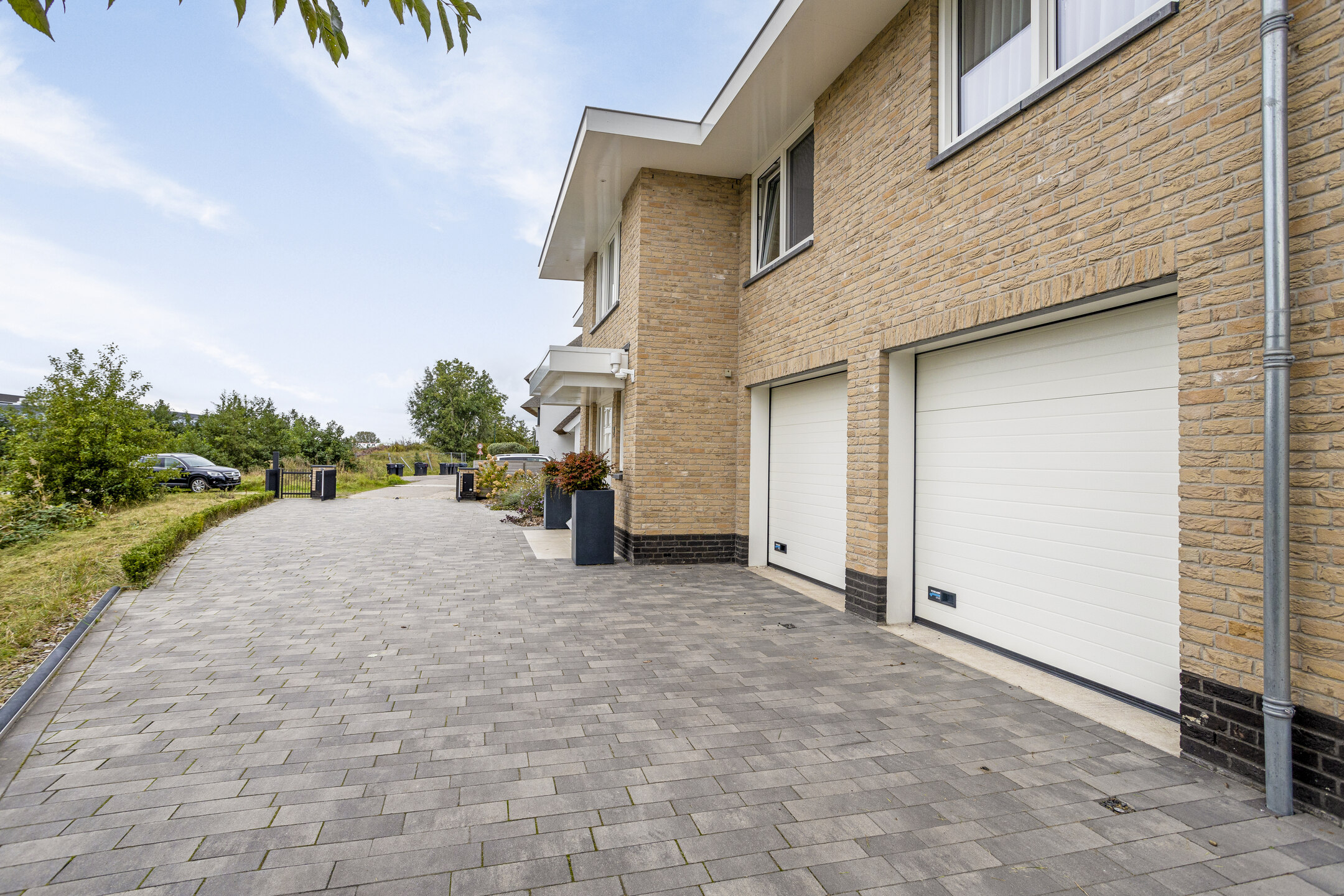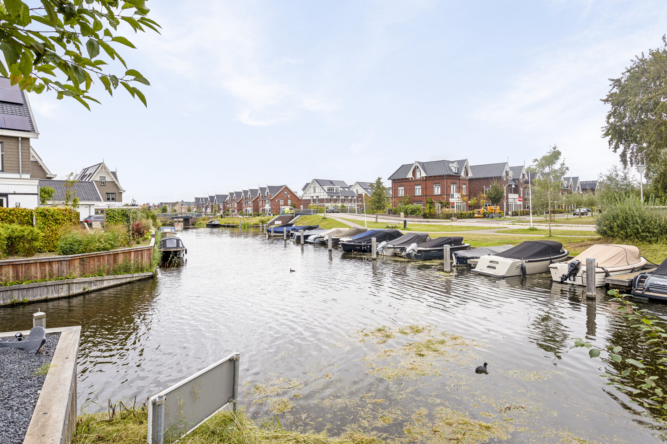 Walking up to the house, you will immediately notice the very spacious driveway with an electrically operated driveway gate. At the end of the driveway there is a double indoor garage. Next to the house is the wooden shed, which can be useful to store bicycles. The backyard is beautifully landscaped and has a spacious terrace directly adjacent to the house and a large 'deck' on the water. On the long side of the garden there are several mooring places for boats, one of which is equipped with a boat lift.