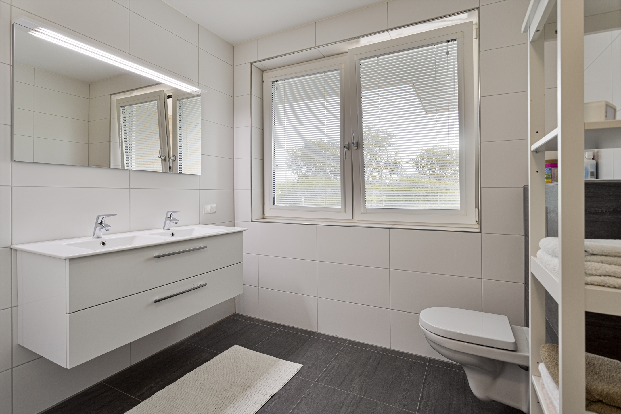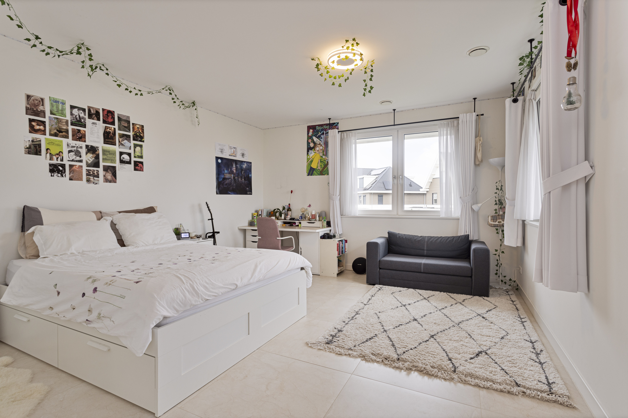 Spacious landing with separate laundry room and technical room. You will also find 4 very spacious bedrooms on this floor. The master bedroom has a very spacious walk-in wardrobe with custom-made cupboards and behind it a luxurious ensuite bathroom with bath, shower, double sink and toilet. One of the other bedrooms also has an ensuite bathroom (with shower, sink and toilet). The other two bedrooms share a beautiful spacious (3rd!) bathroom with shower, double sink and toilet. A hatch on the landing gives access to a very spacious storage attic.