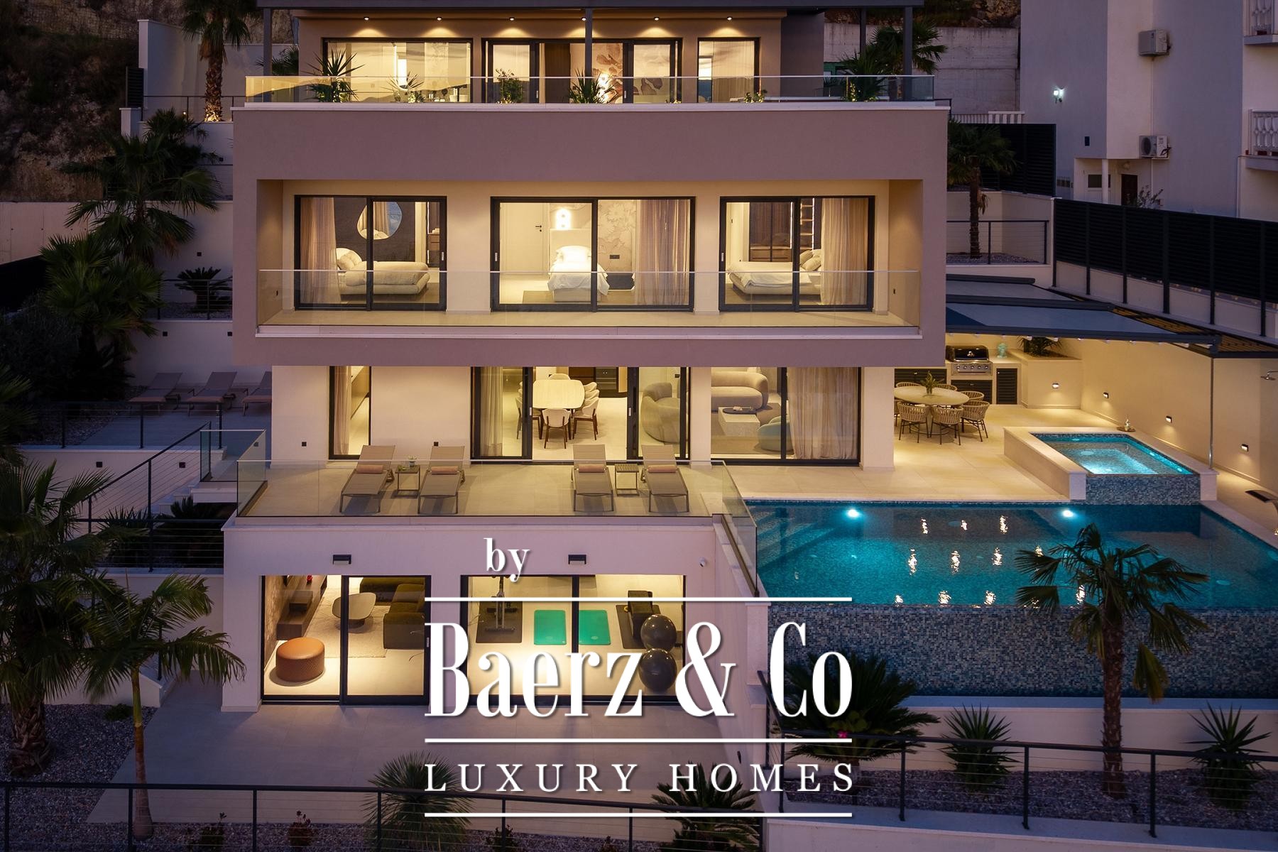 Diese Luxusvilla in Omiš vereint zeitgenössische Architektur mit harmonischen Meeresblicken über vier großzügige Etagen. Das Anwesen bietet 415 m² Wohnfläche auf einem 600 m² großen Grundstück und liegt nur 300 Meter von der Adria entfernt. Jede Ebene der Villa eröffnet einen freien, panoramischen Blick auf das Meer und schafft eine Atmosphäre, die von Licht, Ruhe und dem Rhythmus des Wassers geprägt ist.