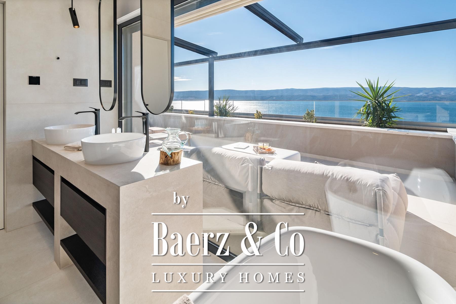 Eine Doppelgarage sowie vier zusätzliche Stellplätze befinden sich auf dem Dach des Gebäudes. Nahegelegene Sand- und Kiesstrände sowie die Ruhe einer kleinen dalmatinischen Stadt verleihen dem Alltag diskreten Komfort. Nur 15 Kilometer von Split und 30 Kilometer vom Flughafen entfernt, ist diese Luxusvilla in Omiš bezugsfertig und verbindet Entspannung mit eleganter Lebensart.