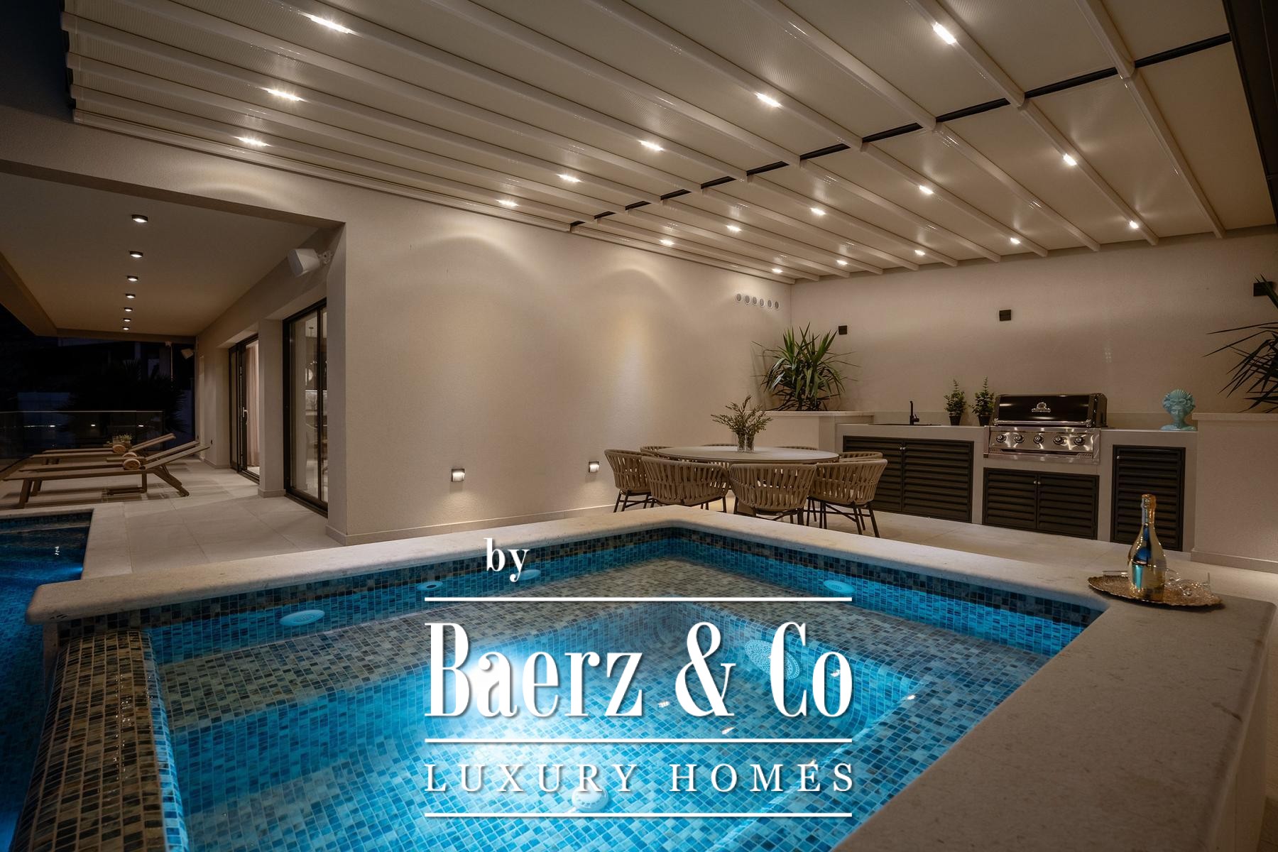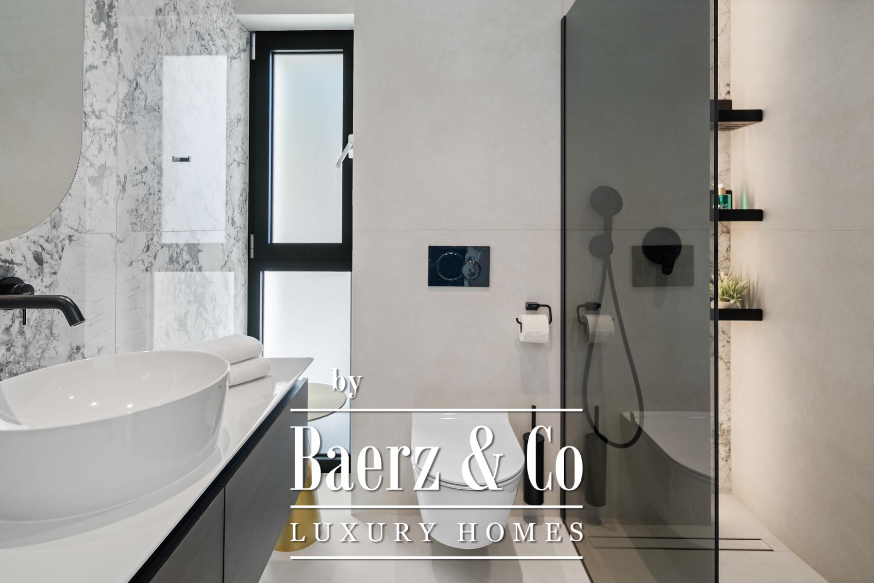 In der gesamten Villa sorgen Fußbodenheizung, Inverter-Klimaanlage und hochwertige Dämmung für Komfort und Energieeffizienz. Edle Steine, anthrazitfarbenes Aluminium und dreifach verglaste Fenster unterstreichen den Anspruch an Bauqualität und Schallschutz. Das oberste Geschoss beherbergt eine abgeschiedene Suite mit privater Terrasse, Whirlpool und beweglicher Pergola.