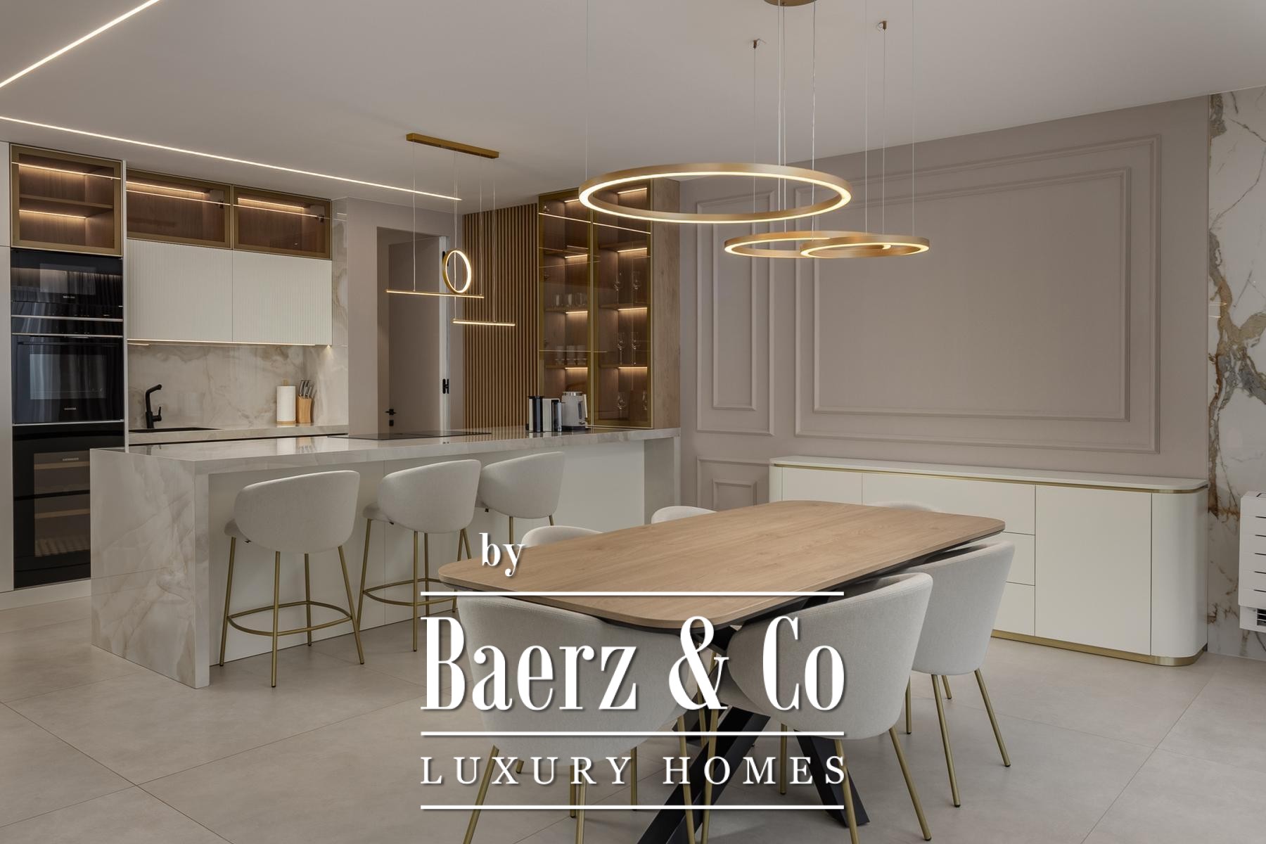 Hochwertige Materialien und dezente Details bestimmen das Ambiente, unterstützt durch eine Garage, zwei zugeordnete Stellplätze sowie zusätzlichen Stauraum für mehr Komfort im Alltag. Die Wohnung befindet sich in einem Neubau mit zeitgemäßer Infrastruktur und vermittelt durch sorgfältig ausgewählte Möbel und harmonische Raumgestaltung ein Gefühl von zeitloser Eleganz.