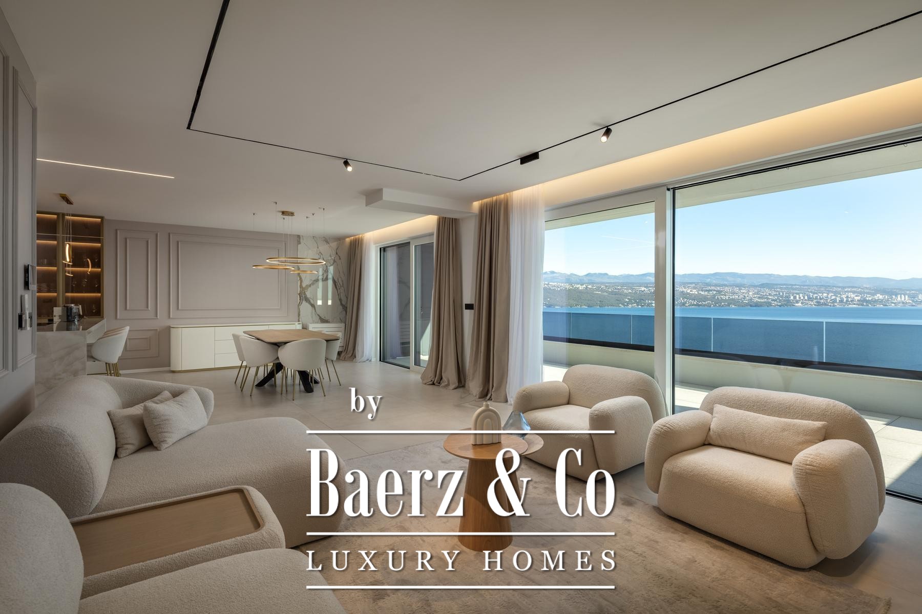 Das Apartment Opatija ist eine anspruchsvolle Küstenresidenz mit einer Wohnfläche von 142 m², die für Menschen konzipiert wurde, die Klarheit im Raum und eine gehobene mediterrane Perspektive schätzen. Die Wohnung erstreckt sich über drei Schlafzimmer und drei Badezimmer sowie einen großzügigen, offen gestalteten Küchen-, Ess- und Wohnbereich, der auf eine Terrasse mit Blick auf den Kvarner Golf führt. Die Ausrichtung sorgt für lichtdurchflutete Räume; großes Fensterglas rahmt die Adria und das sanfte Vorüberziehen der Schiffe.