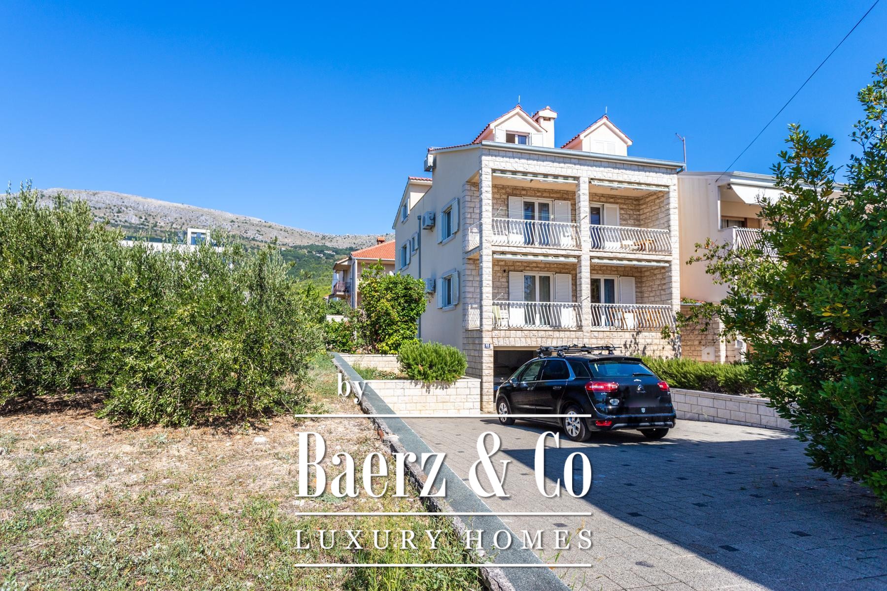 Podstrana, a house with three units and great potential just 100 meters from the sea.Semi-detached house with a gross area of 350 m2 is located on a plot of land of 695 m2 with the possibility of expanding the parking space and building a swimming pool. The house is divided into four floors - basement, ground floor, first floor and attic.BASEMENT
