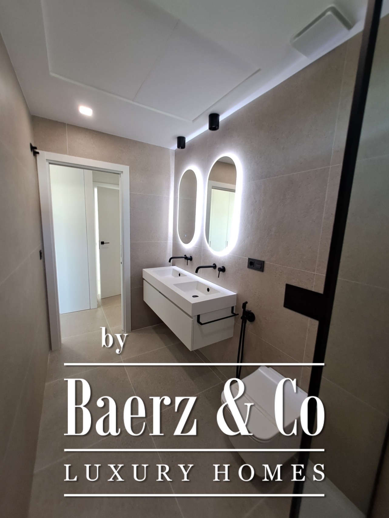 Großzügige Terrassen, teils überdacht und teils offen, schaffen harmonische Übergänge zwischen Innen- und Außenbereichen. Von hier aus genießen Sie einen konstanten Ausblick auf die Berge, der eine beruhigende Atmosphäre vermittelt. Im Außenbereich laden der private Pool und gepflegte Gärten zu entspannten Nachmittagen ein, während das eingefriedete 400 m² große Grundstück Sicherheit und Diskretion gewährleistet. Eigene Parkmöglichkeiten, doppelt verglaste Fenster und eine Sicherheitstür stehen für sorgloses, komfortables Wohnen.