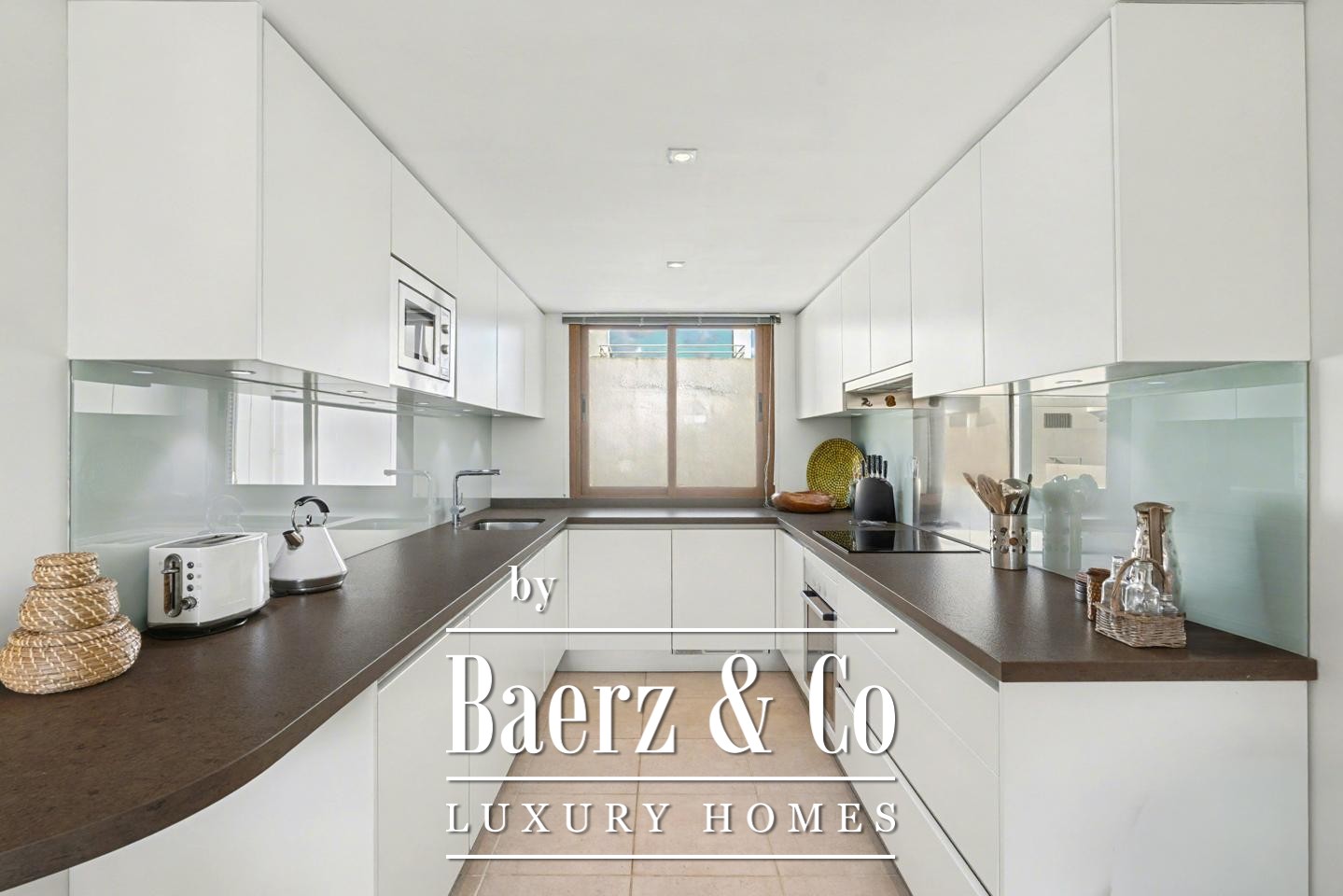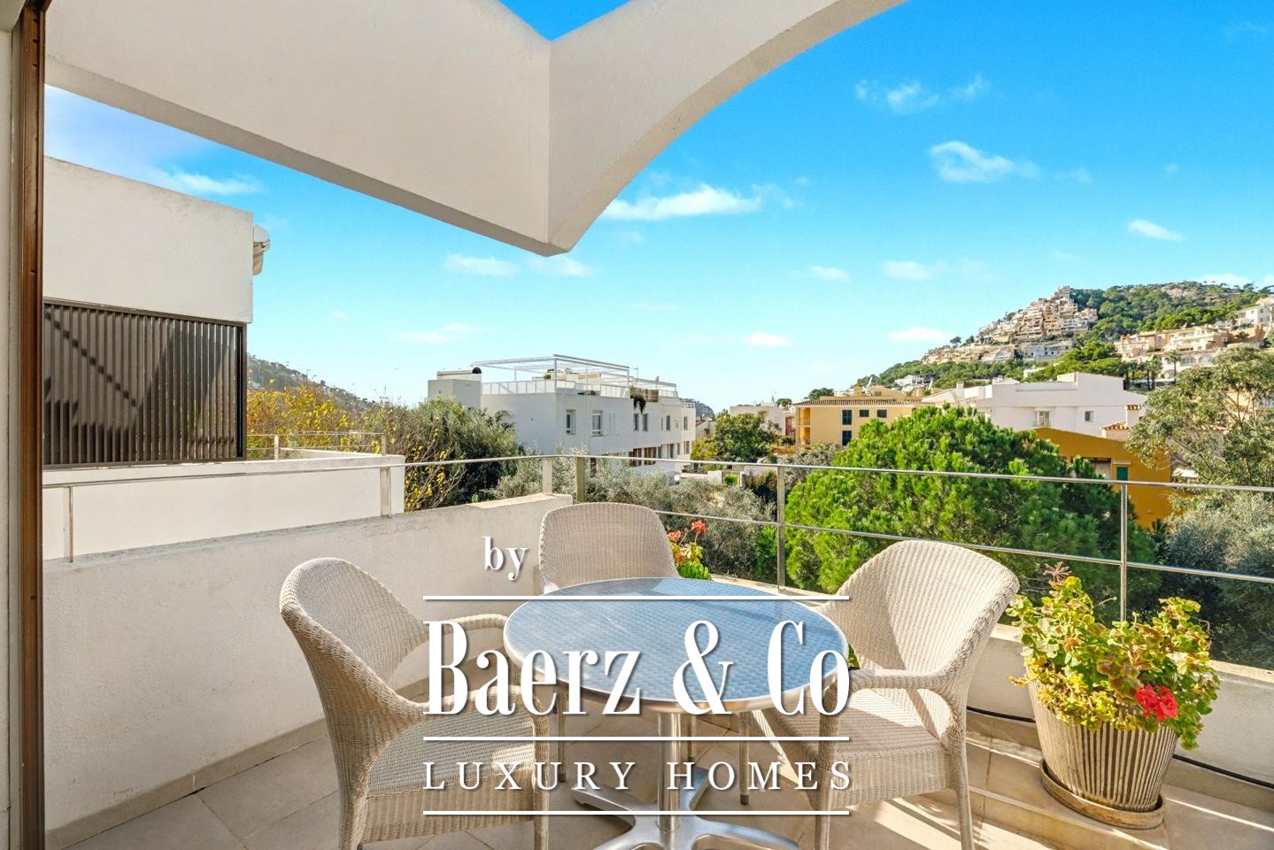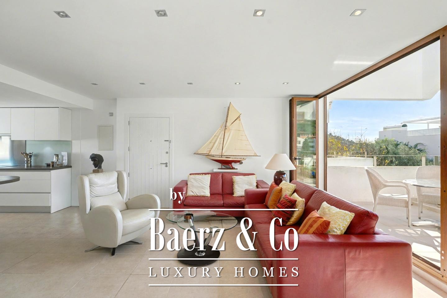 Dieses Penthouse in Port d'Andratx präsentiert eine fein ausbalancierte Verbindung aus mediterraner Gelassenheit und zeitgenössischer Klarheit, eingebettet in eine ruhige internationale Enklave im Südwesten Mallorcas. Die Wohnung umfasst 106 m² mit zwei Doppelschlafzimmern und zwei Badezimmern, darunter ein en suite, alle in einer modernen, dezent selbstbewussten Ästhetik erneuert. Der offene Wohnbereich ist von natürlichem Licht durchflutet und führt nahtlos auf zwei Terrassen—eine intim, die andere großzügig dimensioniert für Mahlzeiten im Freien oder entspanntes Verweilen mit Blick auf den Hafen.