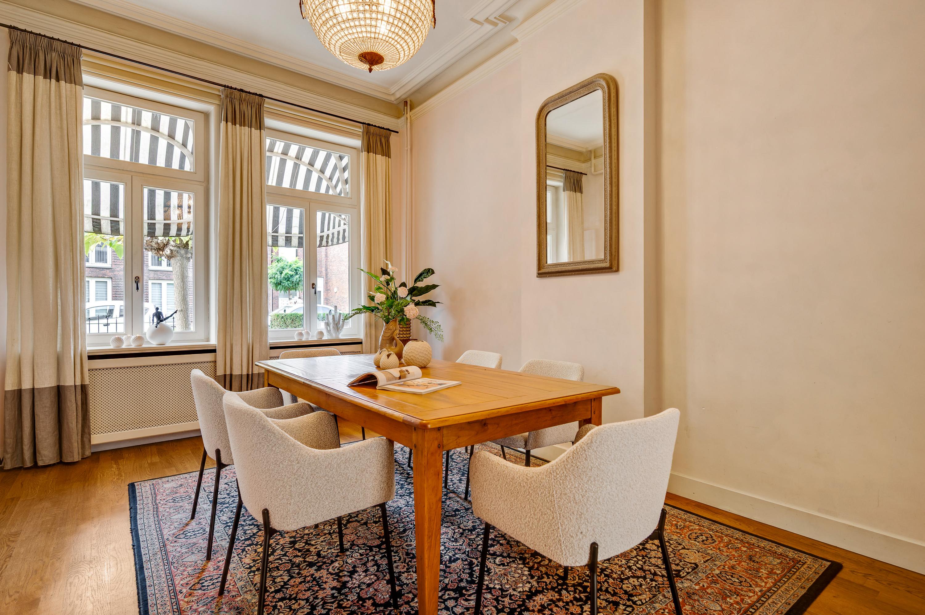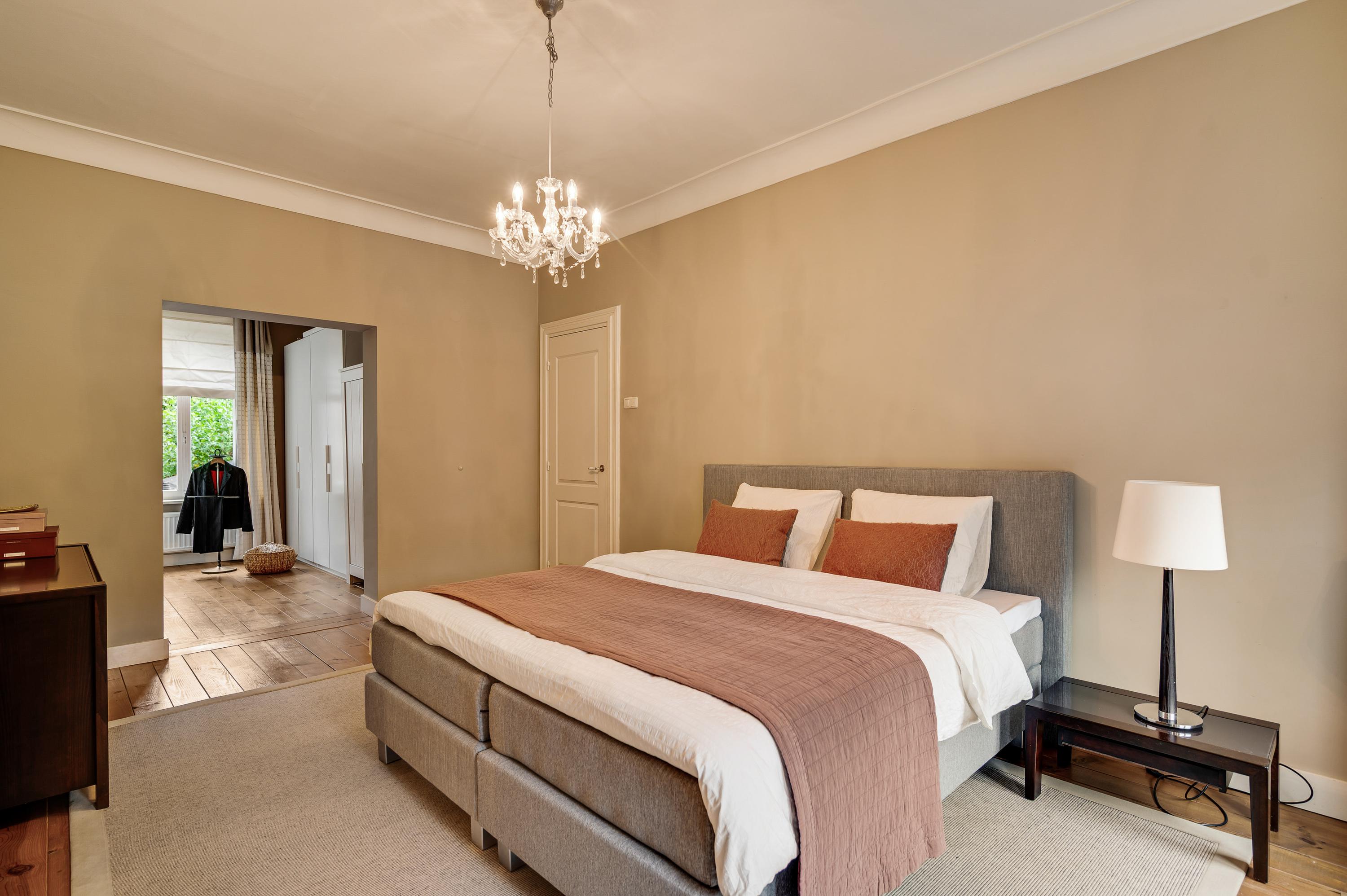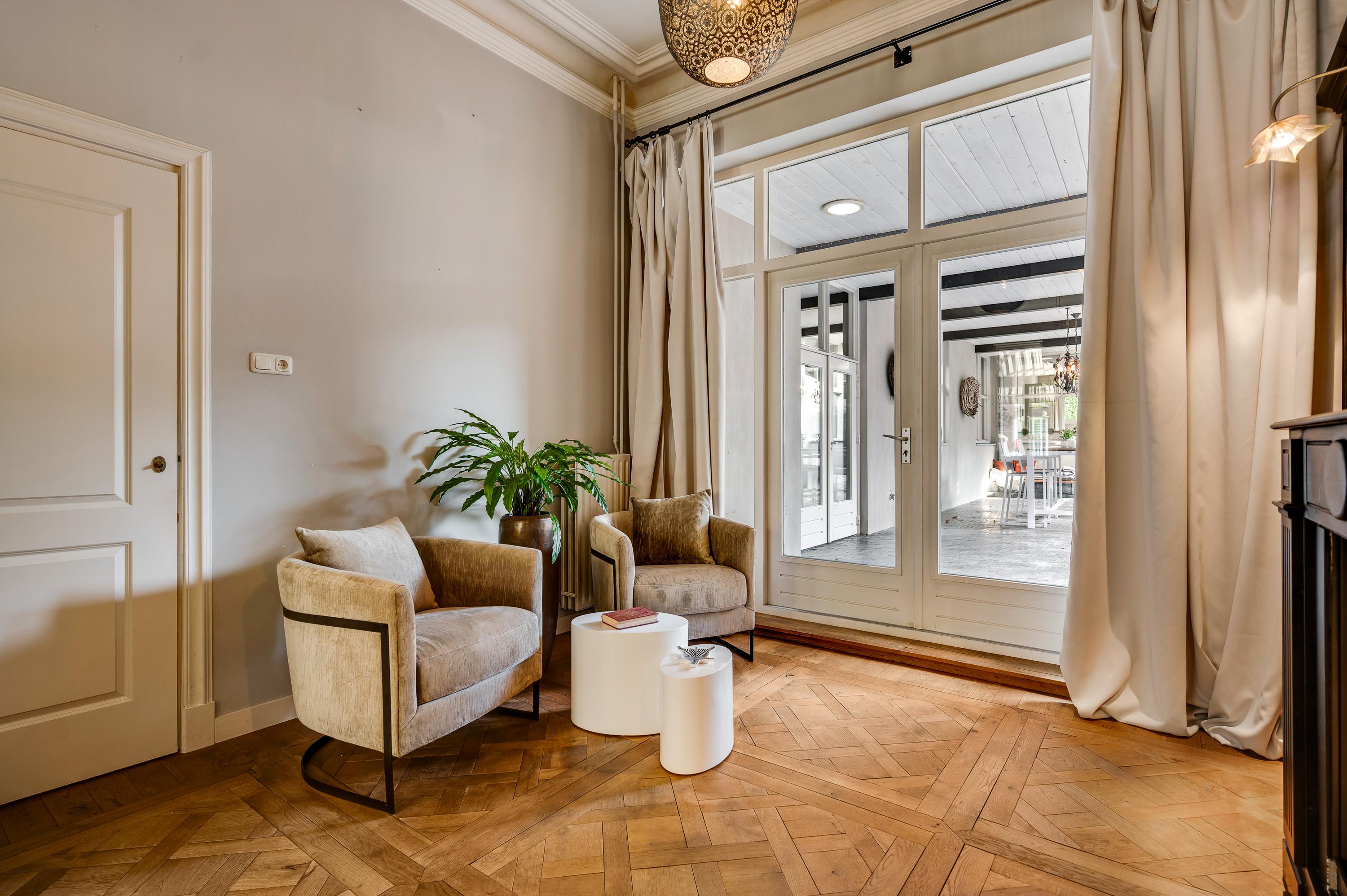 Das Herrenhaus Roermond präsentiert sich als stattliche Residenz im beliebten Viertel Kapel in ’t Zand, wo klassische Grandezza auf modernen Komfort im Herzen der Stadt trifft. Mit einer Wohnfläche von 420 m² auf einem 576 m² großen Grundstück repräsentiert diese Immobilie gehobenes städtisches Wohnen und ermöglicht zugleich Privatsphäre wie auch Nähe zum lebendigen Zentrum von Roermond. Hinter der imposanten Fassade verbinden sich neun Schlafzimmer, drei Bäder und ein elegantes Arbeitszimmer zu einem durchdachten, fließenden Raumkonzept. Das fast zehn Meter lange Wohnzimmer ist mit einem Versailles-Stabparkett und hohen Fenstern ausgestattet; französische Türen führen auf eine überdachte Terrasse und in einen ruhigen Stadtgarten – eine private Oase mitten im urbanen Leben.