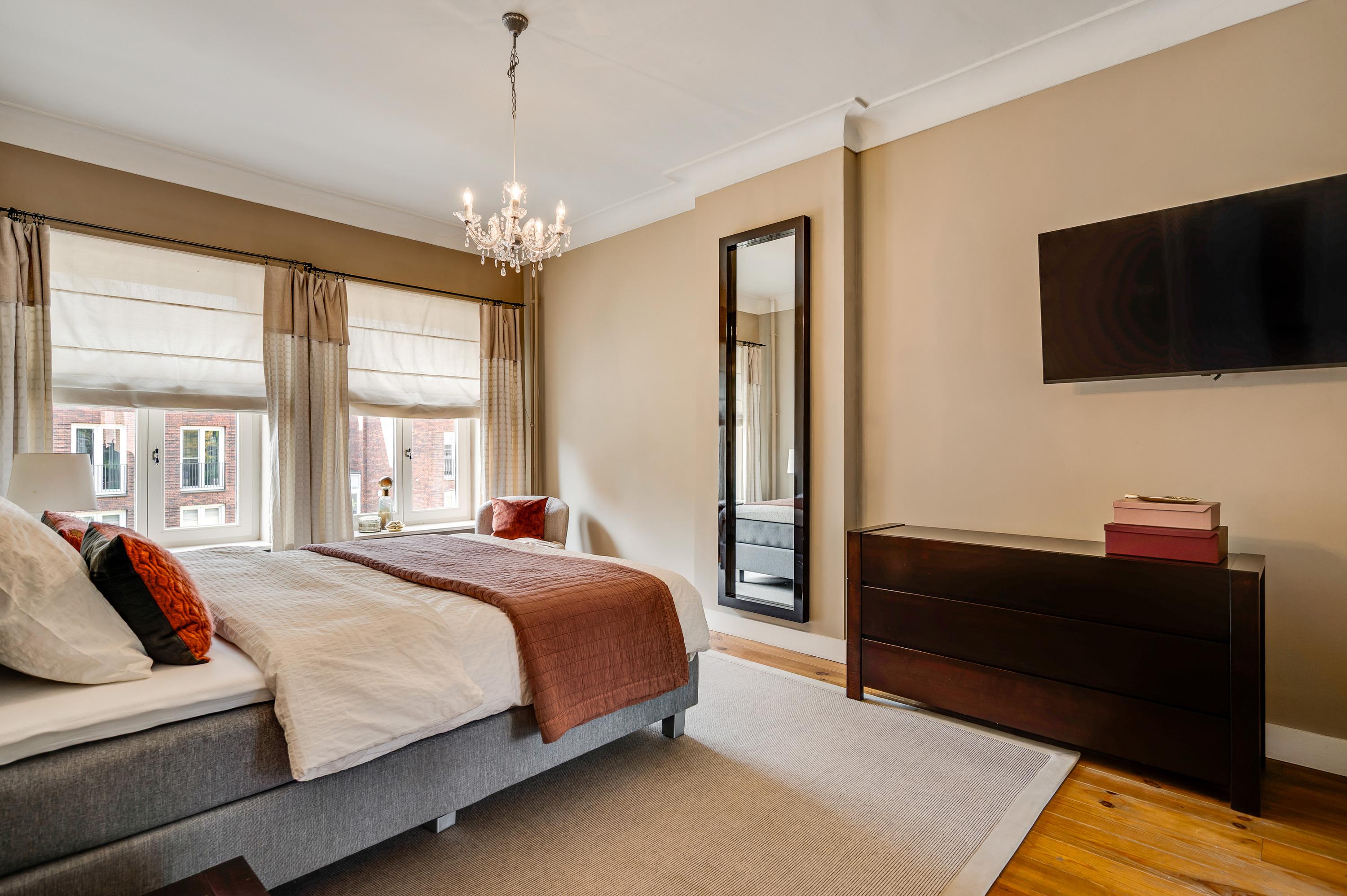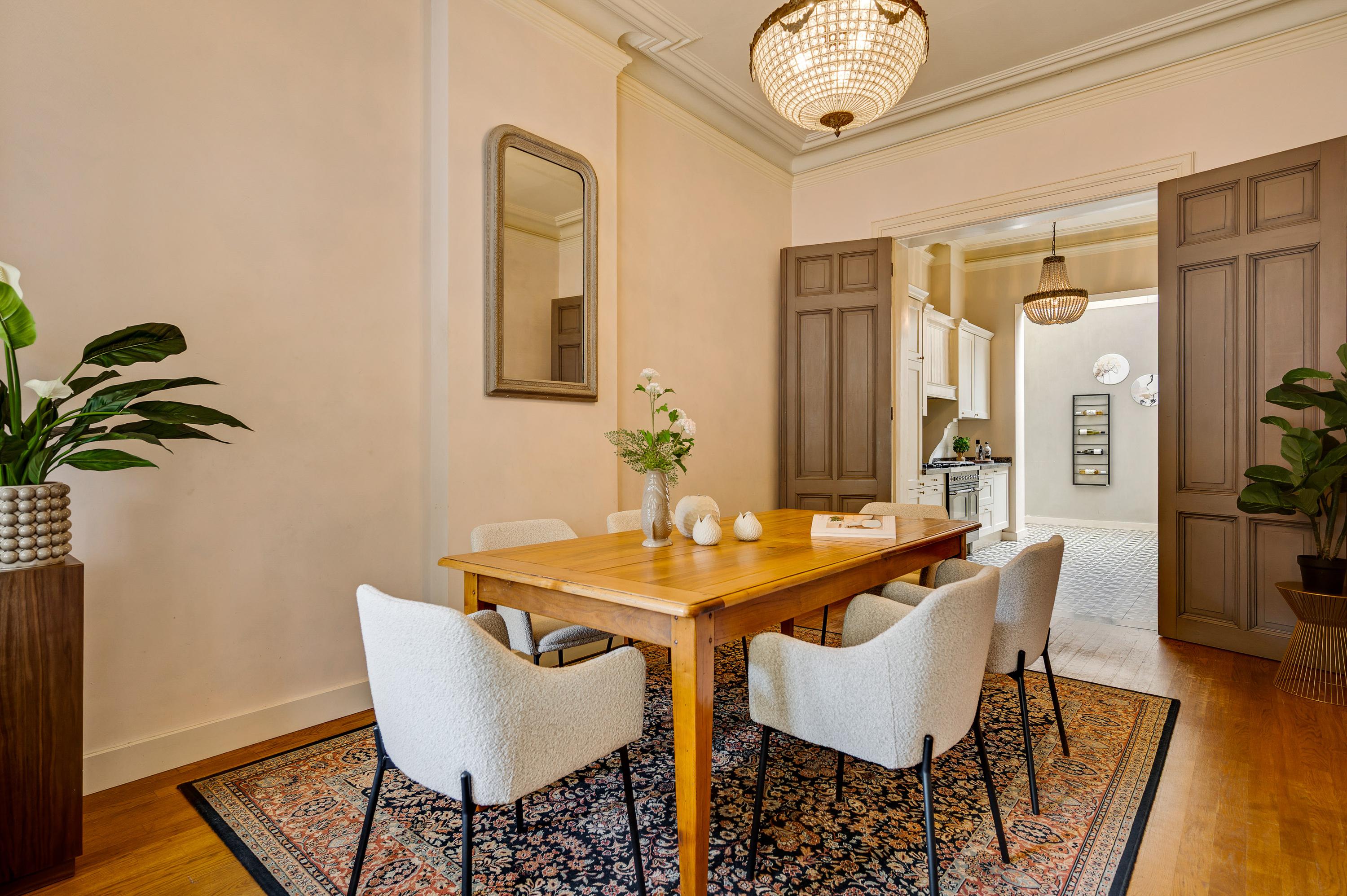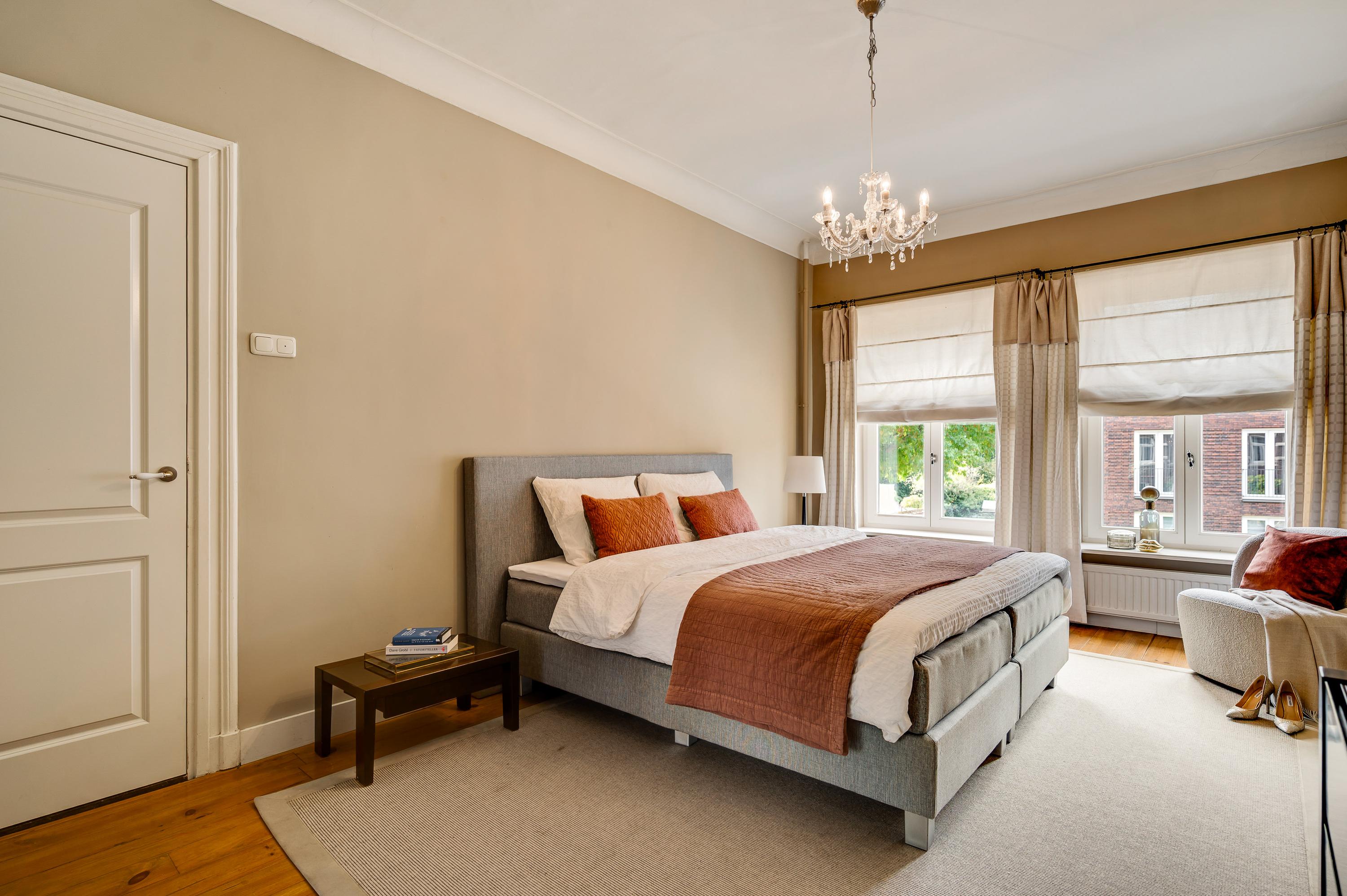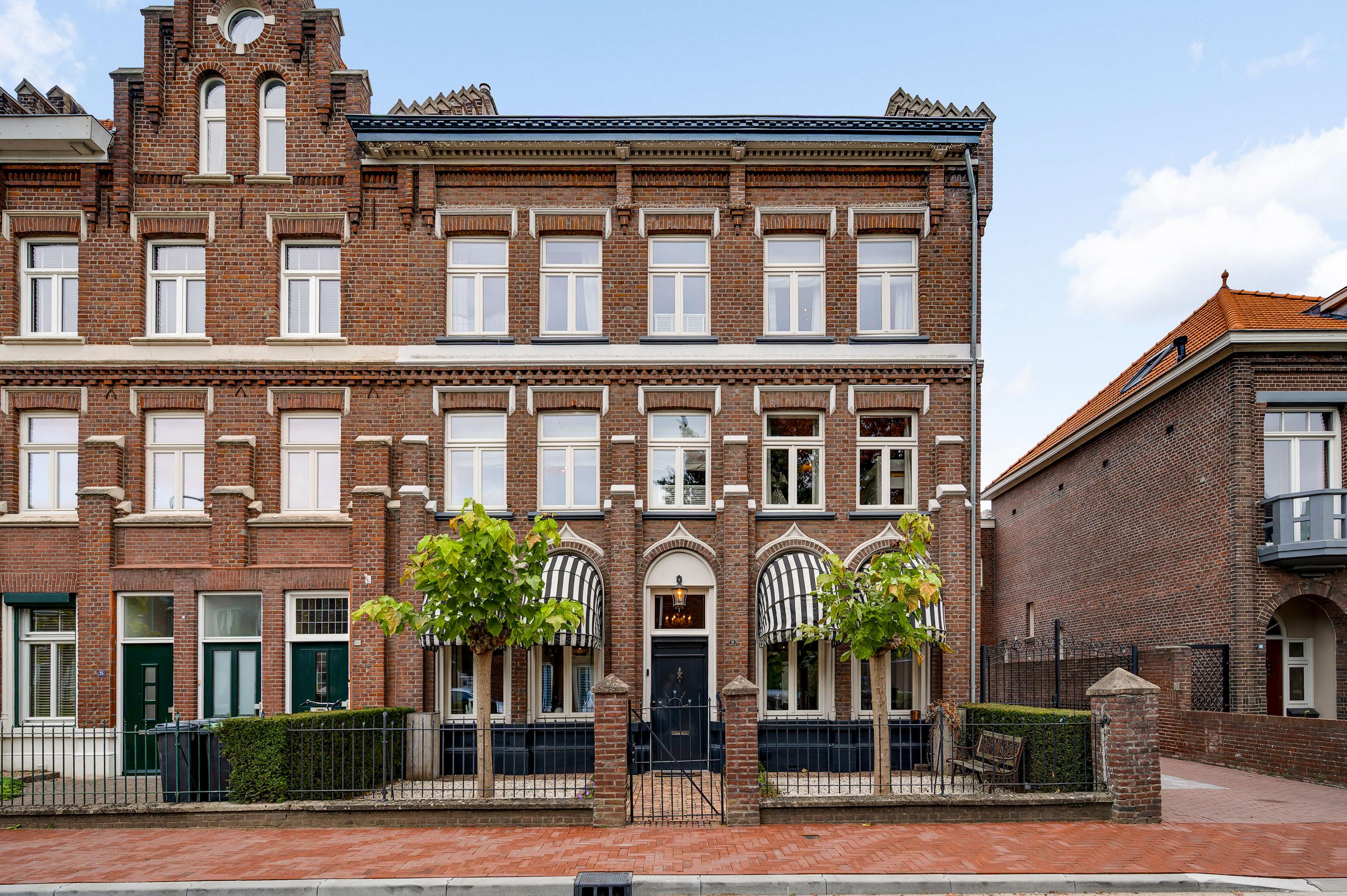 Das Herrenhaus Roermond präsentiert sich als stattliche Residenz im beliebten Viertel Kapel in ’t Zand, wo klassische Grandezza auf modernen Komfort im Herzen der Stadt trifft. Mit einer Wohnfläche von 420 m² auf einem 576 m² großen Grundstück repräsentiert diese Immobilie gehobenes städtisches Wohnen und ermöglicht zugleich Privatsphäre wie auch Nähe zum lebendigen Zentrum von Roermond. Hinter der imposanten Fassade verbinden sich neun Schlafzimmer, drei Bäder und ein elegantes Arbeitszimmer zu einem durchdachten, fließenden Raumkonzept. Das fast zehn Meter lange Wohnzimmer ist mit einem Versailles-Stabparkett und hohen Fenstern ausgestattet; französische Türen führen auf eine überdachte Terrasse und in einen ruhigen Stadtgarten – eine private Oase mitten im urbanen Leben.