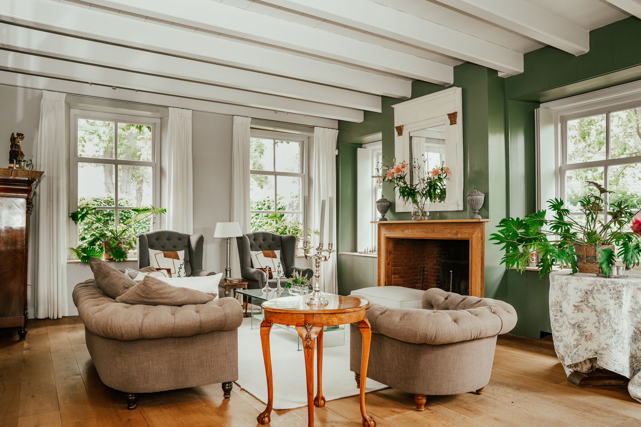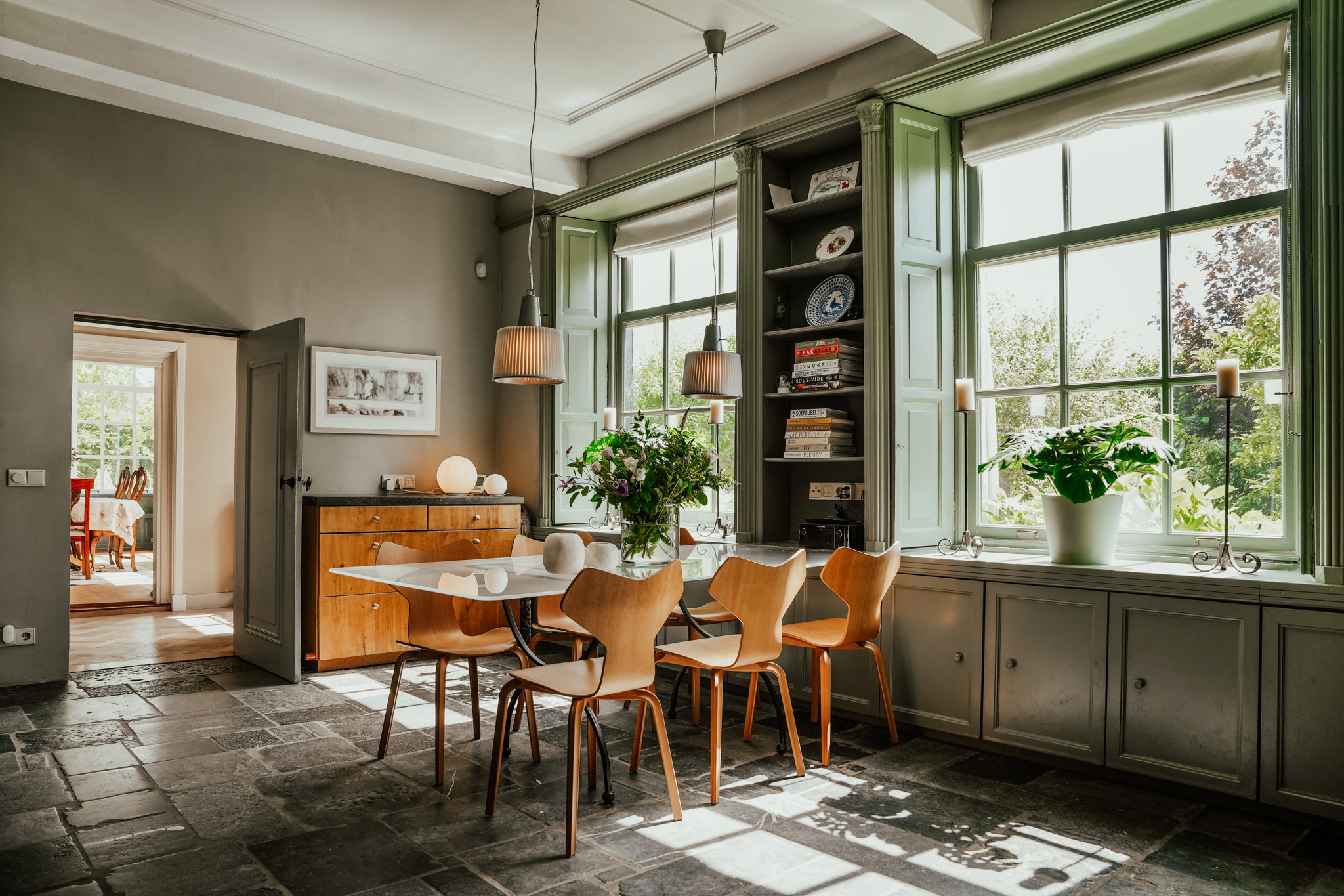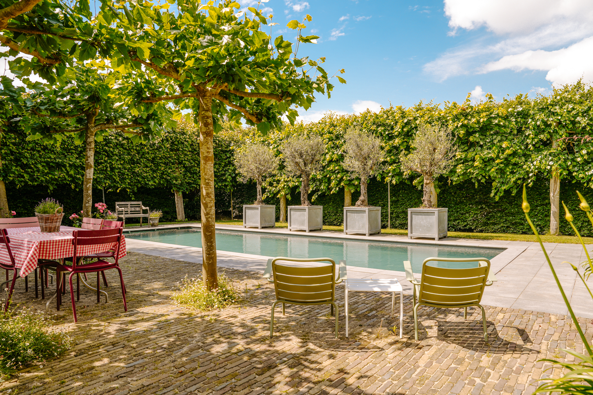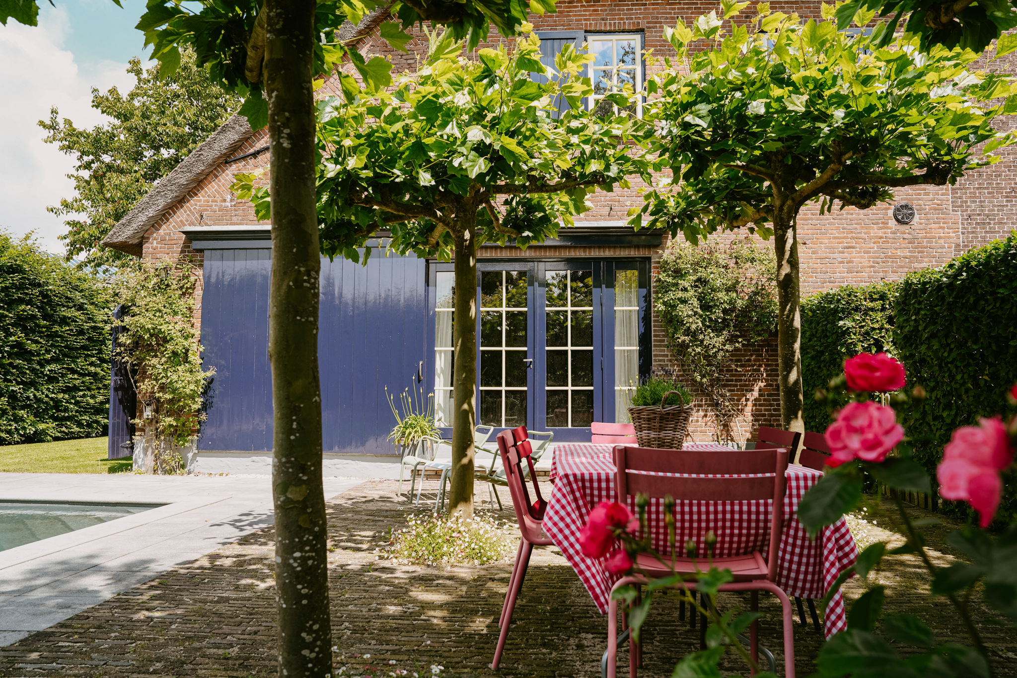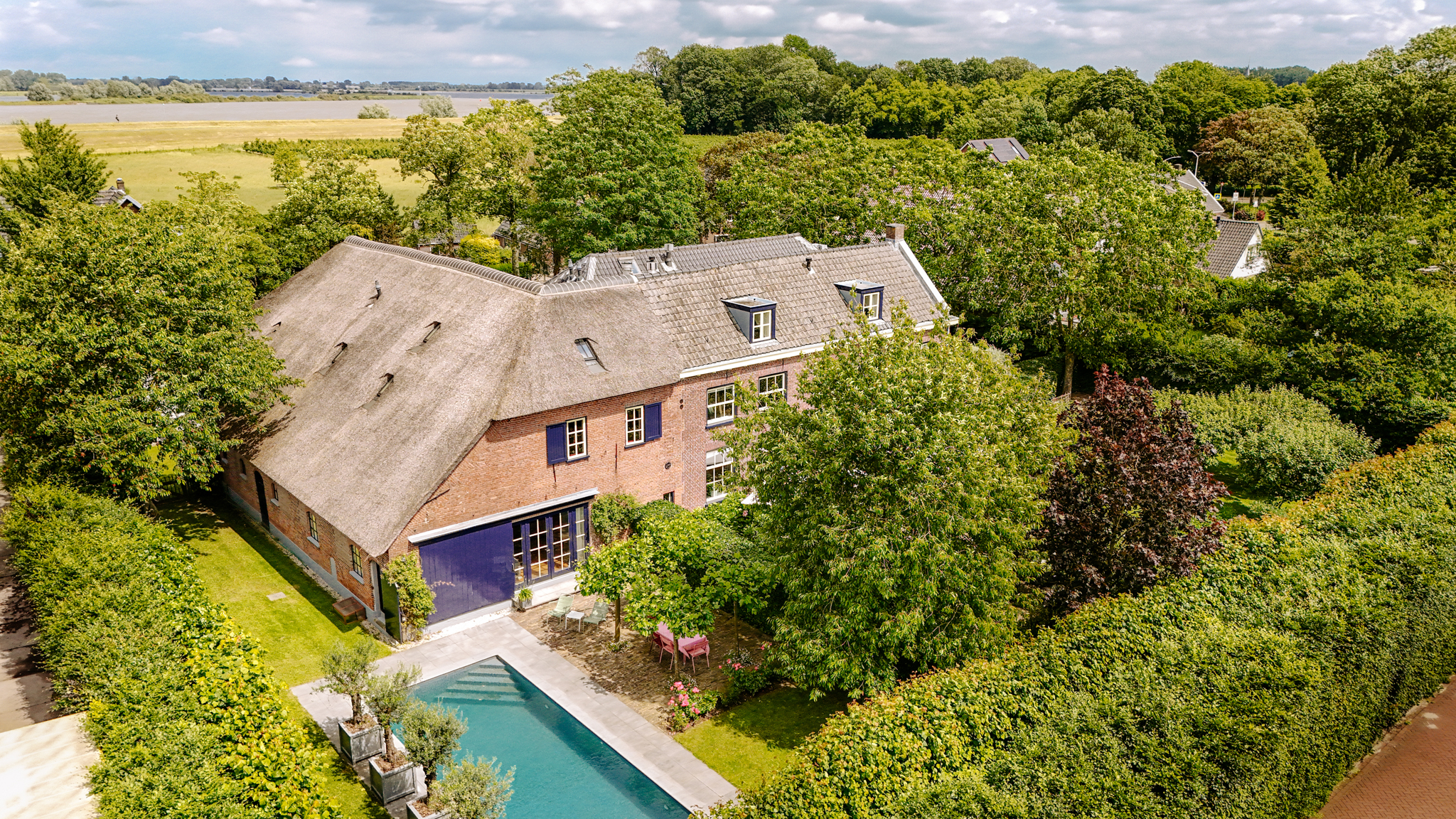 Im Außenbereich laden großzügige Terrassen, ein beheizter Zehn-Meter-Pool umrahmt von Obstbäumen sowie erhöhte Beete zum Rückzug ein. Hinter den Hecken bietet Rossum ein privates Dorfleben, eingerahmt von Flusslandschaften und nur Minuten von der A2 entfernt – mit schneller Anbindung an Utrecht und Amsterdam. Das Landgut Rossum gehört zu den größten Bauernhofensembles der Region und vereint auf einzigartige Weise Größe, Komfort und historisches Erbe.
