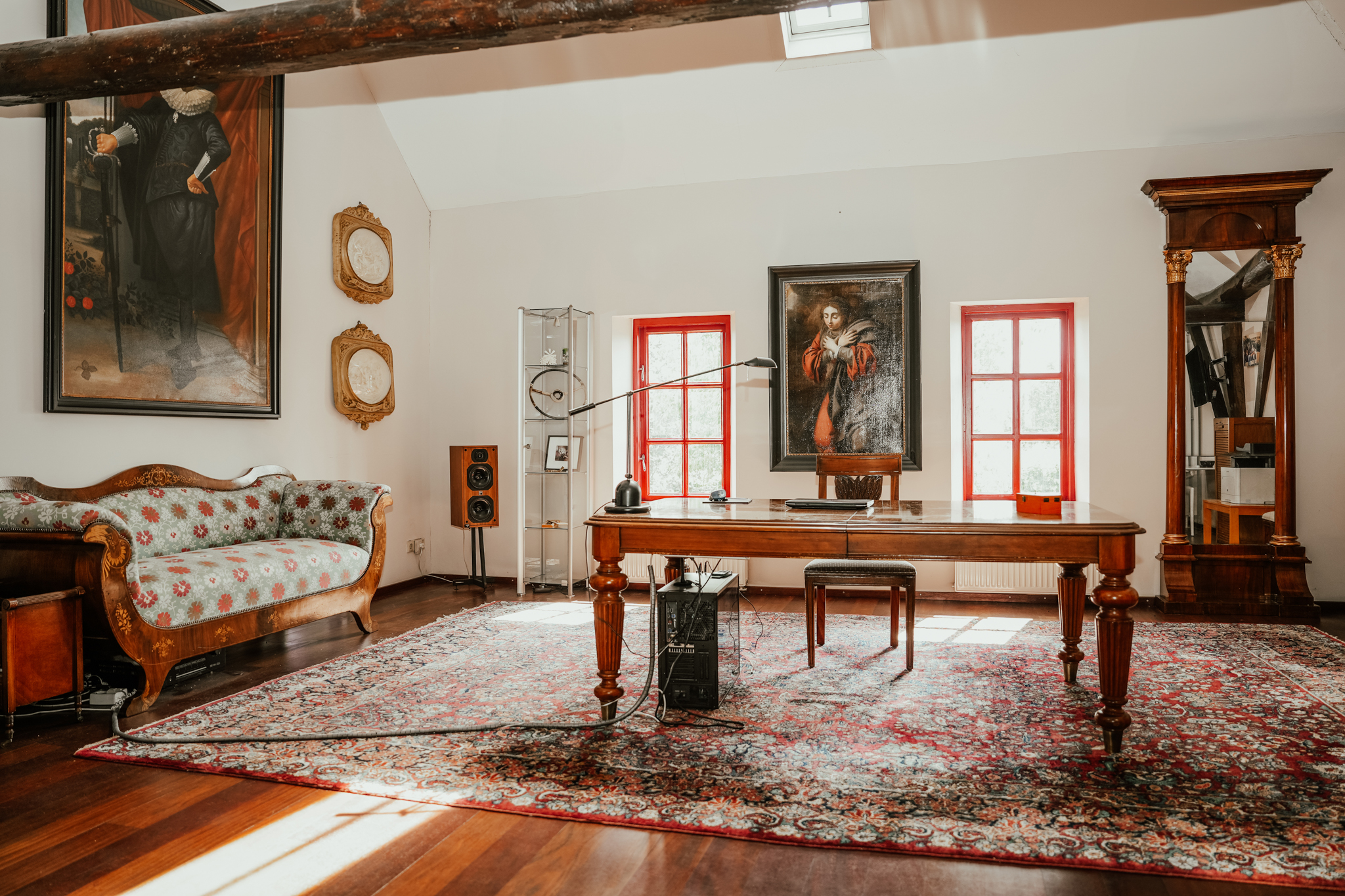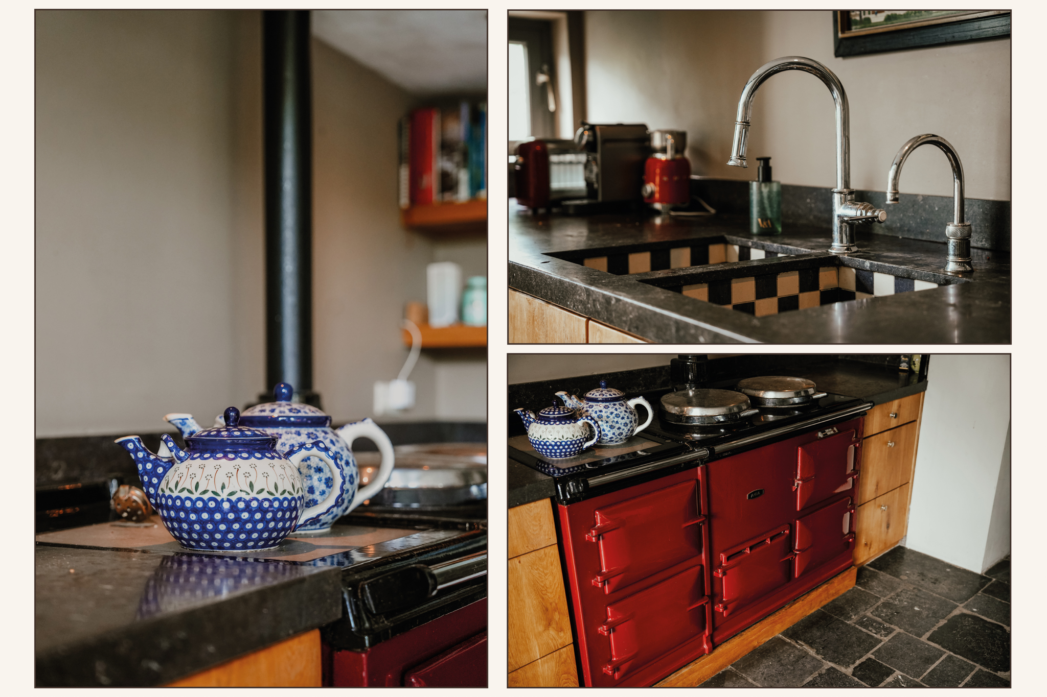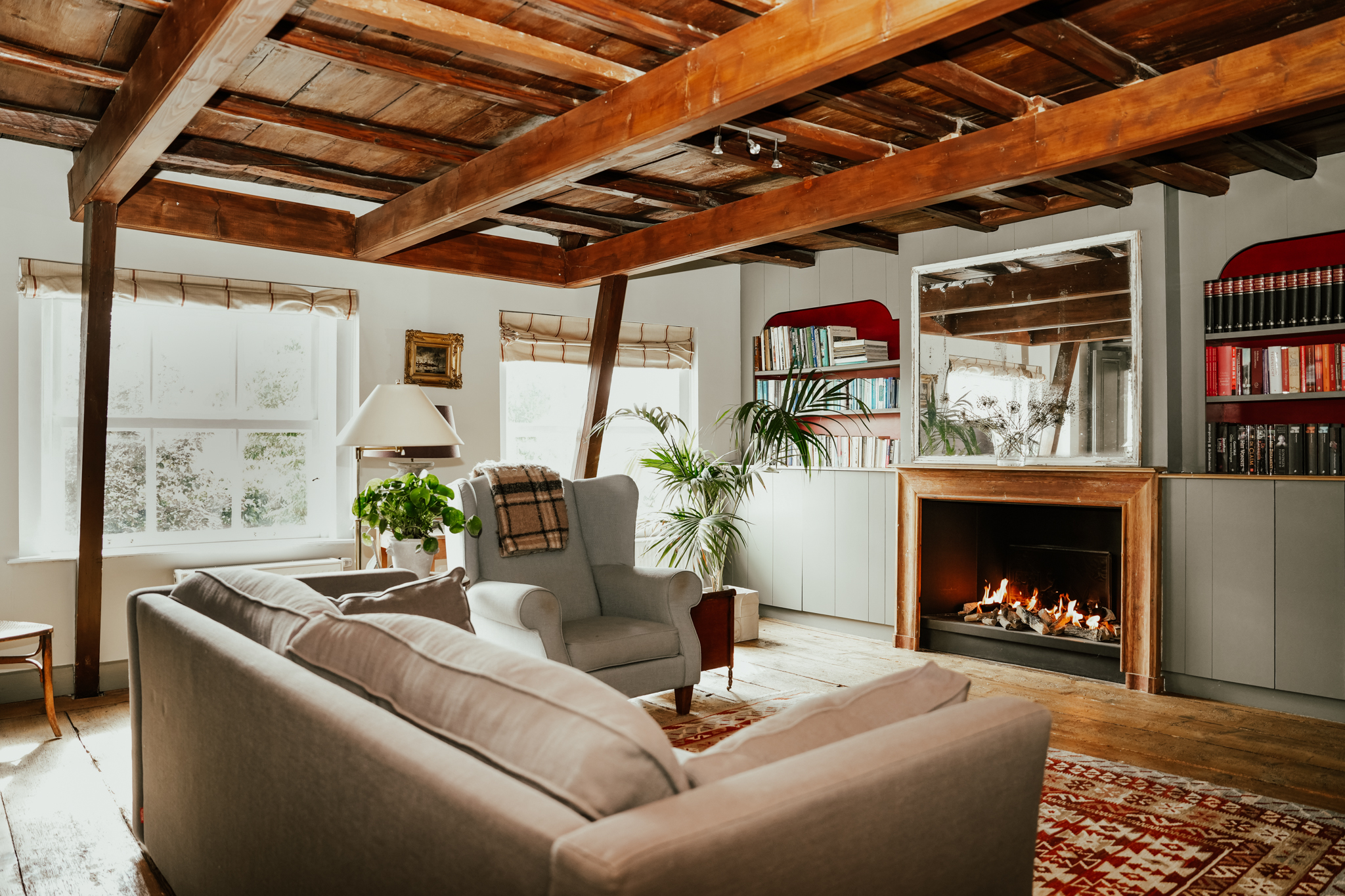 Das Haupthaus öffnet sich zu einer Abfolge großzügiger Räume: Ein lichtdurchflutetes Wohnzimmer mit offenem Kamin, ein zum Garten ausgerichtetes Esszimmer, eine maßgefertigte Eichenküche mit AGA-Herd und Steinkamin sowie ein Arbeitszimmer mit Blick auf die historischen Alleen des Dorfes. Jede Räumlichkeit zeugt von liebevoller Erhaltung – hohe Sprossenfenster, Versailles-Parkett und originale Balken – ergänzt durch ruhige technische Innovationen wie Fußbodenheizung, vakuumisolierte Verglasung und neue Solaranlagen. Ein vollkommen unabhängiges Gästehaus mit eigenem Wohnbereich und Bad bietet Gästen oder Familienmitgliedern komfortable Privatsphäre.