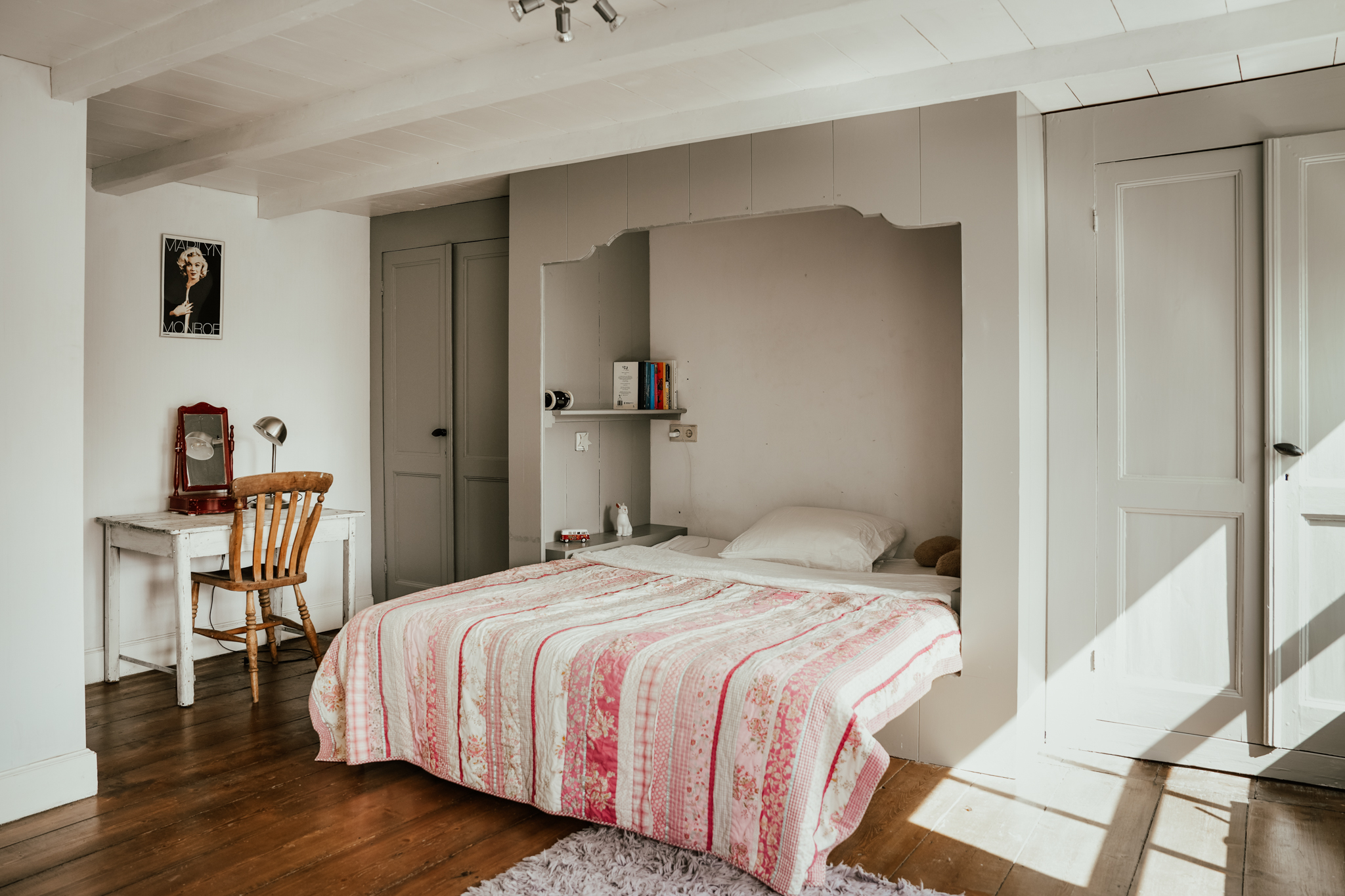Im Obergeschoss teilen sich drei Schlafzimmer und zwei Bäder das erste Stockwerk mit einem hellen Büro unter dem Reetdach, ausgestattet für Arbeit und Entspannung. Zwei weitere Schlafzimmer, ein viertes Bad und ein Spielboden runden die oberen Etagen ab – alle beheizt oder gekühlt durch moderne Inverter und nachhaltige Energiesysteme, die für die Energieklasse A+ sorgen.
