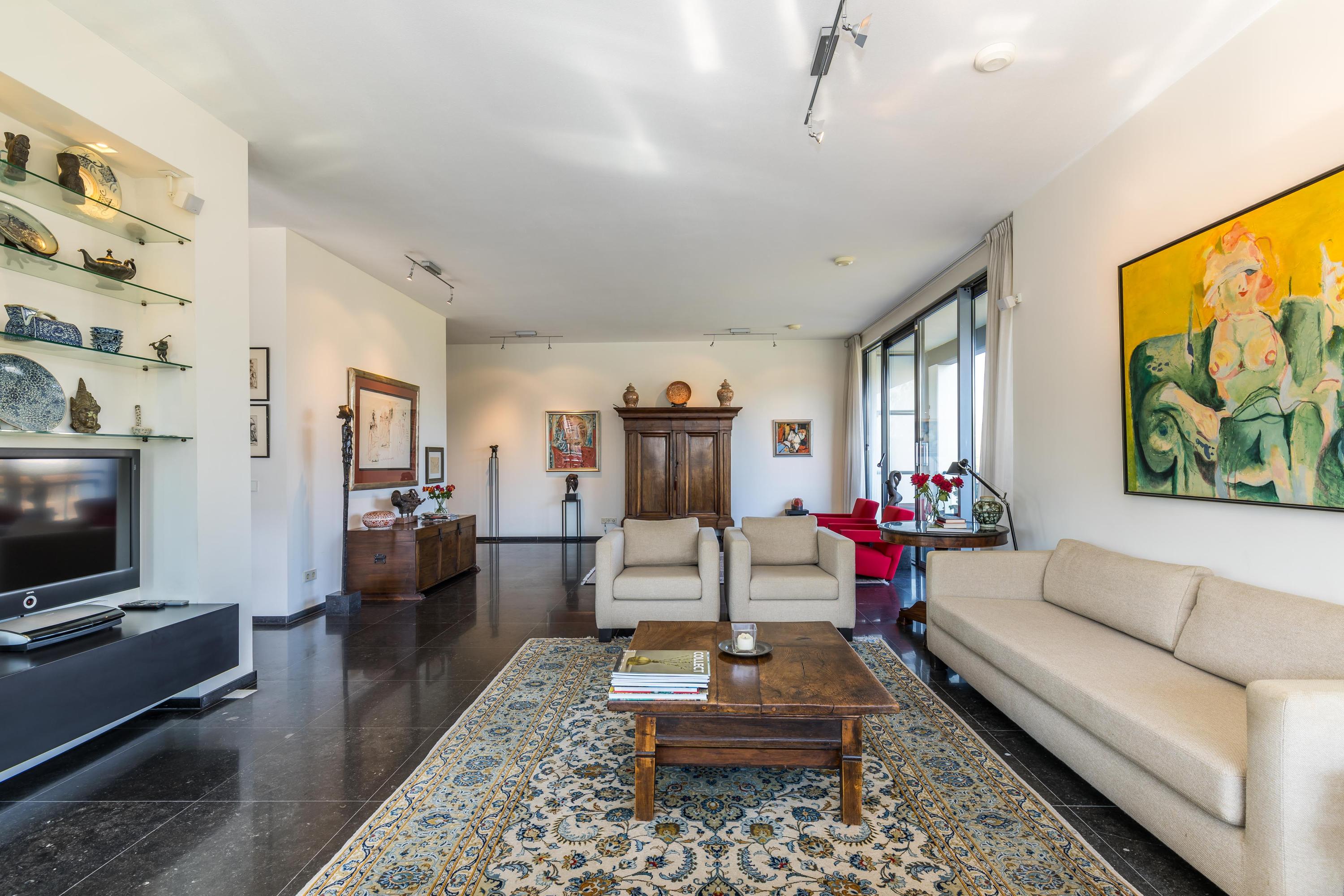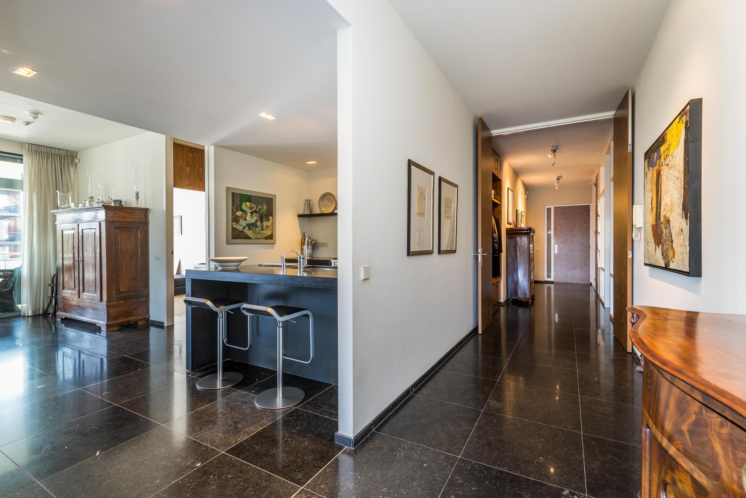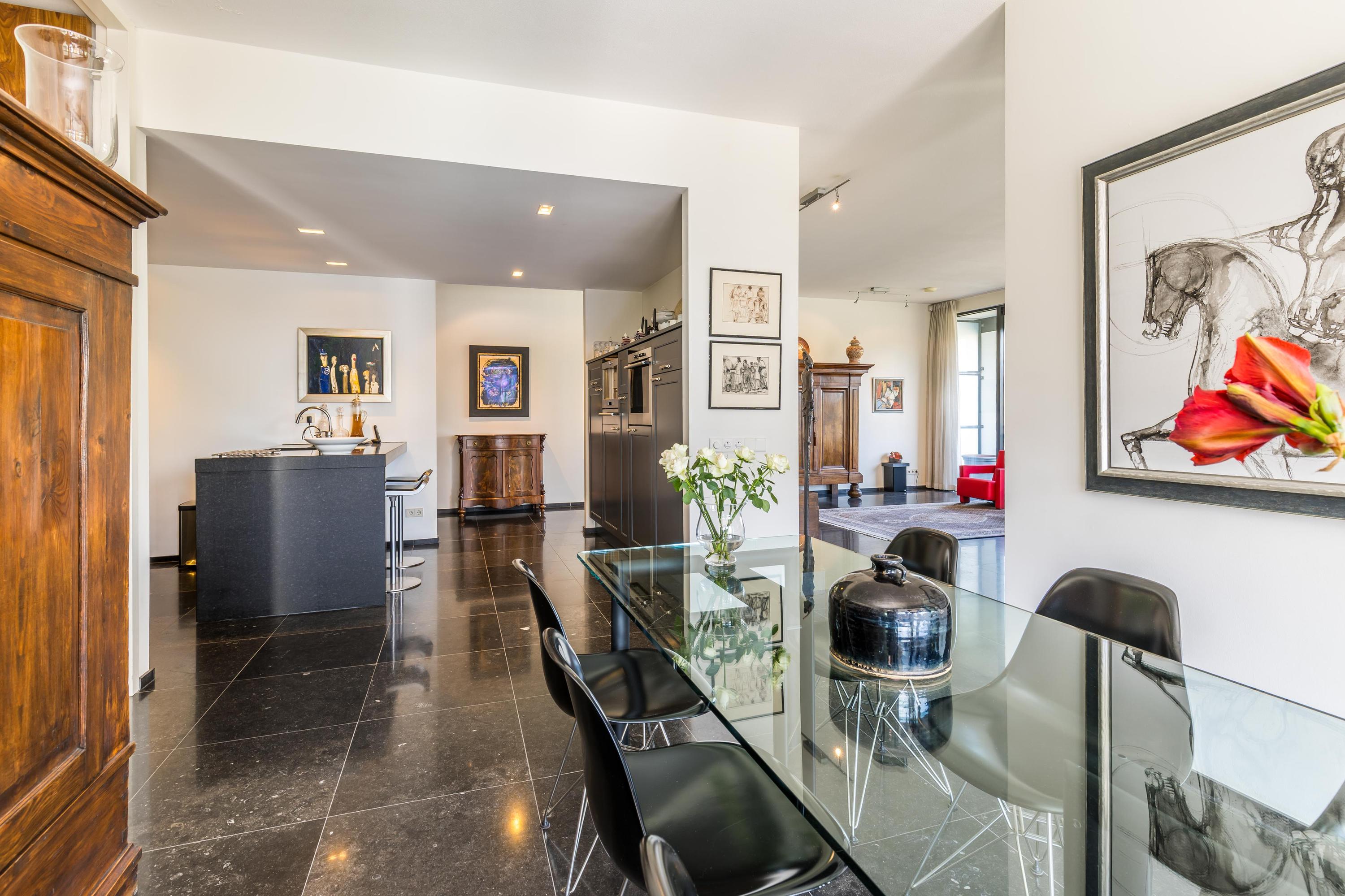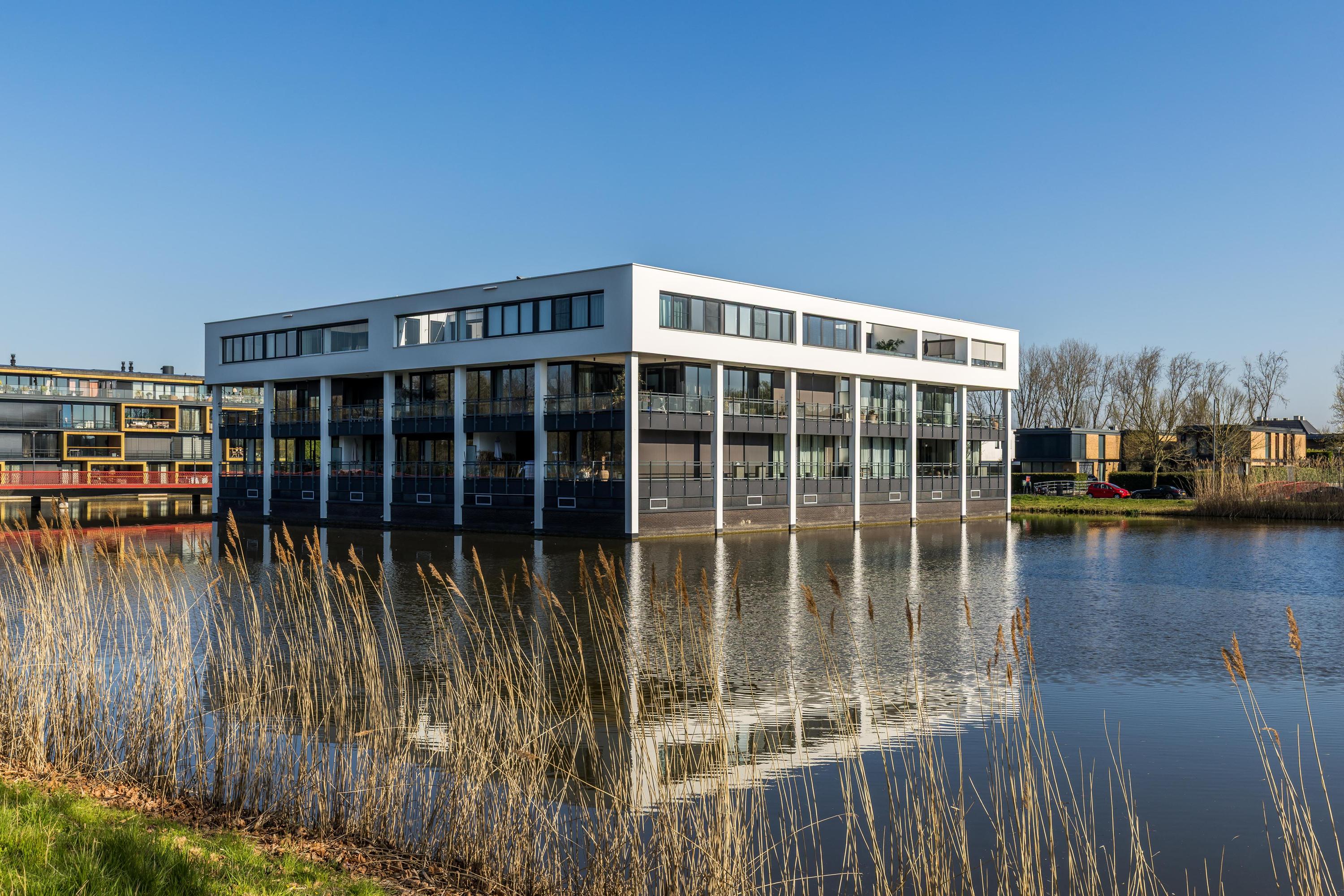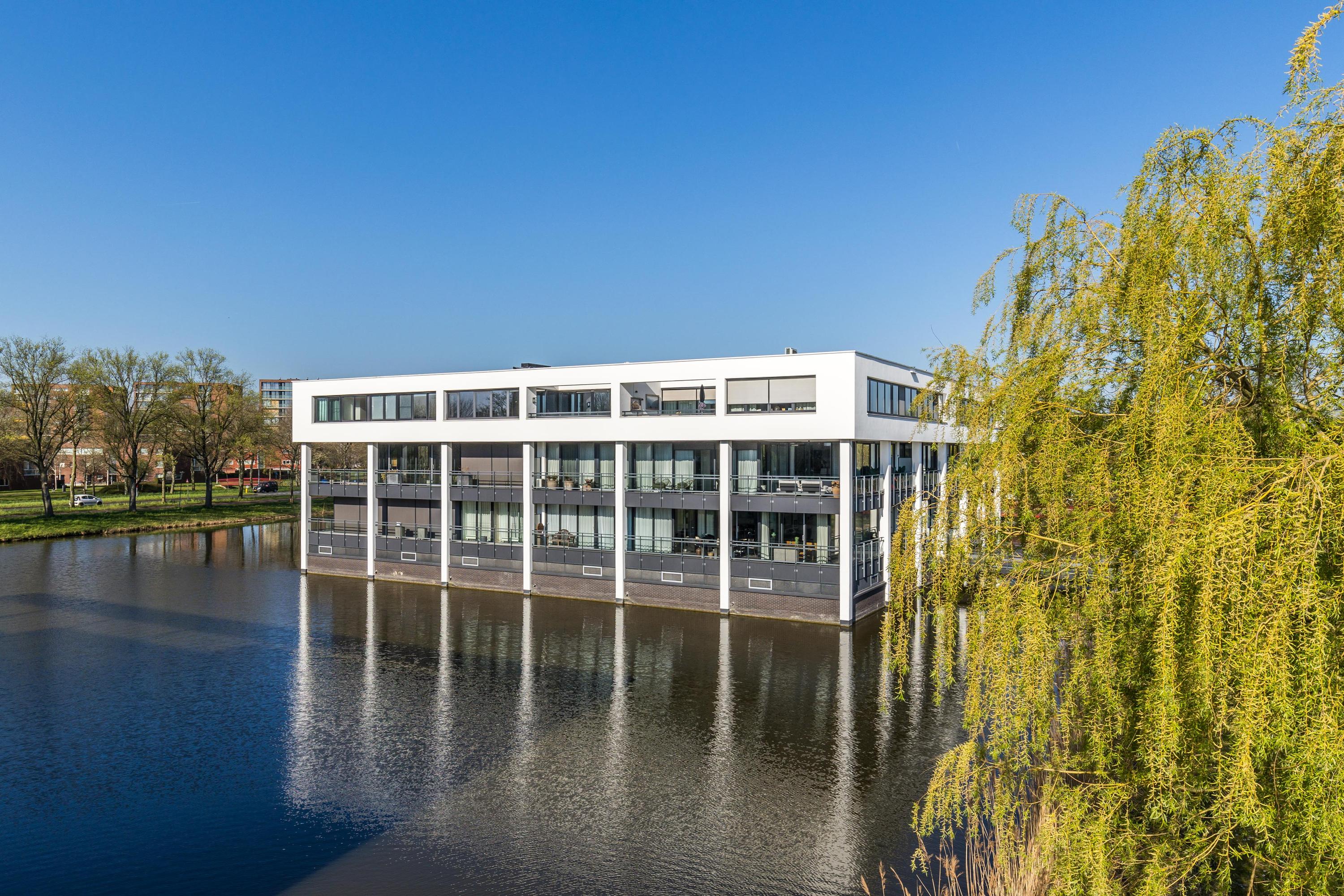 In het prestigieuze appartementencomplex ‘Cubis’ gelegen hoekappartement van maar liefst 202m², een balkon/terras van 56m² en een riante dubbele garage in de afgesloten parkeergarage in de onderbouw van het appartementencomplex. Dit is met recht een 'must see’ te noemen, want een appartement van deze omvang is uitzonderlijk zeldzaam. In het appartement speelt zich een subliem lichtspel af door de vele raampartijen en de hoekligging. Zelfs op sombere dagen is het nog verrassend licht in huis. De hoge plafonds, de spectaculaire brede hal bij de entree, de luxueuze afwerking en het vrije uitzicht over het water en de villawijk geven een majestueuze uitstraling. Overige sterke pluspunten zijn de aanwezigheid van 4 volwaardige slaapkamers, 2 badkamers en een semi-open woonkeuken. Het betreft een relatief klein appartementencomplex en dat heeft z’n charme, omdat er tussen de beperkt aantal medebewoners onderling meer en prettiger contact is, dan bij grootschalige complexen.