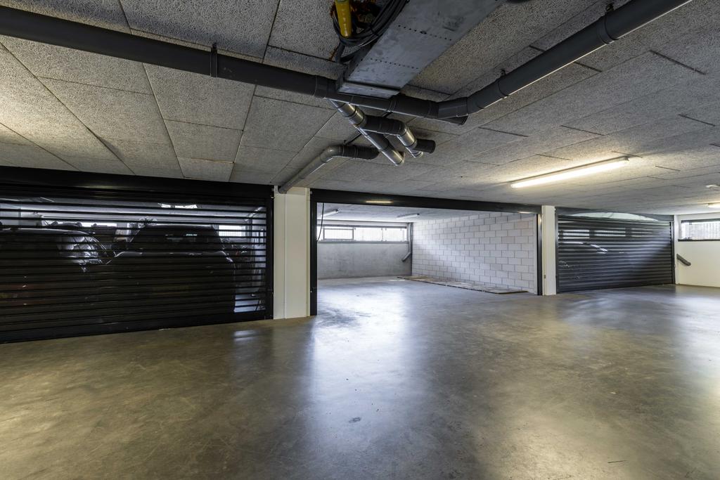 - dubbele garagebox voor twee auto’s en bergruimte met elektrisch bedienbare deur in onderliggende parkeergarage