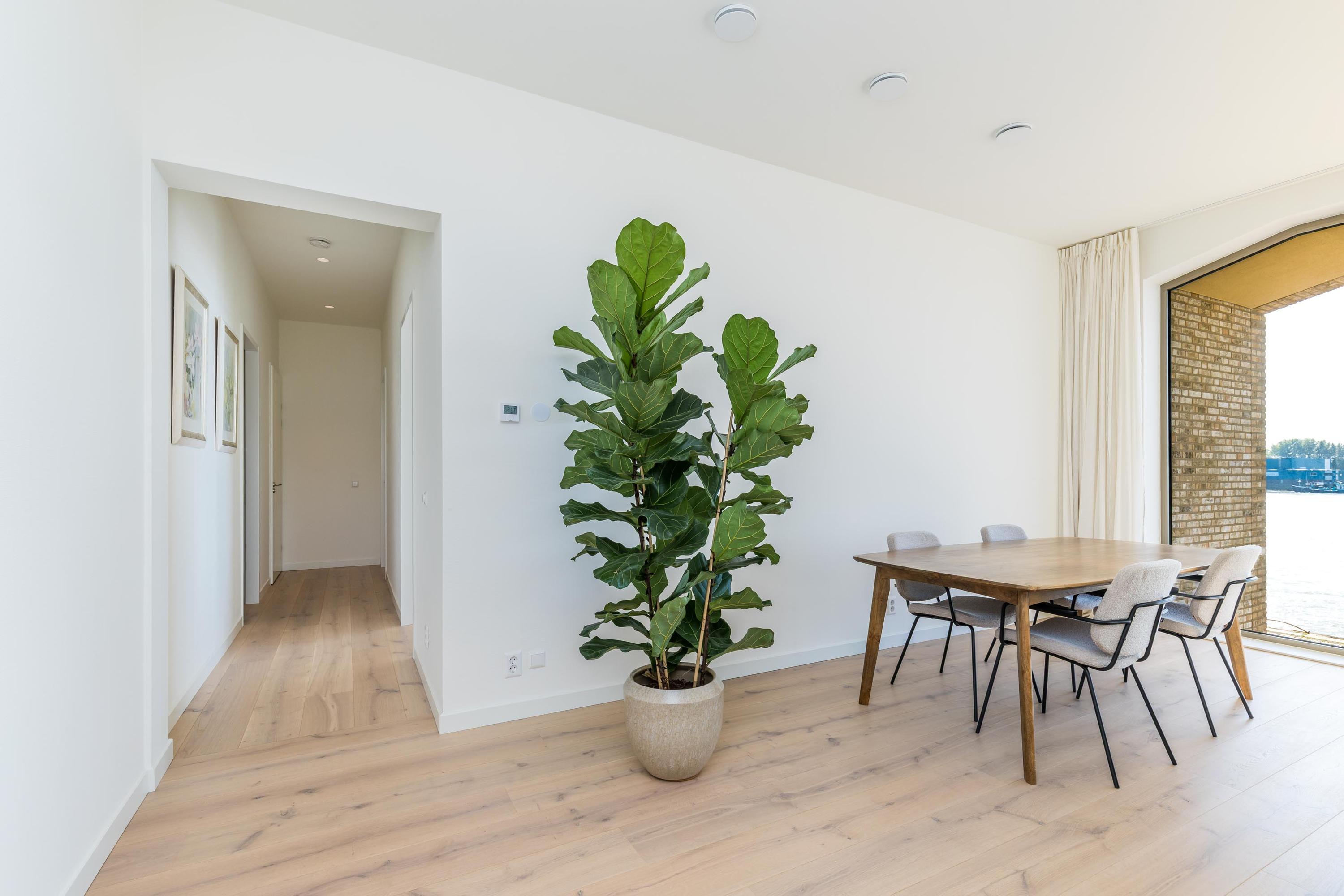 You enter the apartment via your own veranda/sun terrace on the ground floor (facing the sunny south and overlooking the Maas River). Here you'll find the luxurious kitchen/diner, fully equipped and designed for enjoyment, whether you're hosting an intimate dinner or preparing a lavish meal for friends and family. Directly adjacent is a spacious indoor storage room, ideal for extra storage.